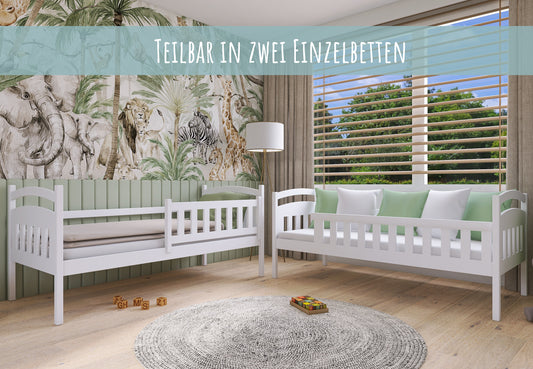 Kinderbett Bodenbett 80x160 | 80x180 | 90x190 | 90x200 | 120x200 | 140x200 cm Bett mit Rausfallschutz & Lattenrost Montessori Bett Gitterbett Kinder Jugendbett Einzelbett optional mit Matratze | Kiefer Holz massiv Junge Mädchen