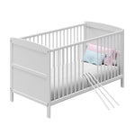 Dieses hochwertige Babybett aus massivem Kiefernholz vereint Sicherheit, Funktionalität und ansprechendes Design in einem Möbelstück. Mit seiner robusten Bauweise bietet es eine stabile und komfortable Schlafumgebung für Ihr Baby – ideal für einen erholsamen Schlaf in den ersten Lebensjahren. Die Giebel bestehen aus langlebigen HDF-Platten, während Kunststoffabdeckungen an den oberen Seitenteilen für zusätzliche Sicherheit sorgen.