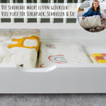 Stabiles Bett und dank der Anleitung war der Aufbau kein Problem. Die Schublade bietet extra Stauraum für Spielsachen.