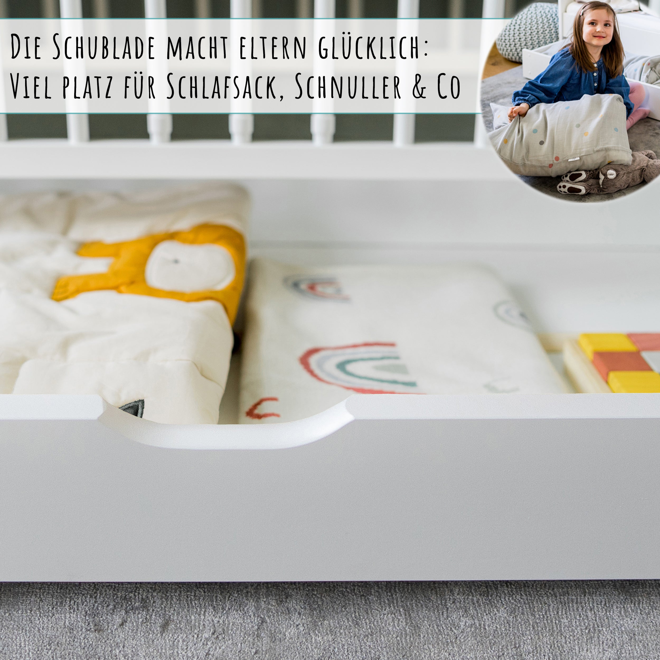 Mein Kind schläft super in seinem neuen Hausbett. Die integrierte Schublade ist sehr praktisch und bietet zusätzlichen Stauraum.