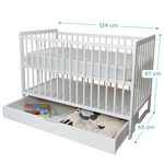 - Lieferumfang: Babybett, Schublade, Baby-Matratze, Lattenrost, Aufbauanleitung