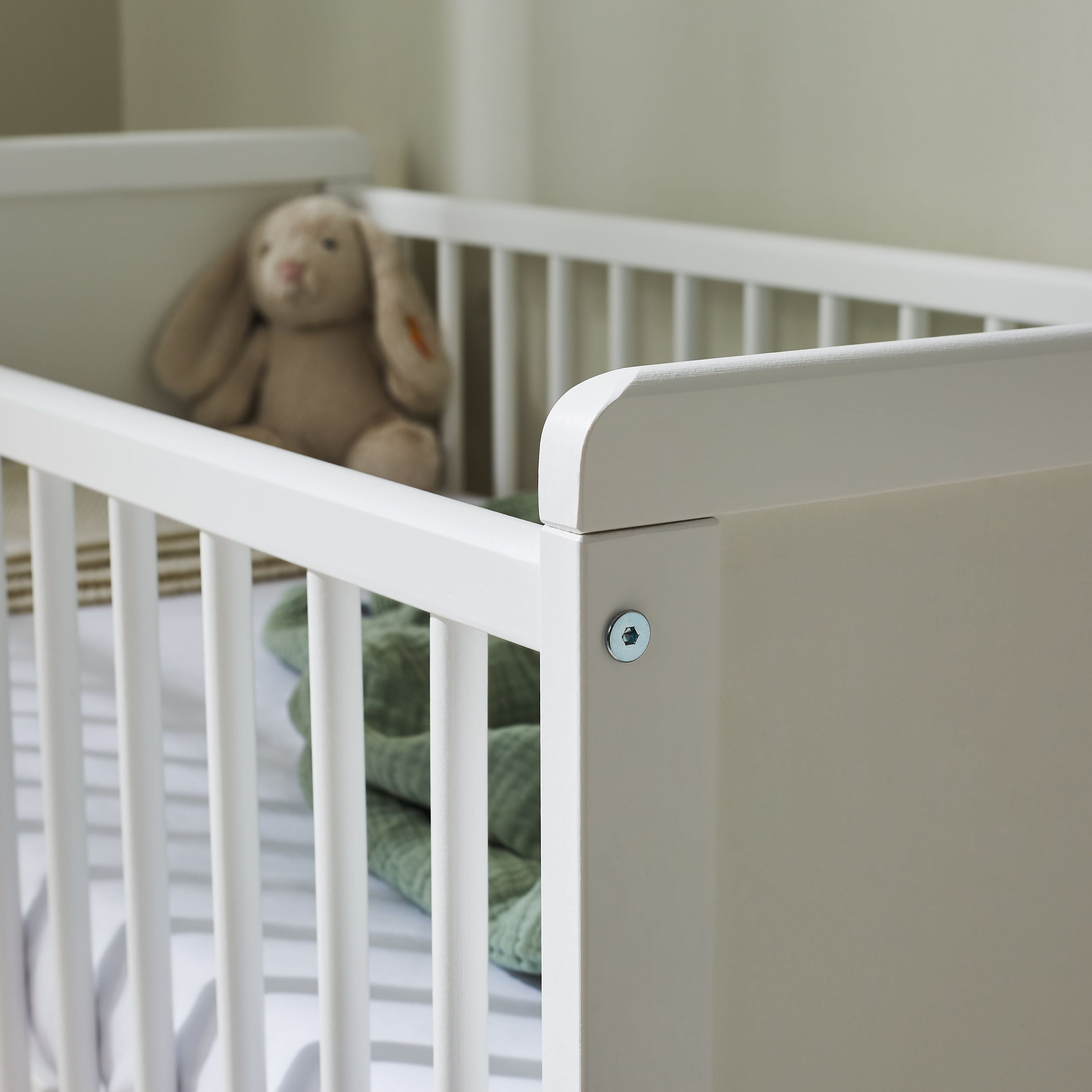 BABYBETT & JUNIORBETT IN EINEM: Mit dreifach verstellbarem Lattenrost, herausnehmbaren Sprossen und später wandelbar in ein Juniorbett.