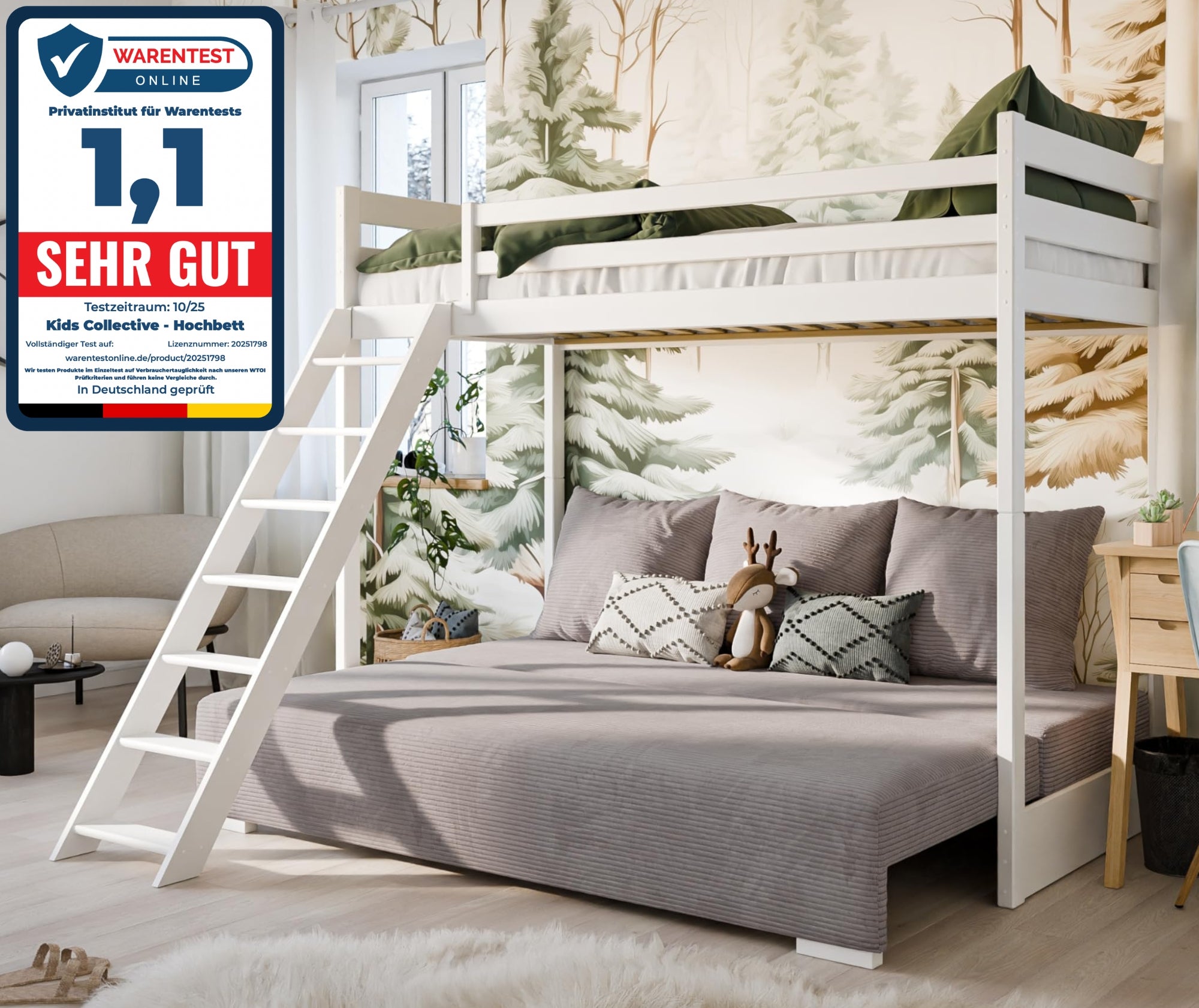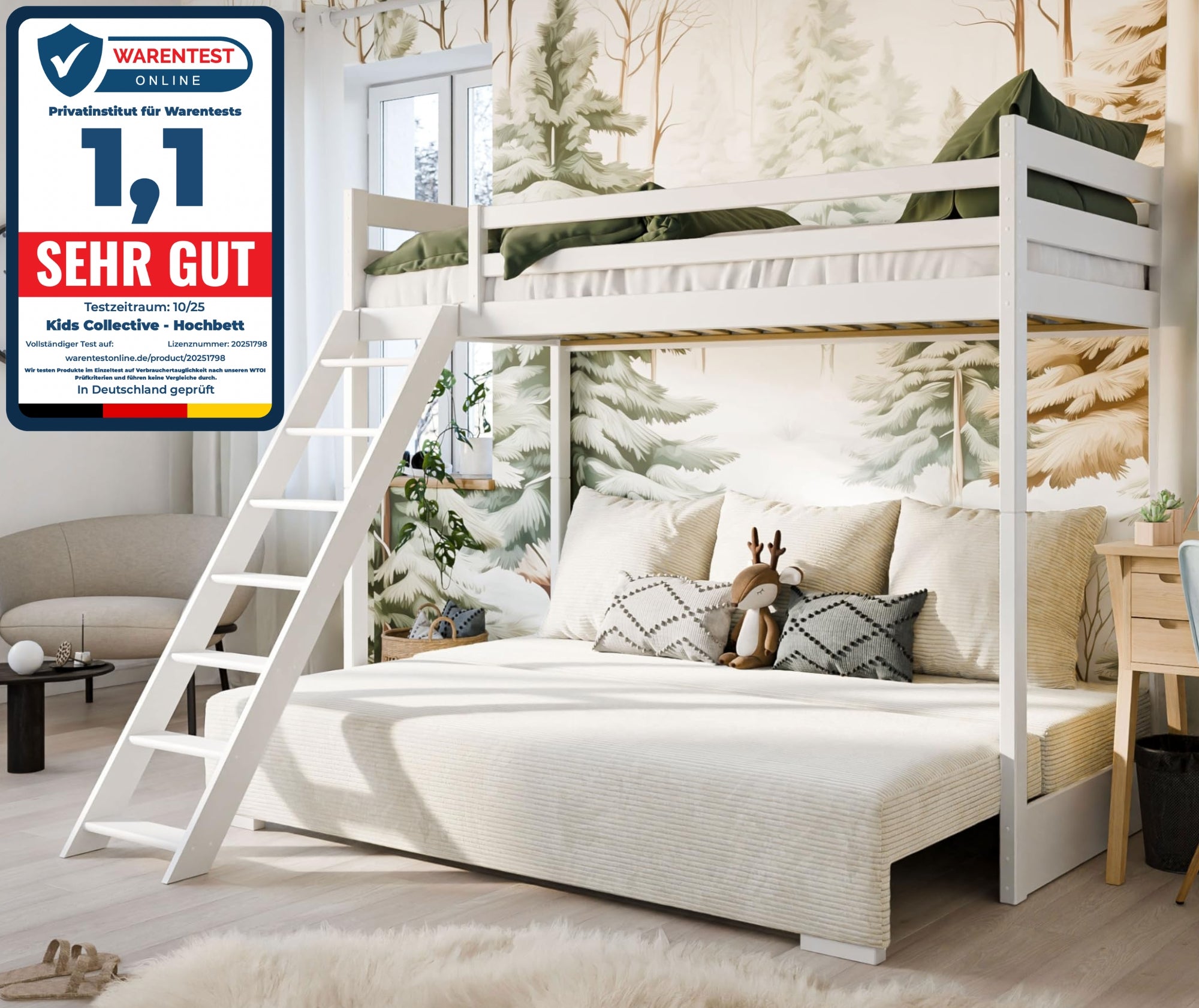 - Design: Platzsparendes Hochbett mit zusätzlichem Stauraum unter der Liegefläche