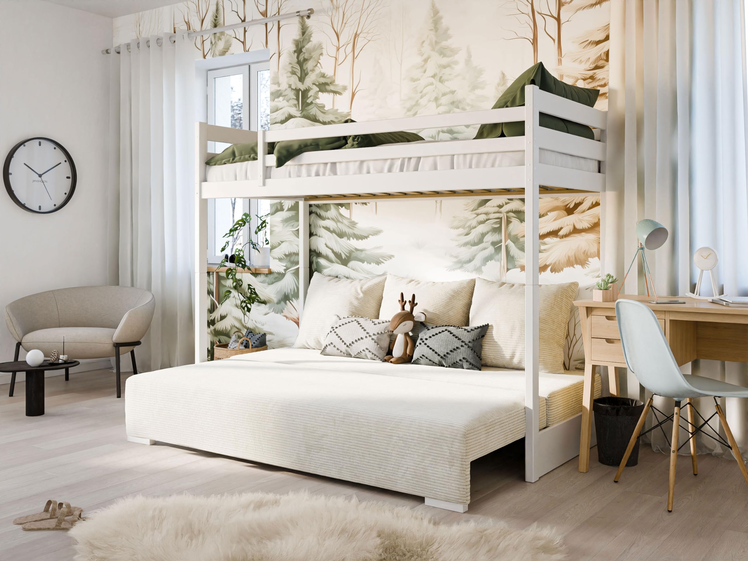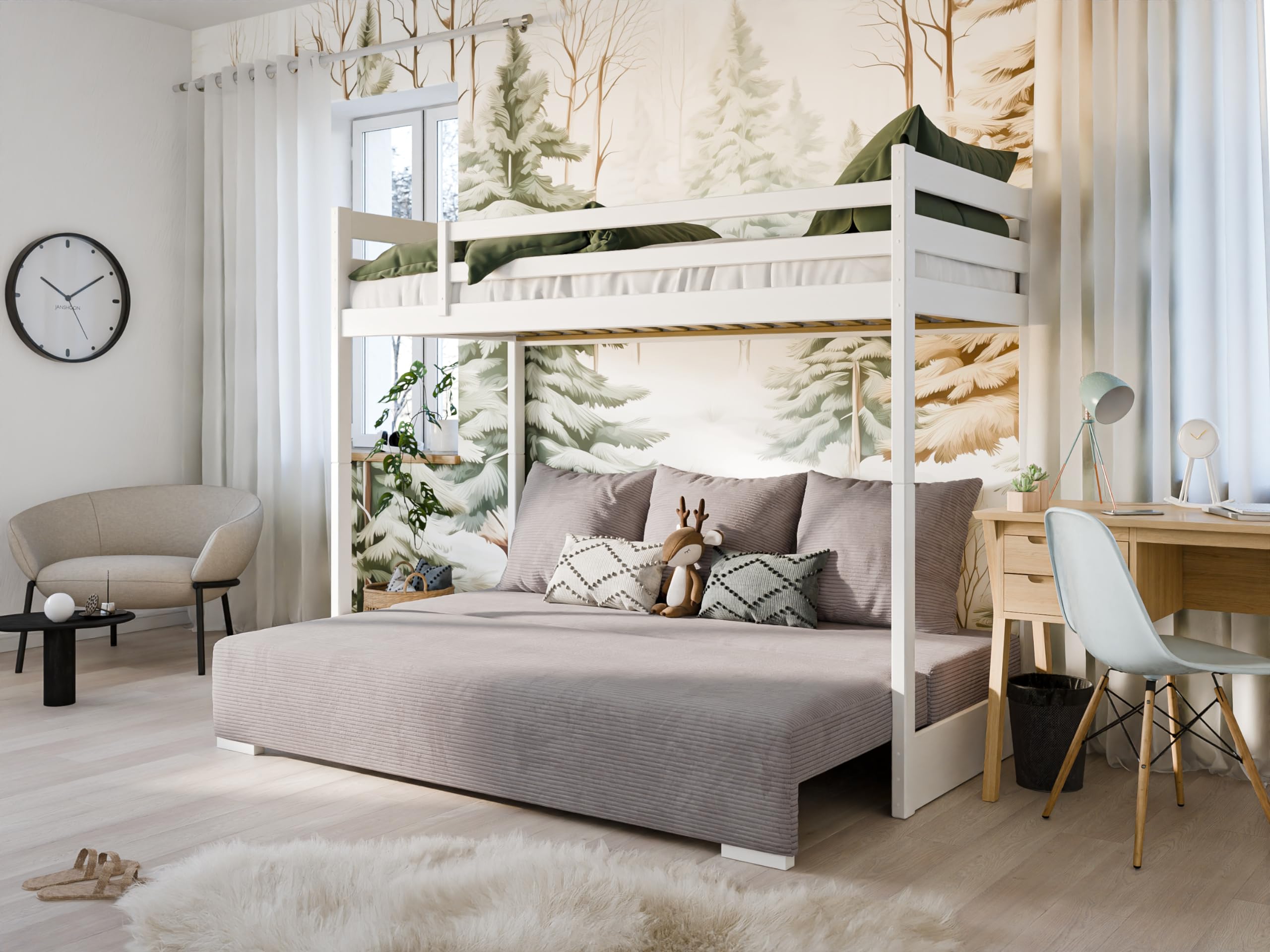 Dieses Multifunktionsbett ist der Hit im Kinderzimmer! Mein Kind nutzt es zum Schlafen, Spielen und Relaxen. Tagsüber ist das untere Bett ein gemütliches Sofa und bietet Platz zum Lesen oder Chillen mit Freunden. Abends lässt es sich einfach in ein bequemes Bett verwandeln.