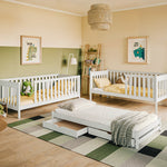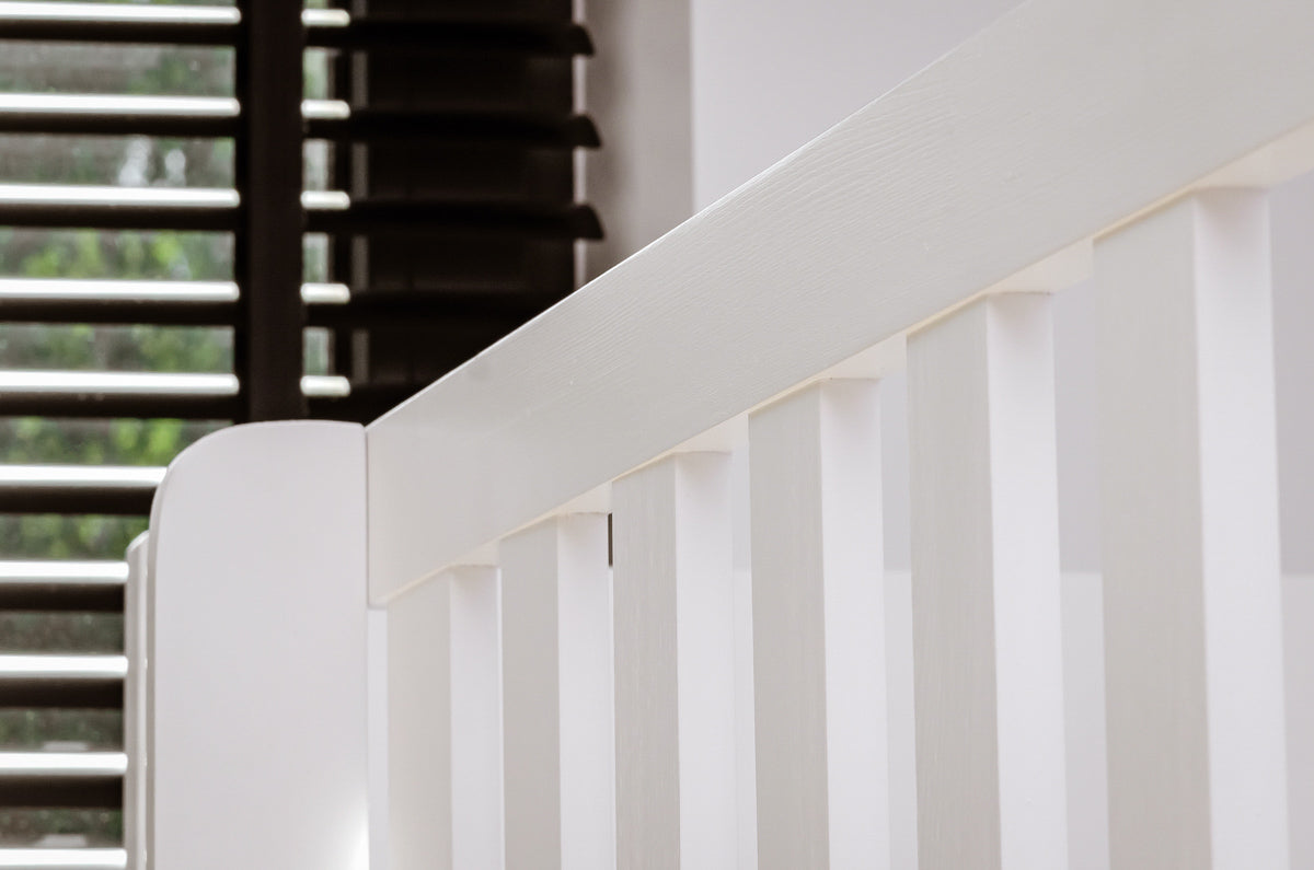 Das Bett kann optional in drei einzelne Betten umgebaut werden, um den wechselnden Bedürfnissen Ihres Kindes gerecht zu werden. Die Fußenden sind mit bodenschonenden Gummikreiseln versehen, die Ihren Fußboden schützen und die Mobilität des Bettes erleichtern.