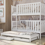 Dieses Etagenbett ist die perfekte platzsparende Lösung für unser kleines Kinderzimmer. Es bietet zwei Schlafplätze, ein zusätzliches Gästebett und Stauraum in den Schubladen. Die Kinder lieben es, auf dem Bett zu spielen und zu toben, und ich weiß dank der hohen Seitengitter, dass sie dabei sicher sind.