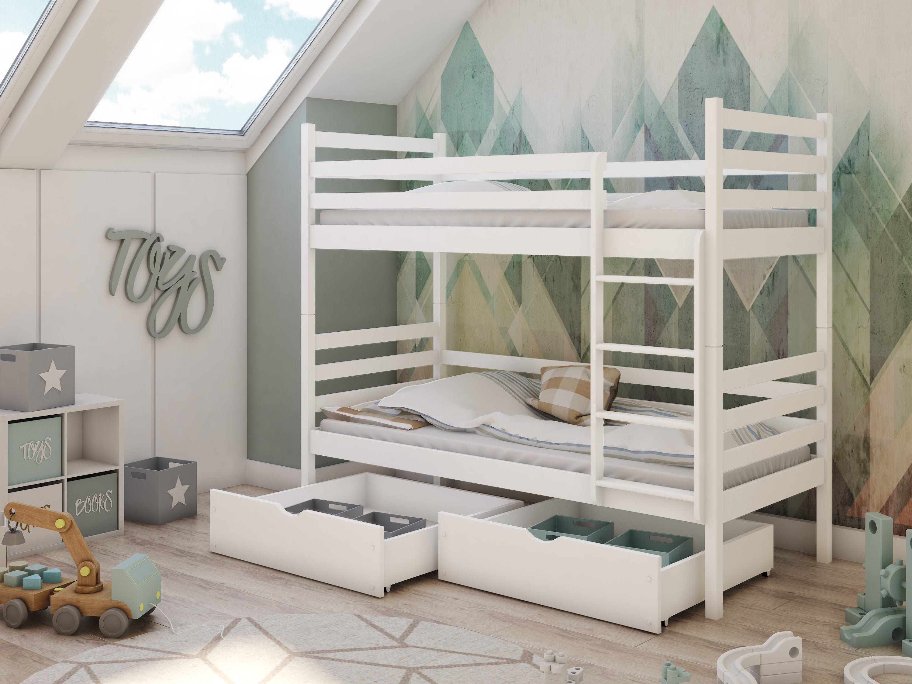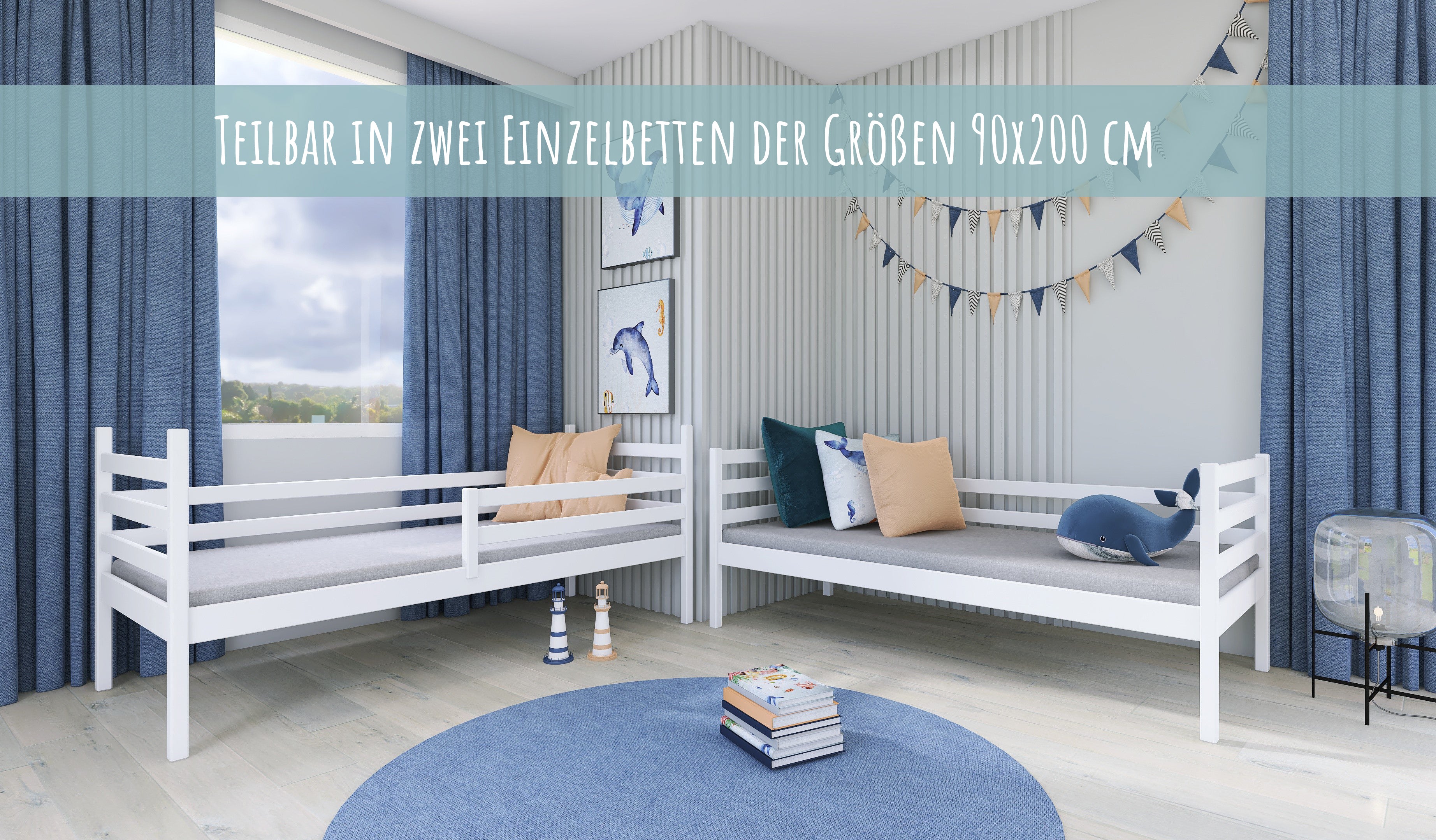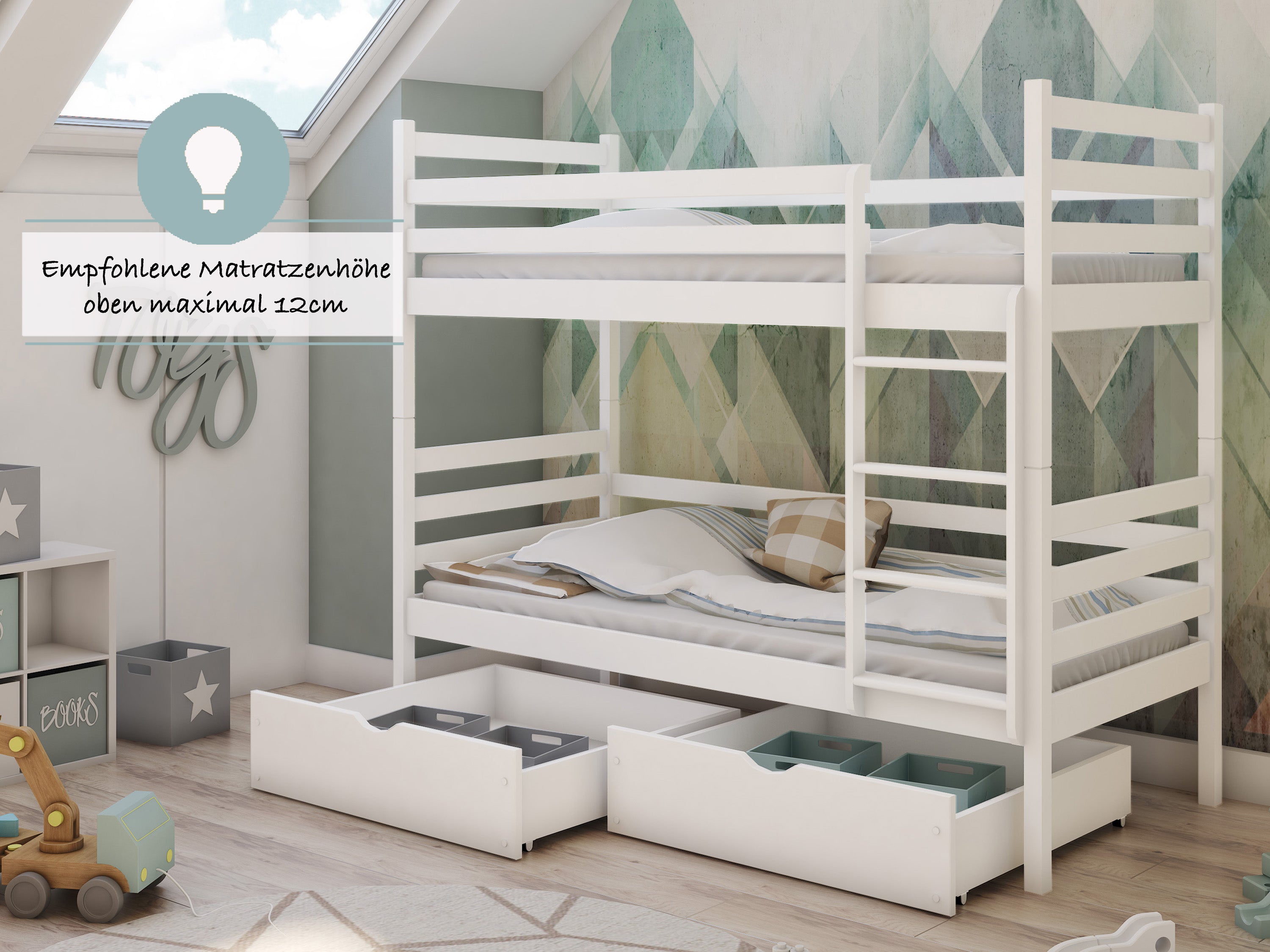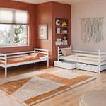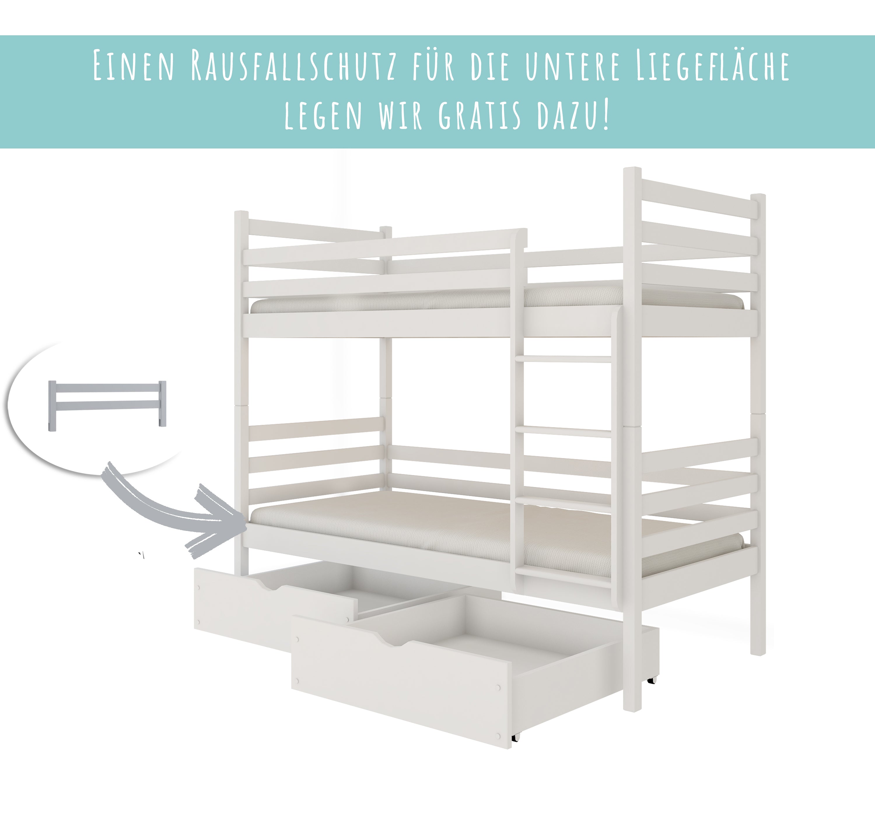 Optional 2 Matratzen & 2 Schubladen | Rausfallschutz | Vollholz | 90 × 200 cm