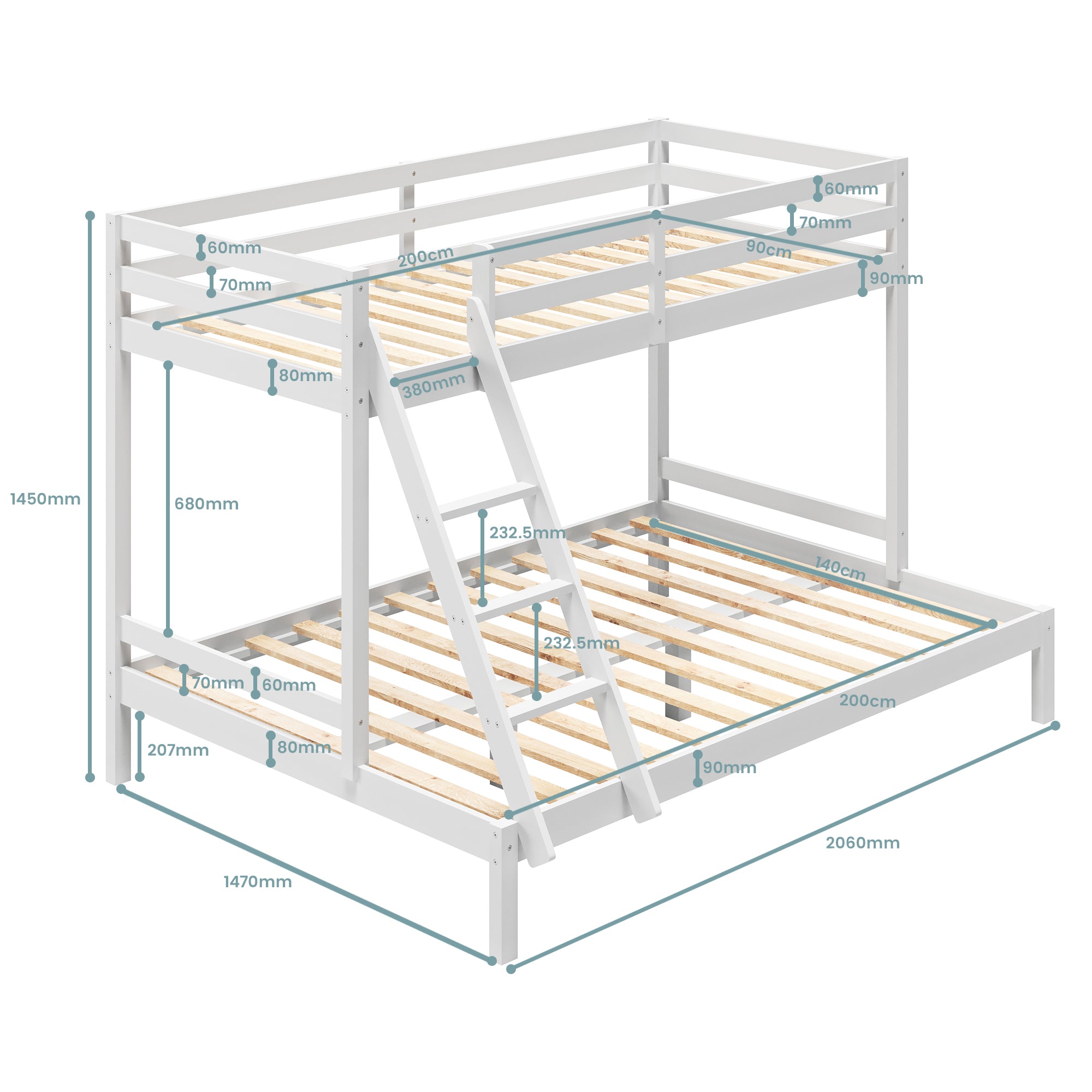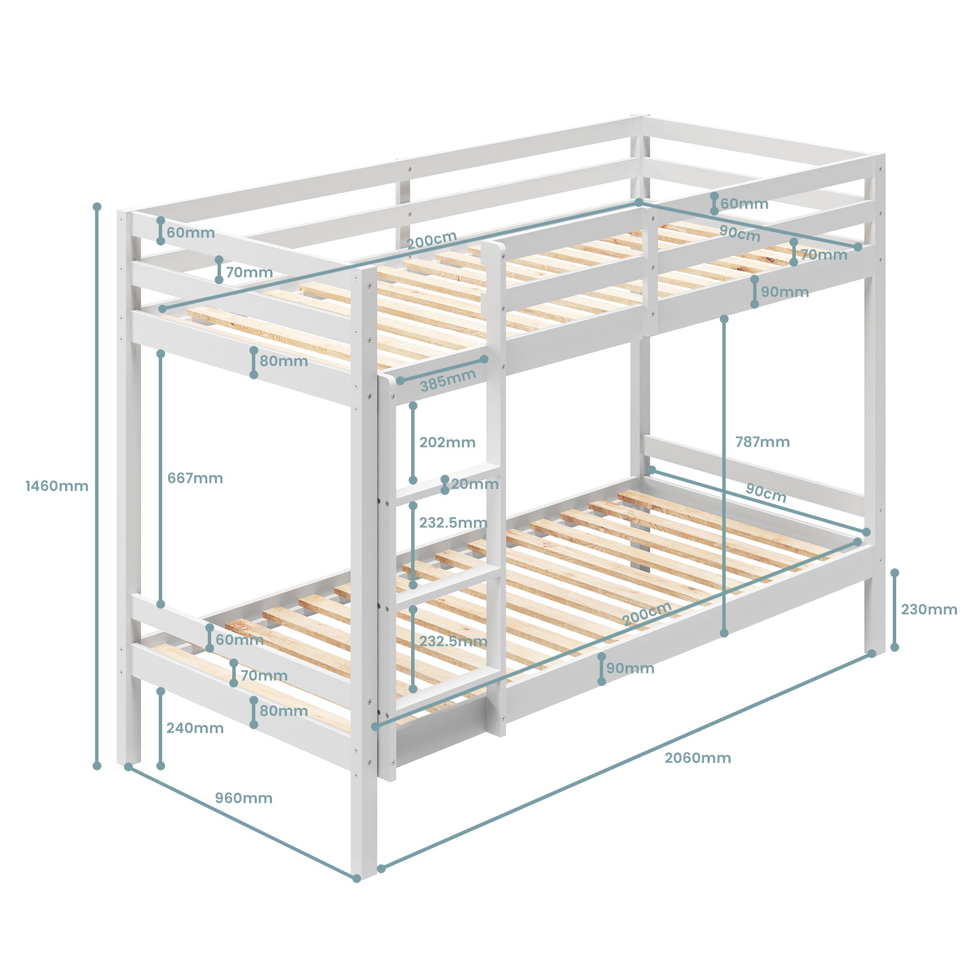 EN 747-zertifiziert | Platzsparend & sicher | Vollholz | 90 × 200 cm