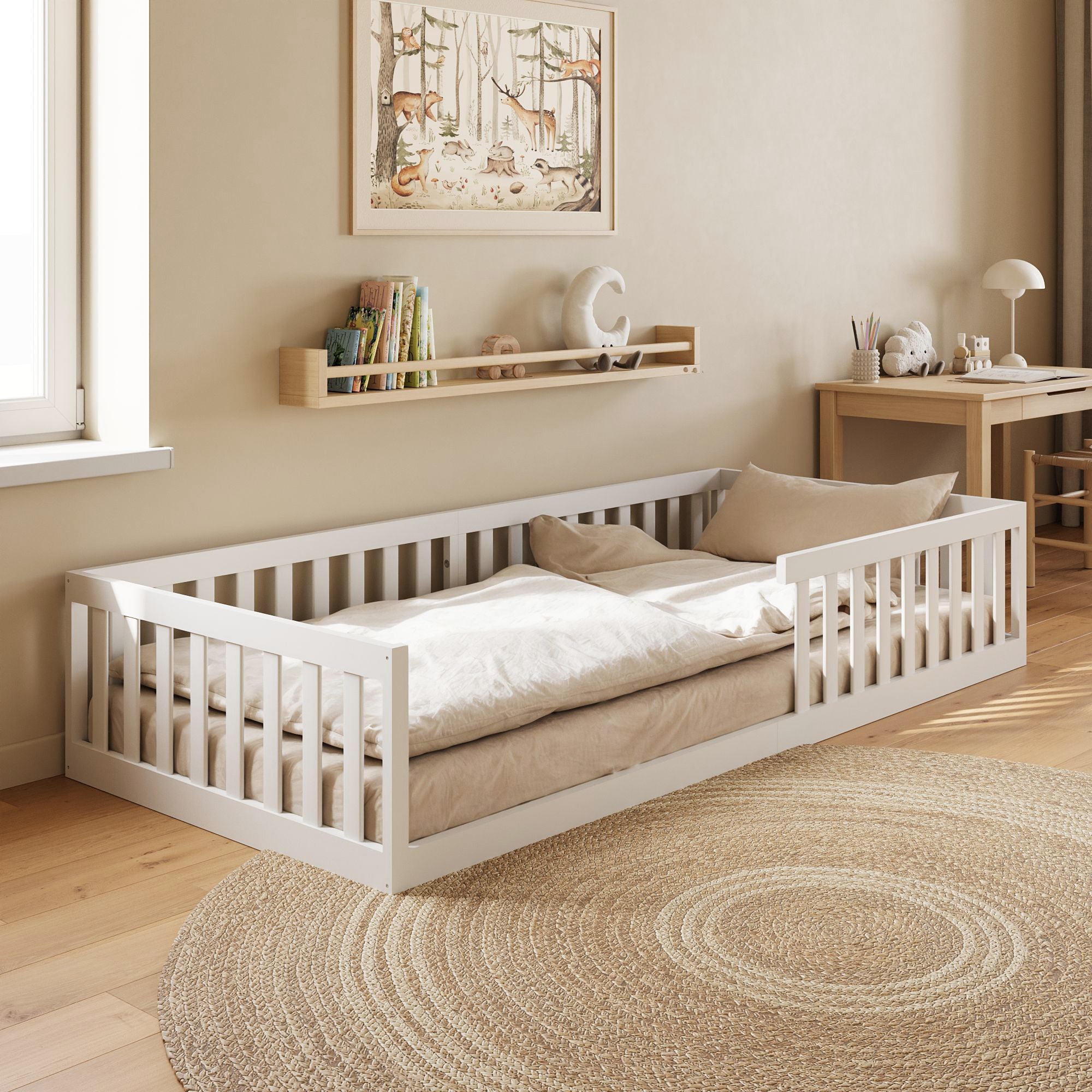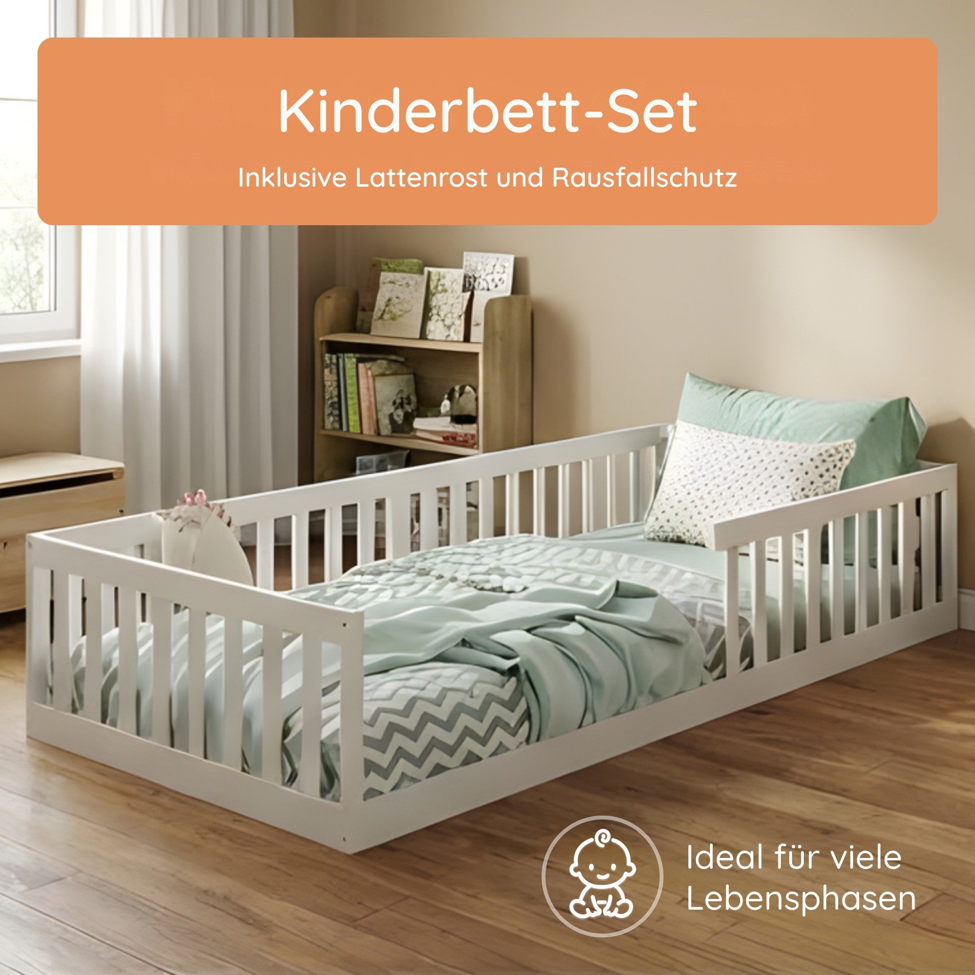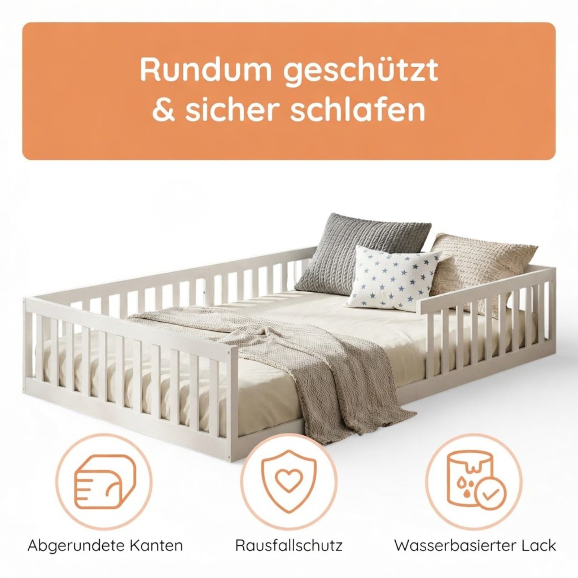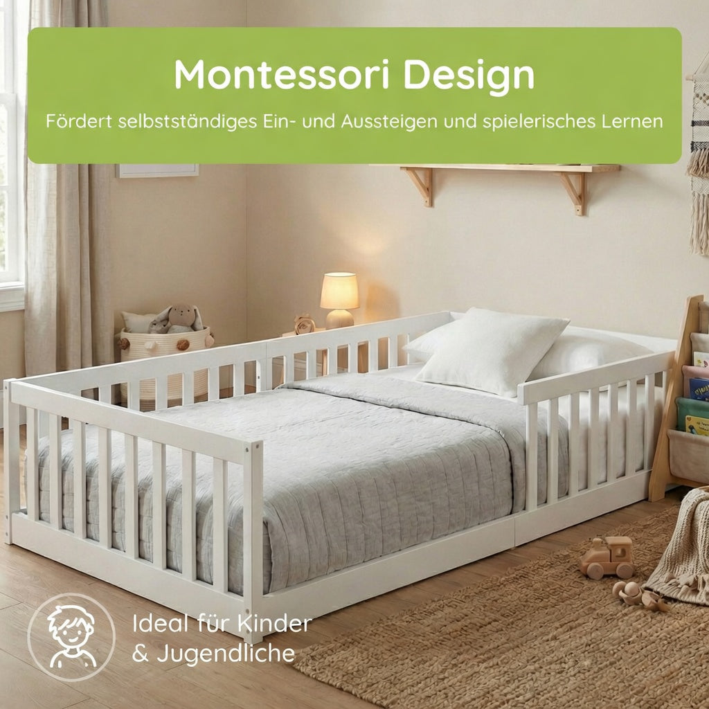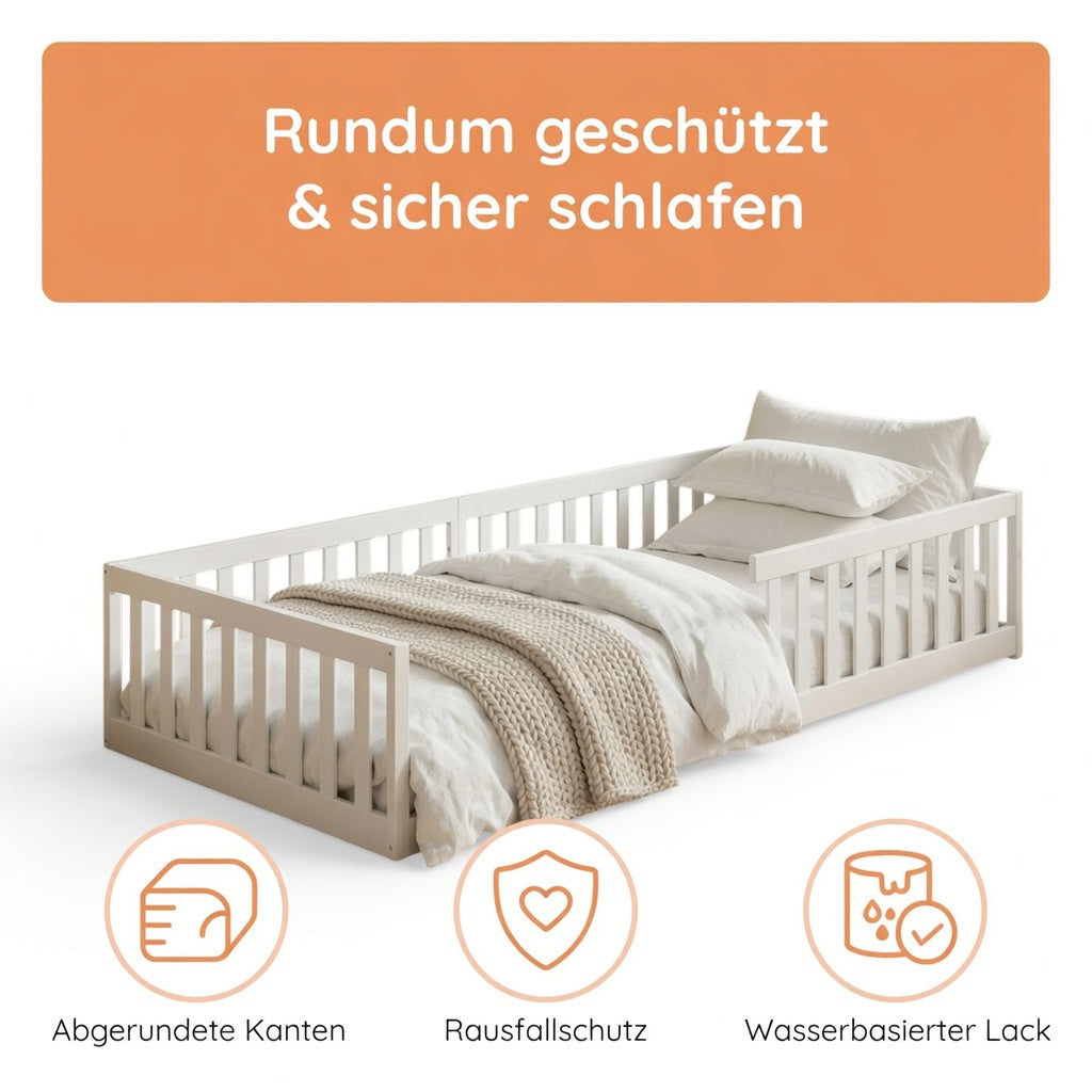 Montessori-Stil | Rausfallschutz & Lattenrost | 90–140 × 200 cm