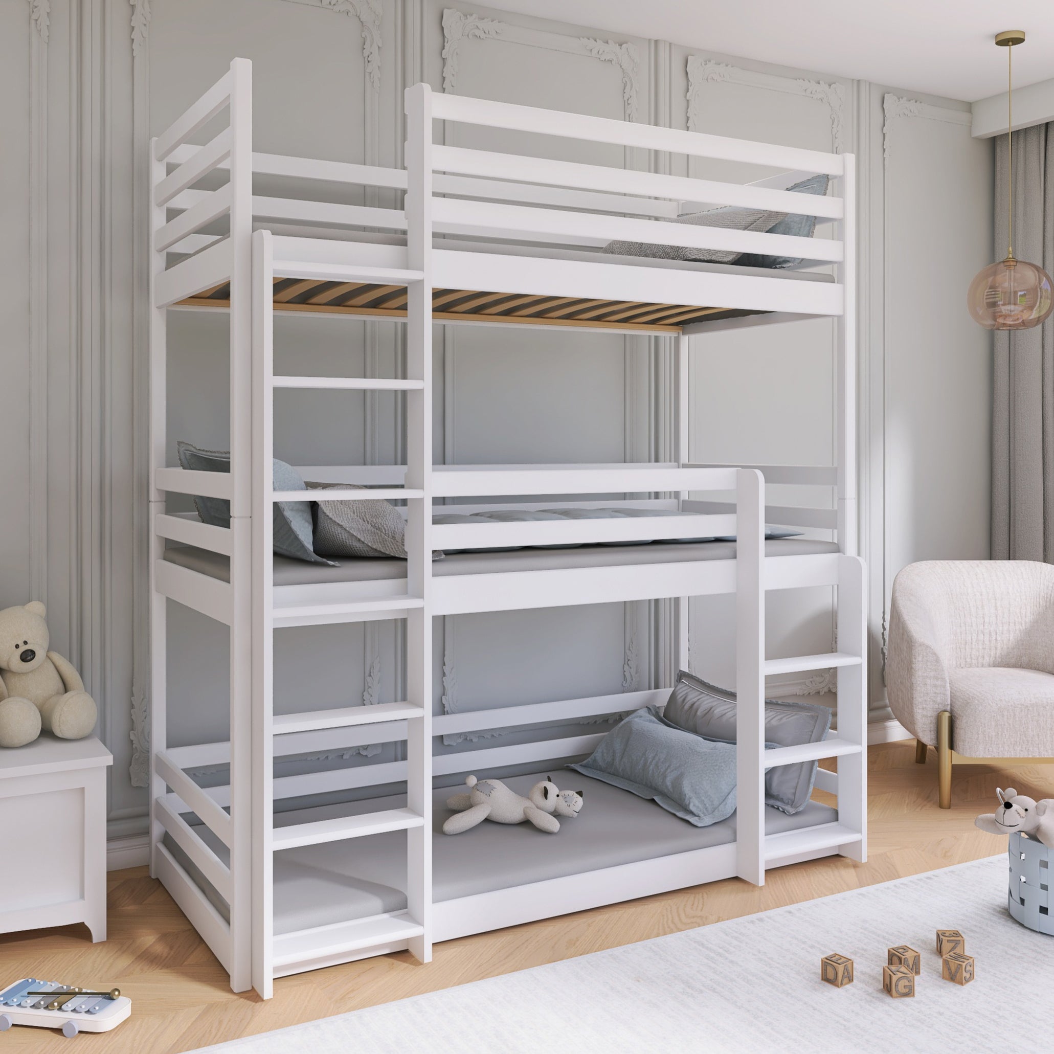Dreier-Etagenbett | Optional 3 Matratzen | 3 × Lattenrost | Vollholz massiv | 90 × 200 cm