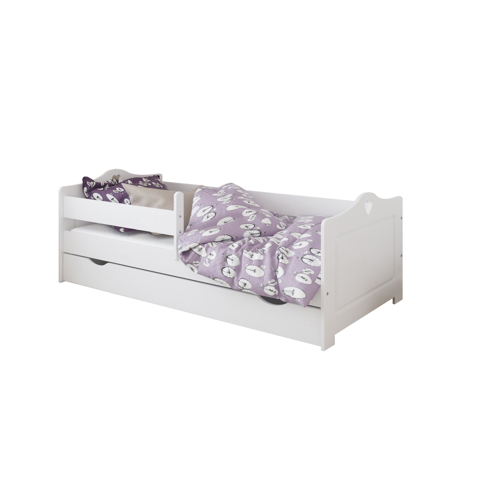 Herz-Motiv | Rausfallschutz & Schublade | Weiß oder Weiß-Pink | 80–90 × 160–200 cm