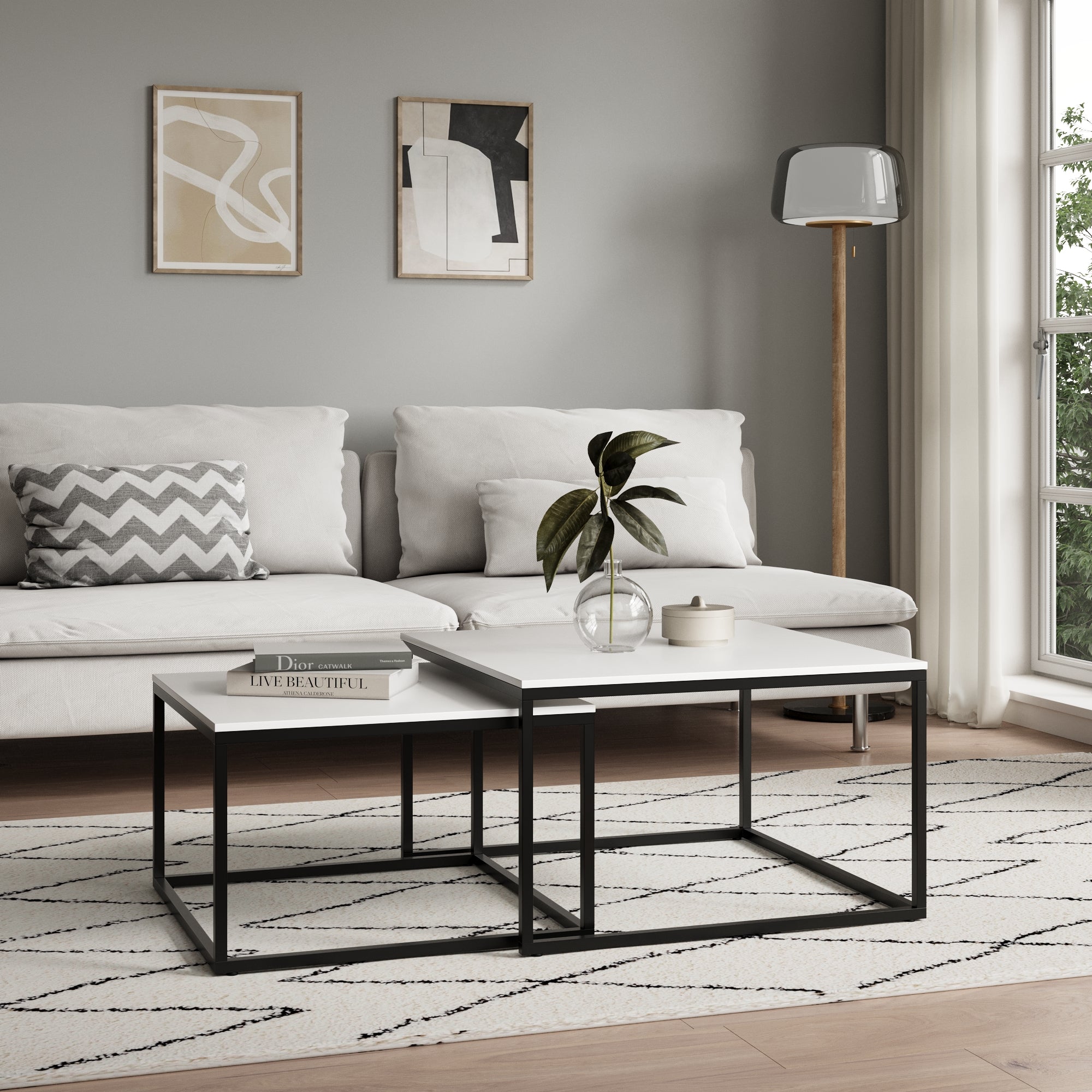 Lot de 2 tables basses carrées en bois, table de salon moderne, table d'appoint 2 en 1 avec structure en métal pour salon, bureau, table d'appoint design Loft TWIN, surface résistante aux rayures
