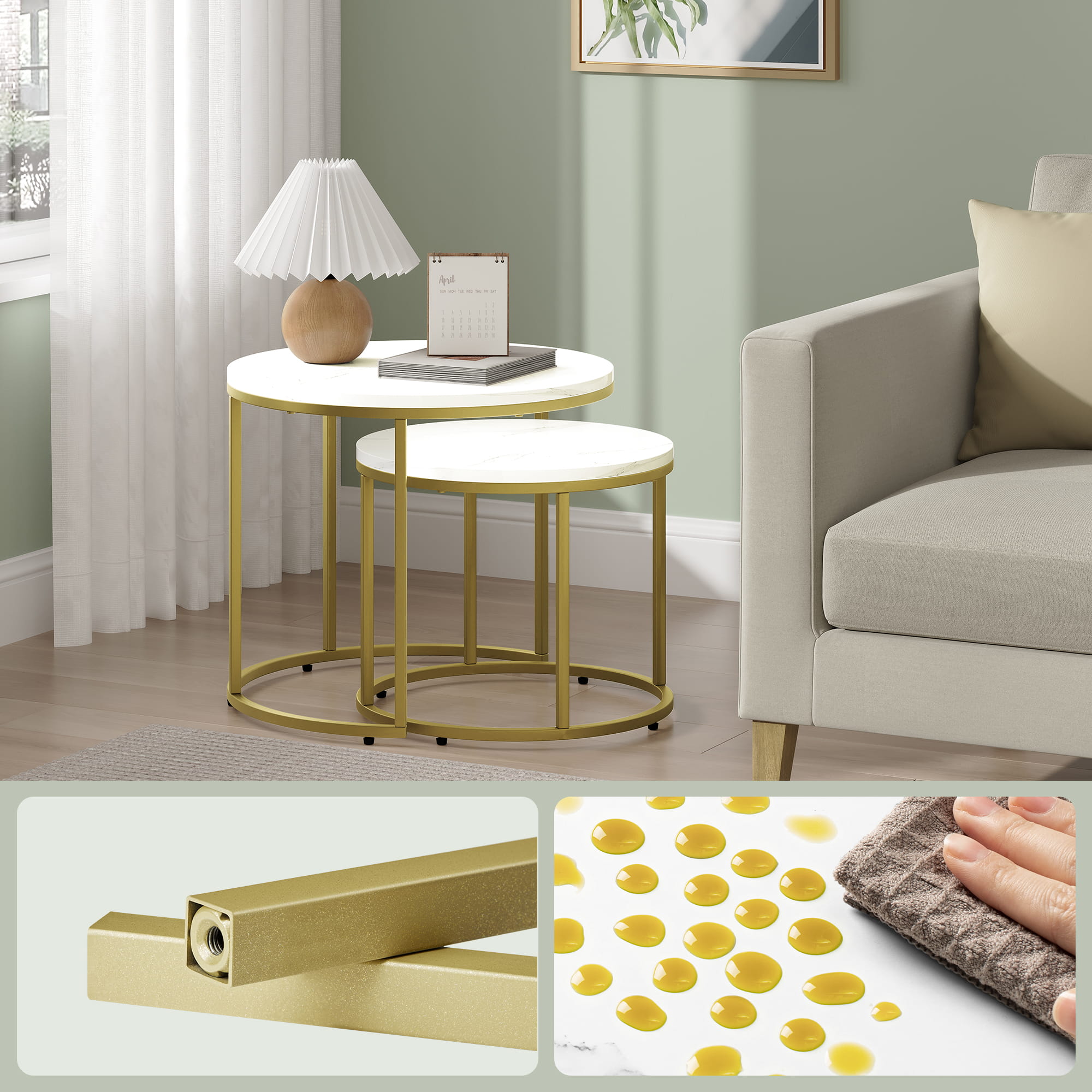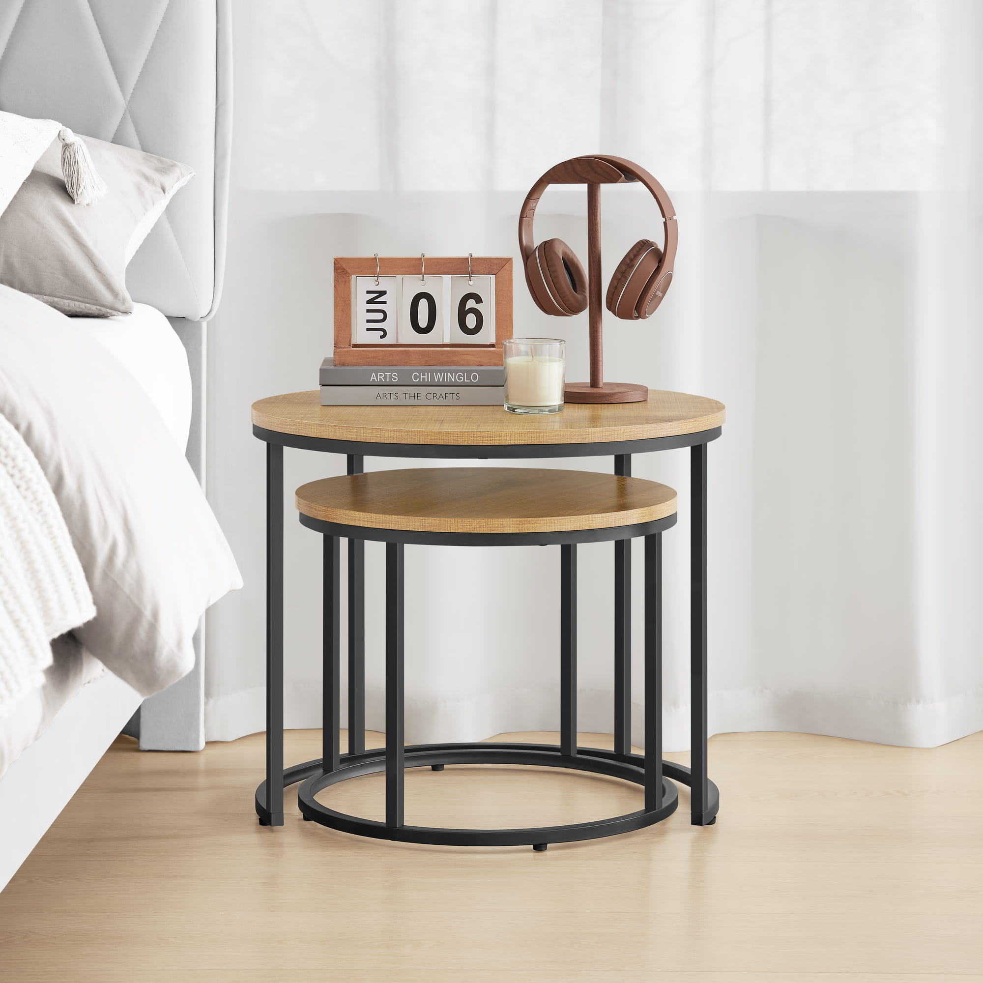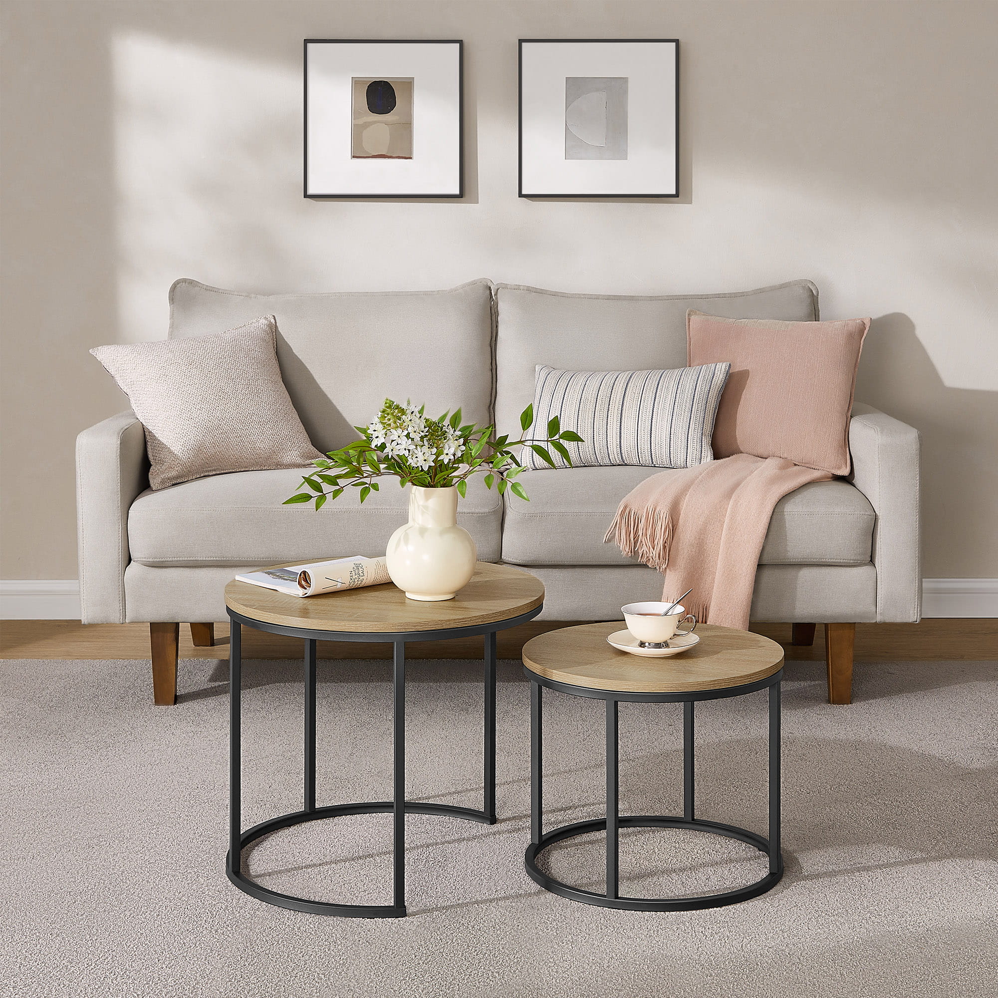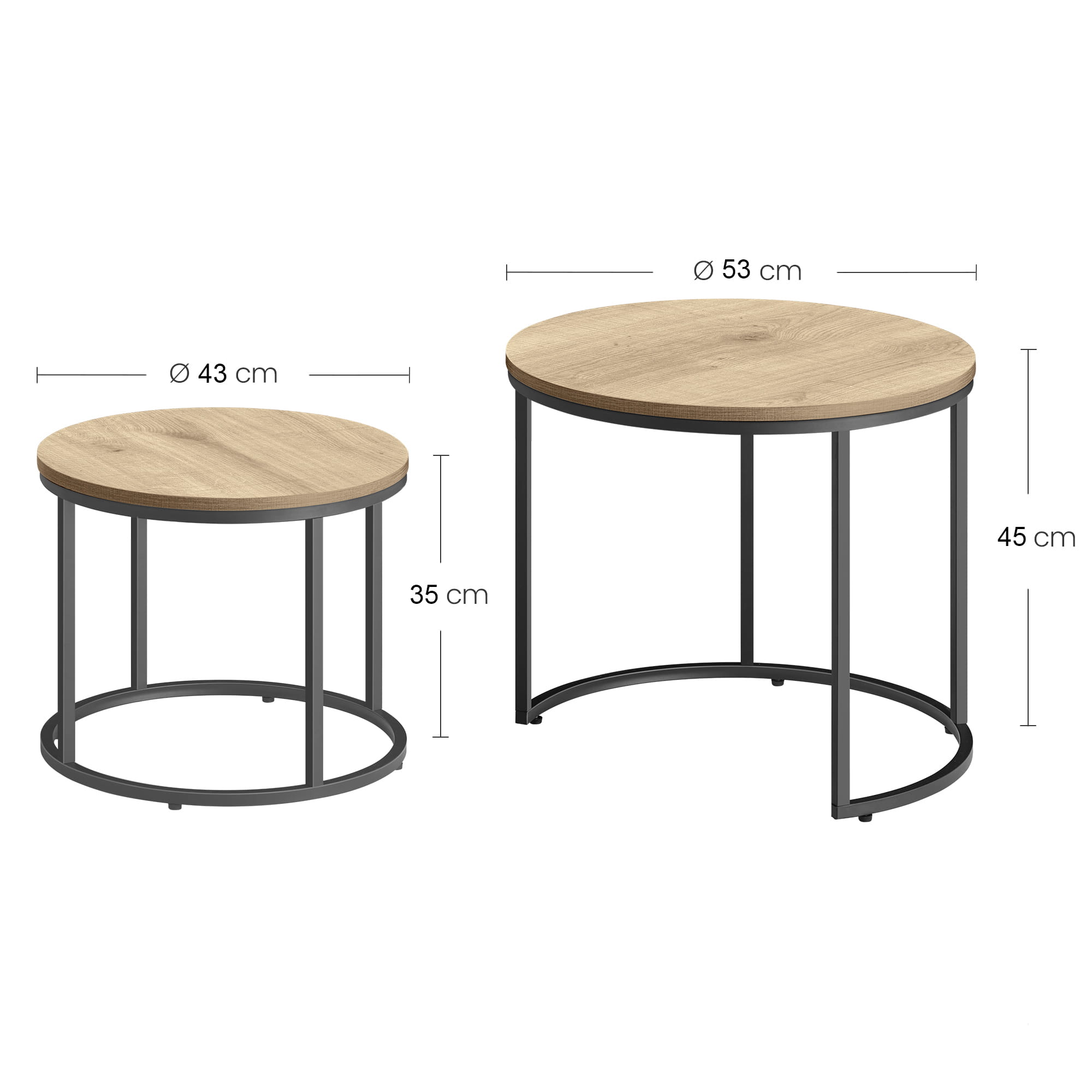 Table basse lot de 2 tables d'appoint rondes design loft 2 en 1 surface emboîtable résistante aux rayures, salon | 53cm et 43cm de large