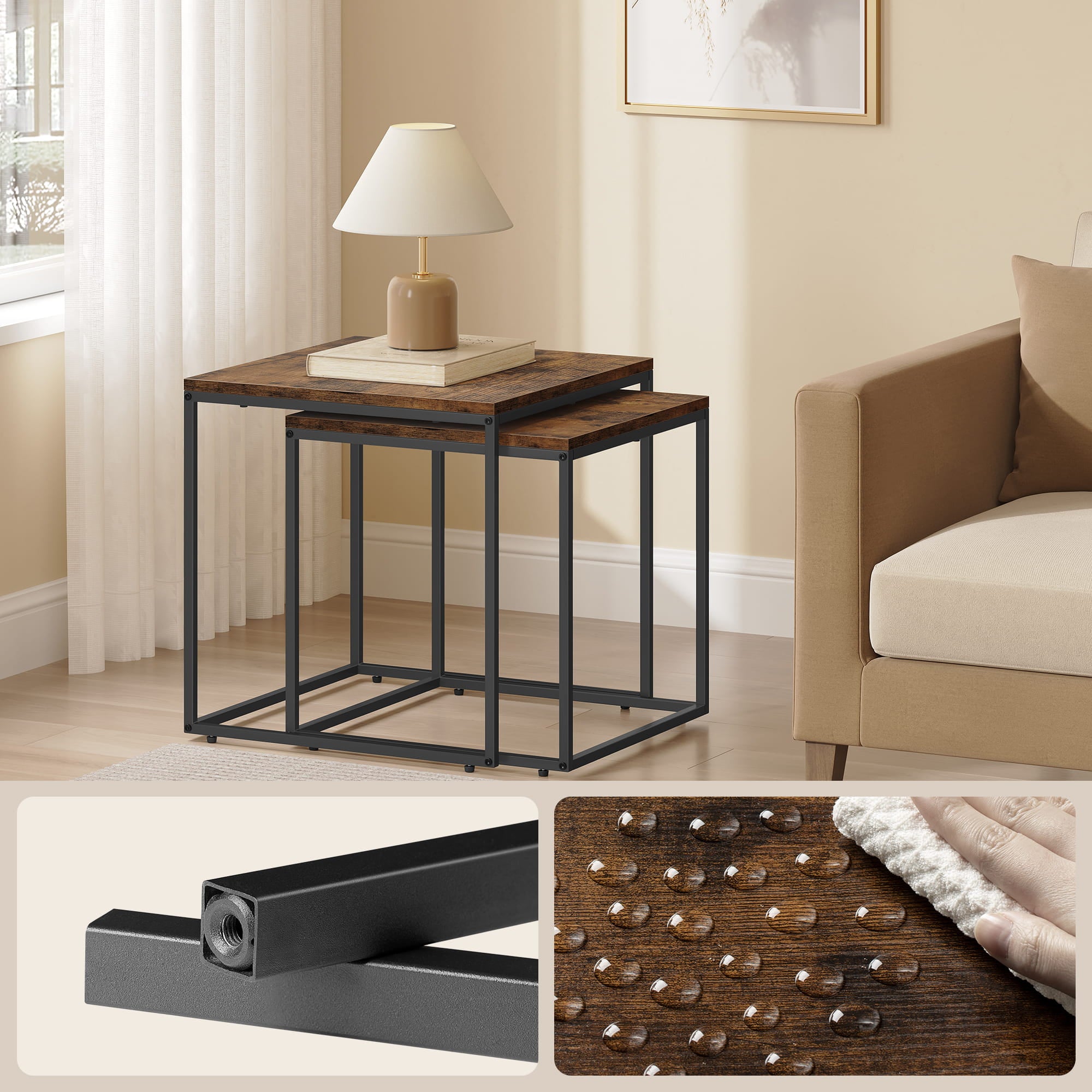 Ajoutez une nouvelle dimension à votre salon avec cet ensemble de 2 tables basses emboîtables au style loft moderne. L'ensemble comprend deux tables de tailles différentes : une de 53 cm et une de 43 cm, qui peuvent être parfaitement empilées l'une dans l'autre. Fabriquées à partir de matériaux durables, ces tables présentent une surface résistante aux rayures, idéale pour exposer des objets décoratifs, des boissons ou des livres. Leur design élégant et contemporain ajoute une touche de sophistication à tout espace de vie urbain. Que vous les utilisiez ensemble ou séparément, ces tables basses sont à la fois élégantes et fonctionnelles, offrant polyvalence et commodité.