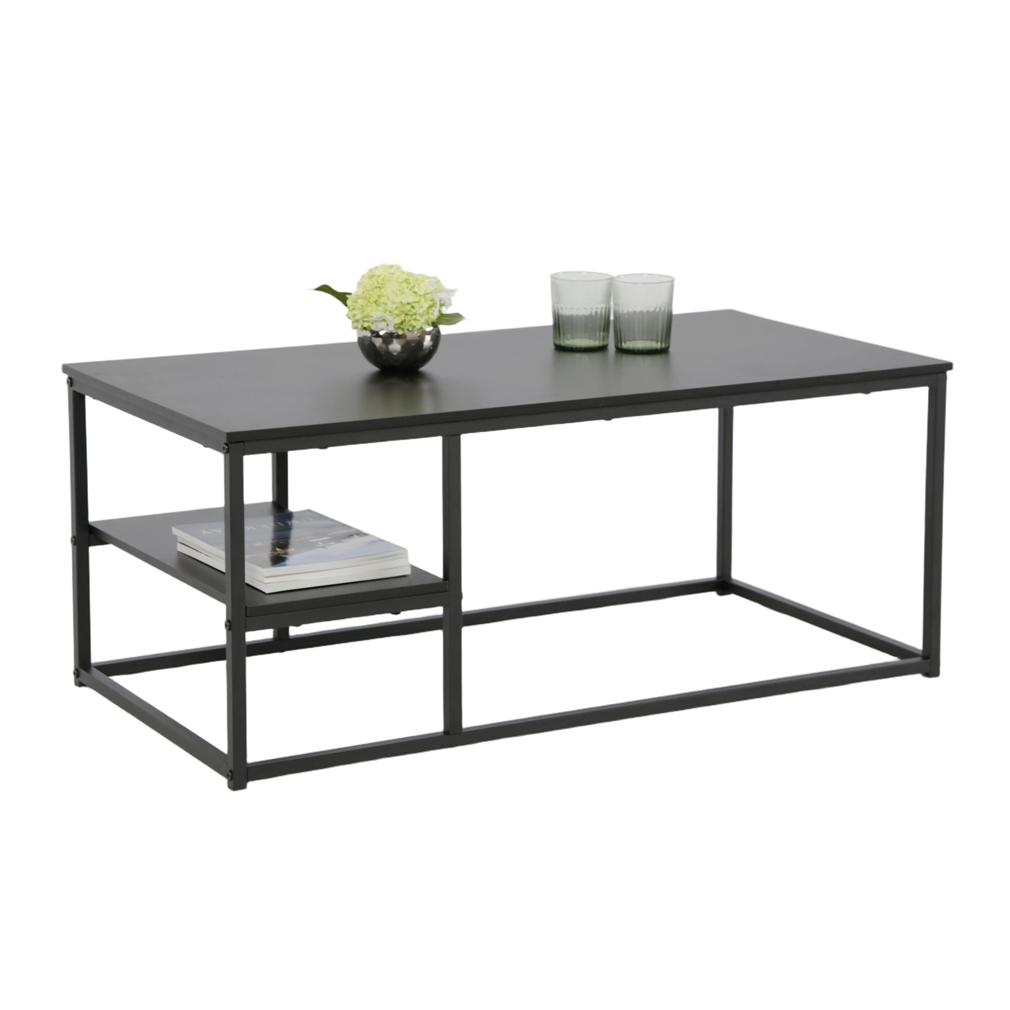 Couchtisch, Beistelltisch, Wohnzimmertisch, Tisch Couch | Mit Ablage und pulverbeschichtetem Metallrahmen | Pflegeleicht & robust | 102x52x42 cm (BxTxH) | Schwarz