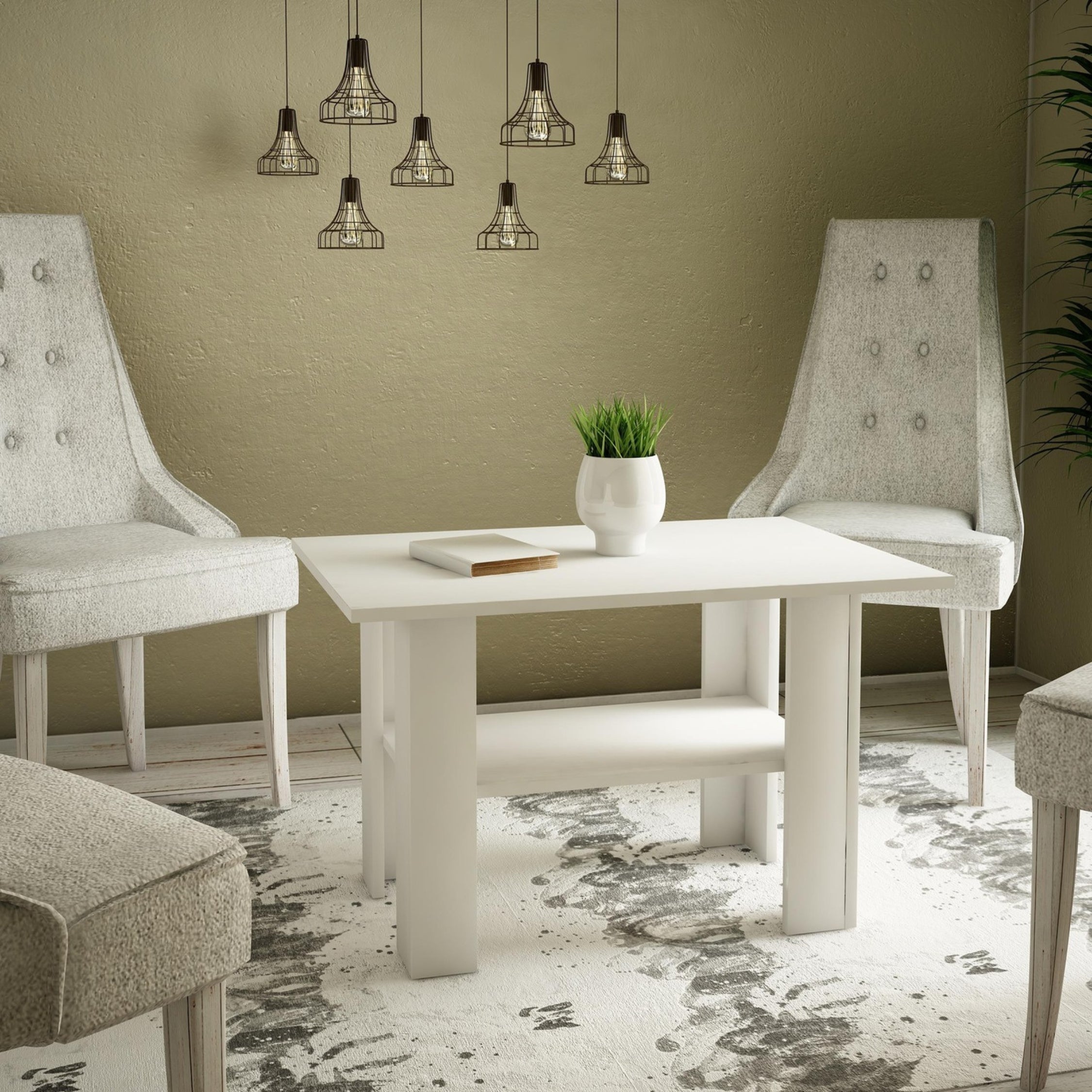 Dieser robuste und vielseitige Tisch ist so konzipiert, dass er verschiedene Raumeinrichtungen ergänzt, sei es ein Schlafzimmer, Wohnzimmer, Kinderzimmer, Jugendzimmer, Flur oder eine Garderobe. Mit seinen kompakten Abmessungen von 55 cm Höhe, 87 cm Breite und 60 cm Tiefe ist er die ideale Wahl für Räume jeder Größe. Der Tisch besteht aus strapazierfähiger, laminierter Platte mit einer Dicke von 16 mm, was Langlebigkeit und Widerstandsfähigkeit gewährleistet. Die matte laminierte Oberfläche verleiht ihm ein modernes Aussehen, das gut zu zeitgenössischen Einrichtungsstilen passt.