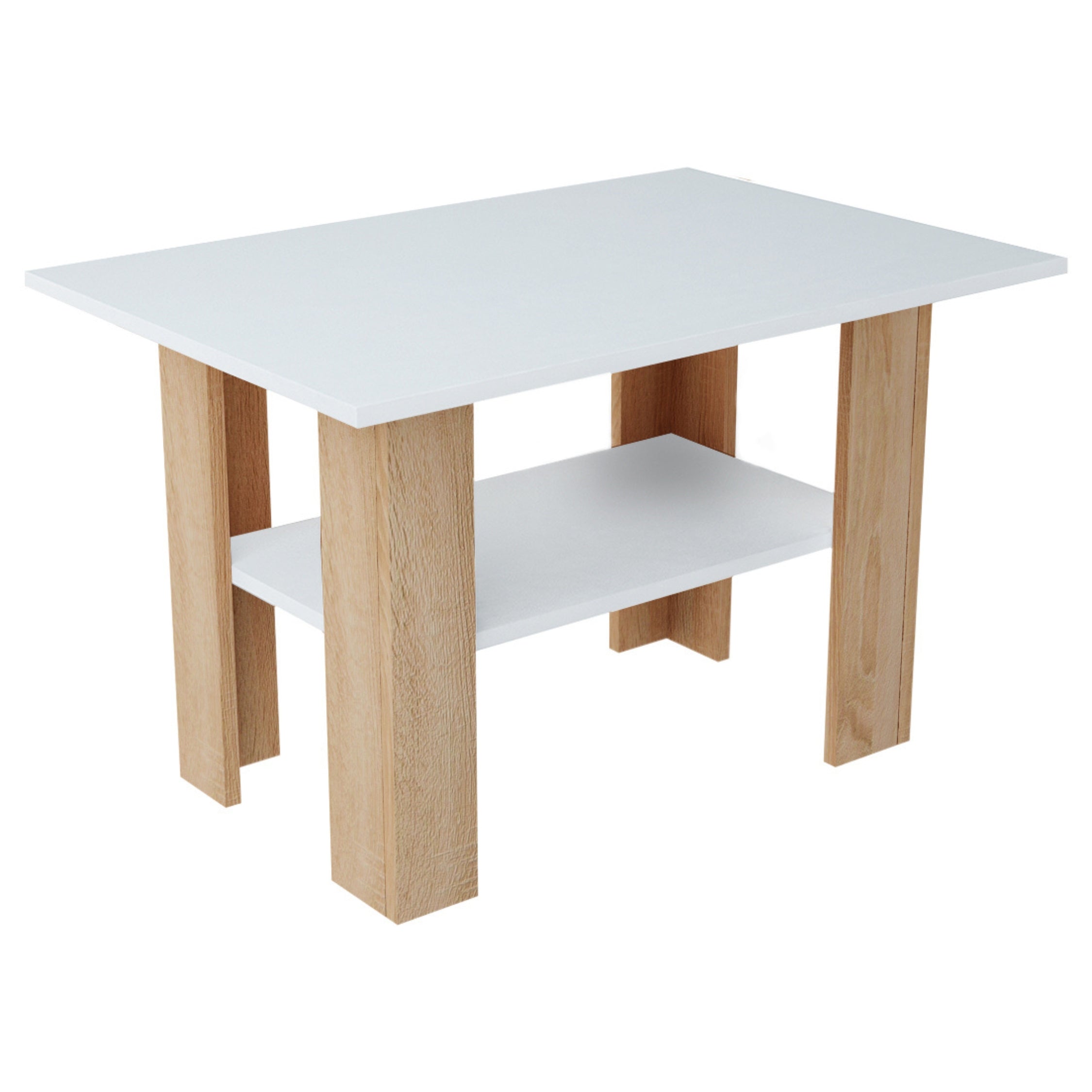 Eines der herausragenden Merkmale dieses Tisches ist seine zusätzliche Aufbewahrungsmöglichkeit. Er ist mit einem Regal ausgestattet, das praktischen Stauraum für Bücher, Dekoration oder andere Gegenstände bietet. Der Tisch wird in einem Paket verpackt geliefert, was den Transport und die Montage erleichtert. Diese Kombination aus Praktikabilität, Haltbarkeit und stilvollem Design macht ihn zu einer unverzichtbaren Ergänzung für jedes Zuhause.
