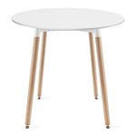 Table de salle à manger Table à manger ronde blanche avec pieds en hêtre naturel, diamètre 60 & 80 cm - Design moderne et ergonomique pour cuisine, salle à manger, salon - Panneau MDF résistant