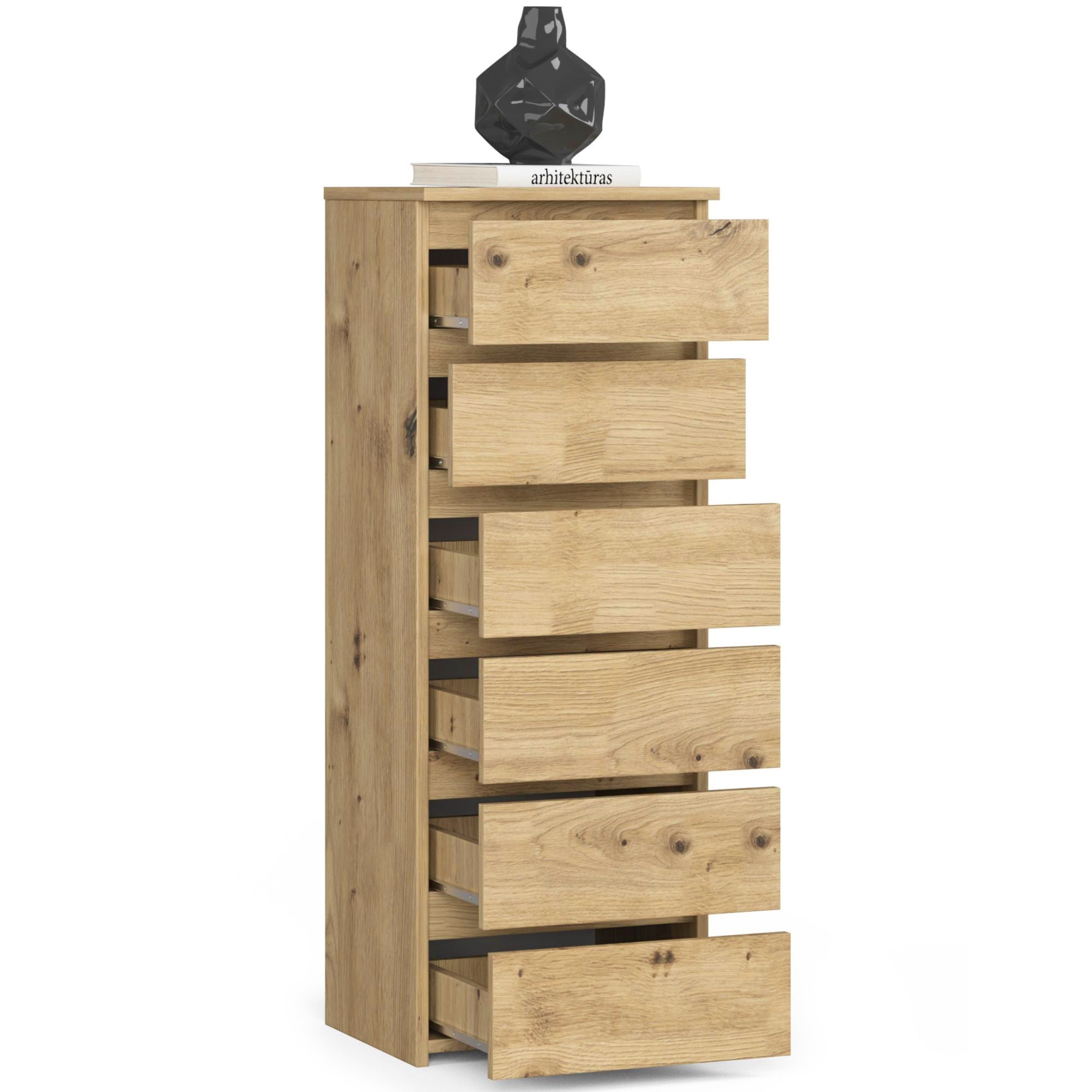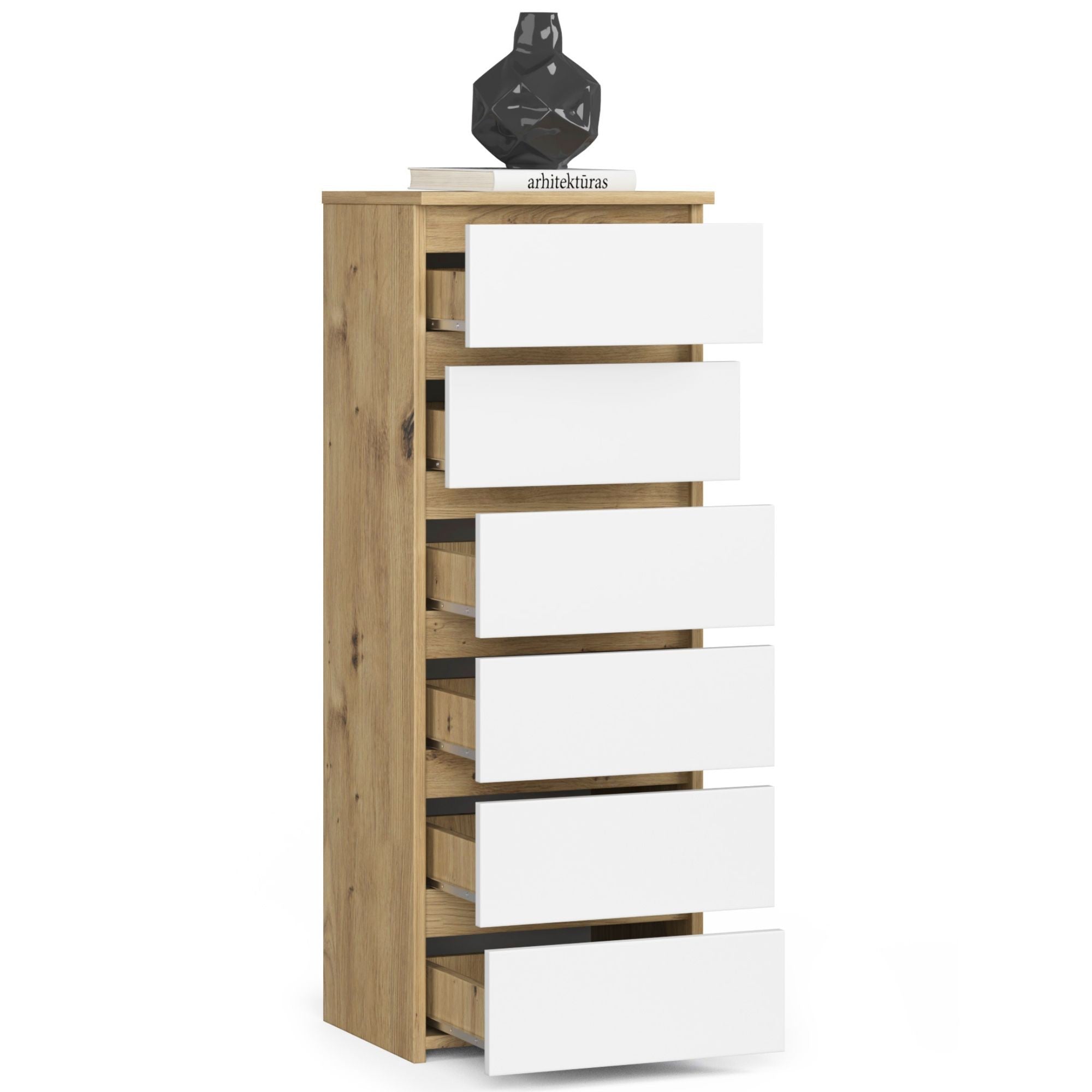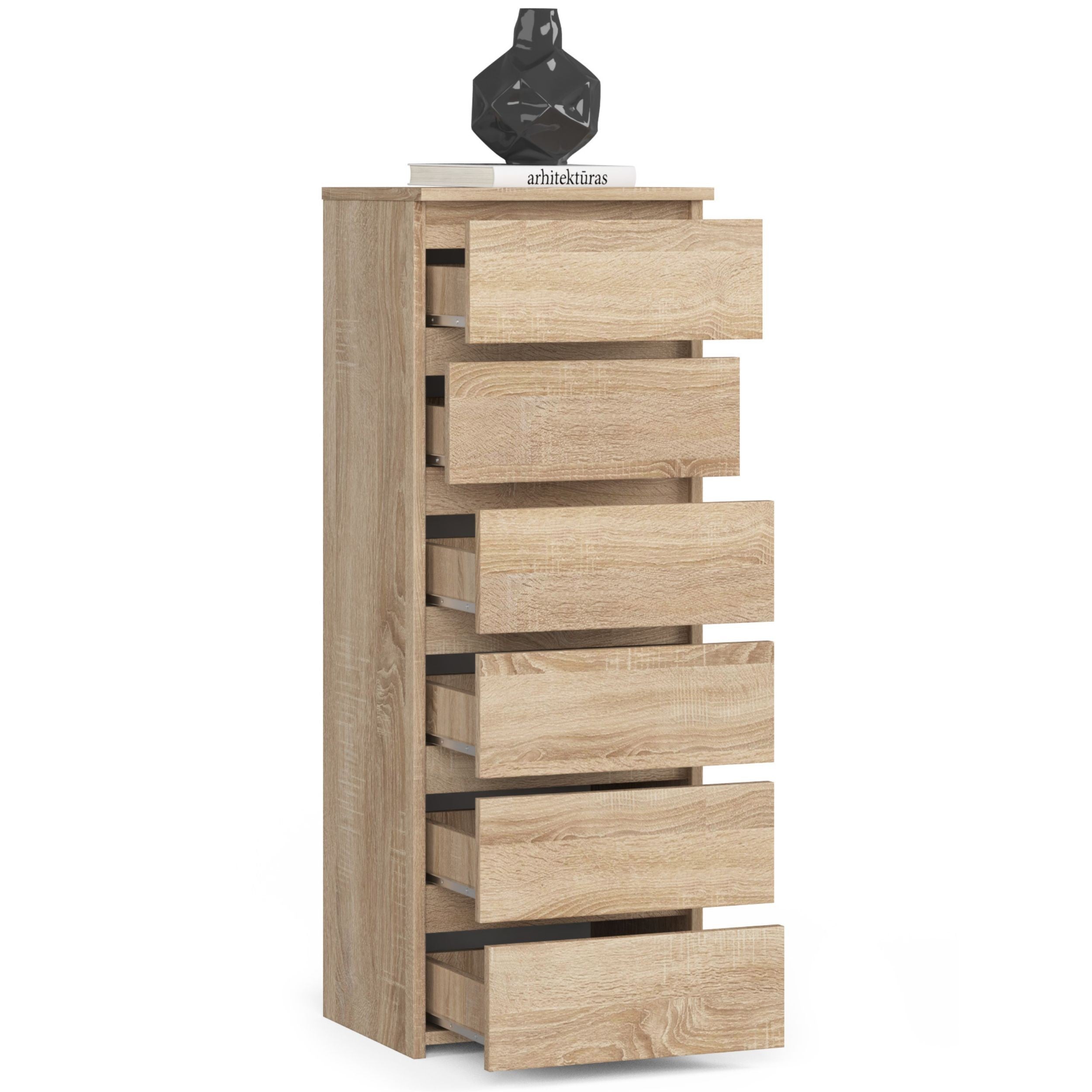 Commode avec 6 tiroirs commode chambre couloir salon organisateur commode 40 cm de large 109 cm de haut | Buffet haut en bois, meuble polyvalent, étroit
