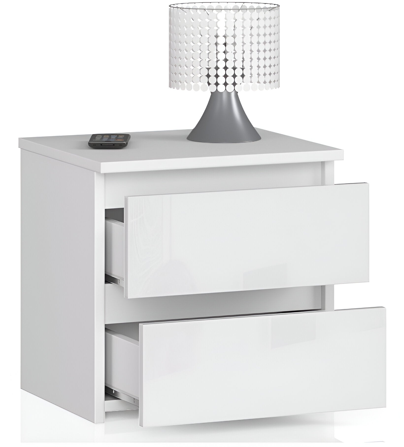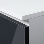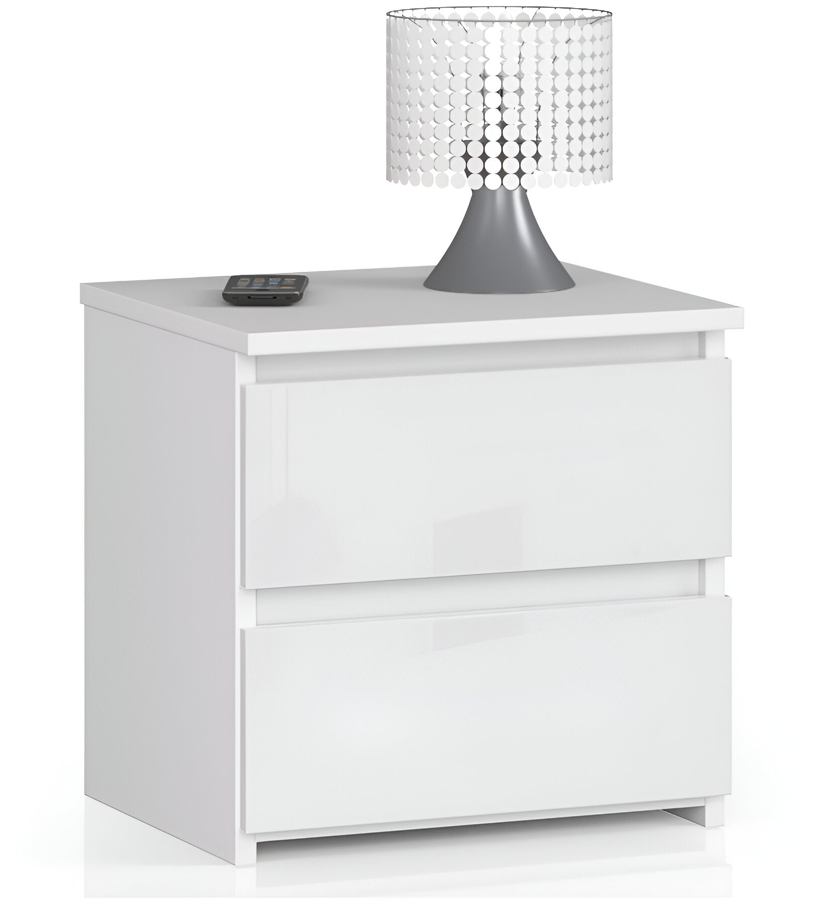 La bande de chant en ABS s'enroule autour des façades et des côtés, rendant le meuble plus résistant aux dommages mécaniques mineurs. Le design polyvalent dans un style blanc universel et minimaliste se marie parfaitement avec divers décors de chambre.