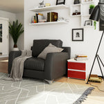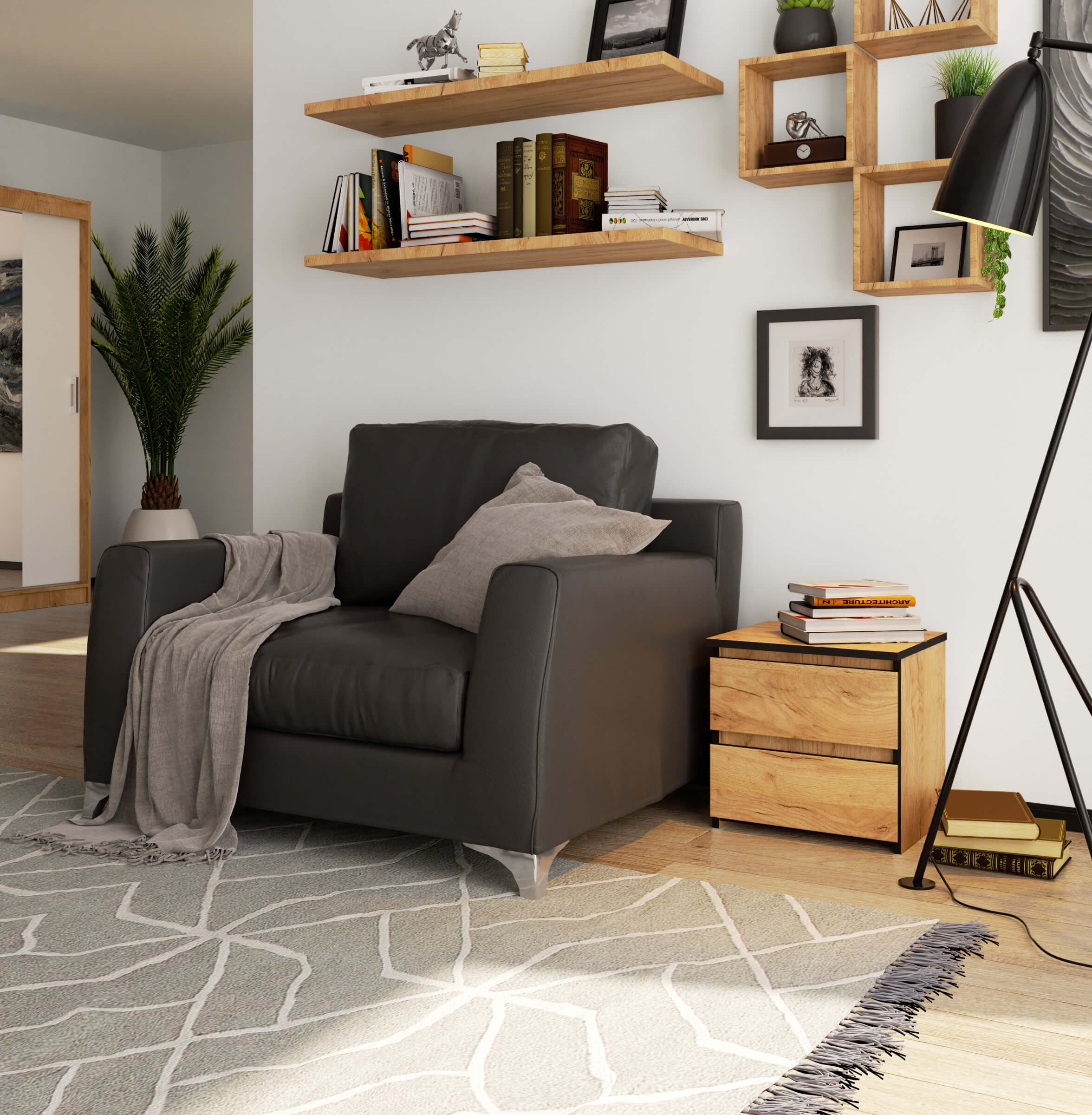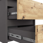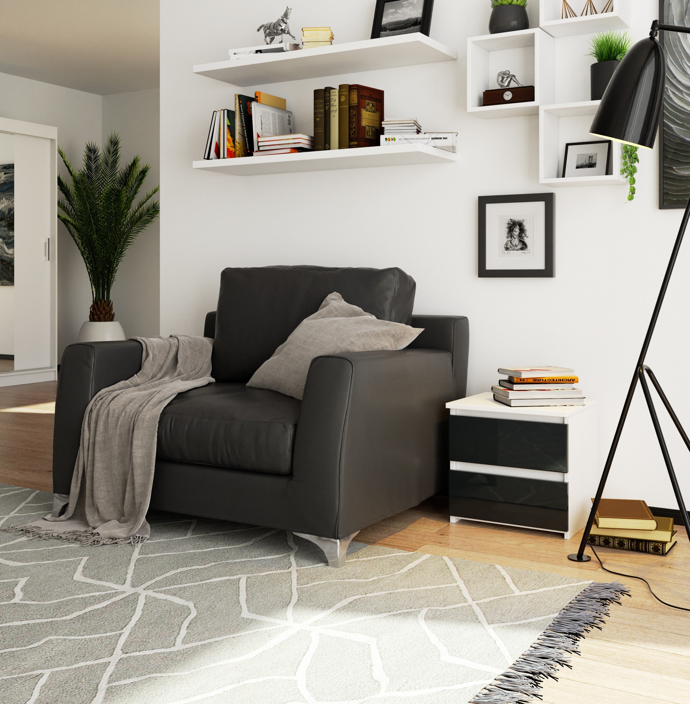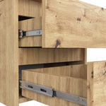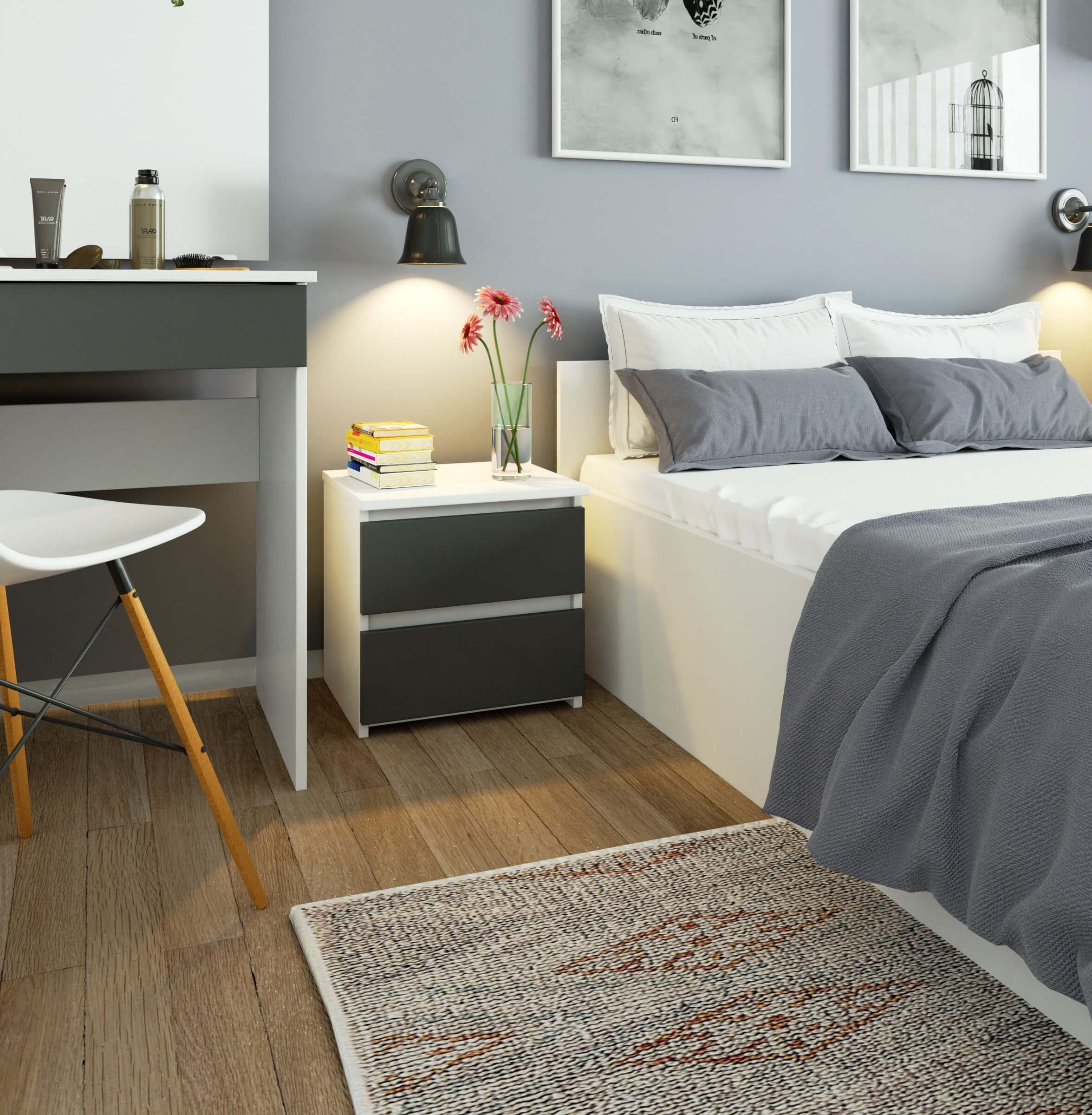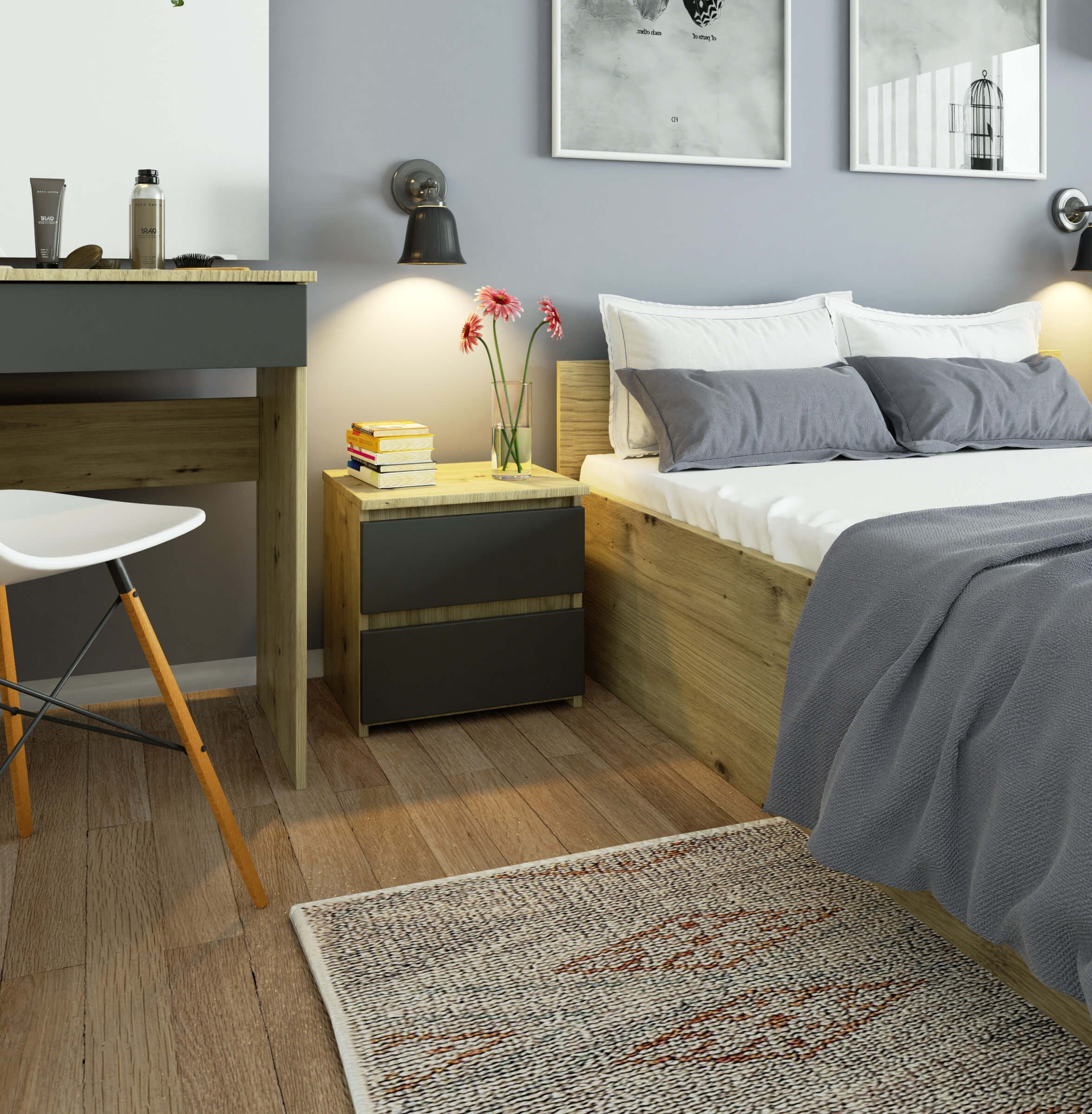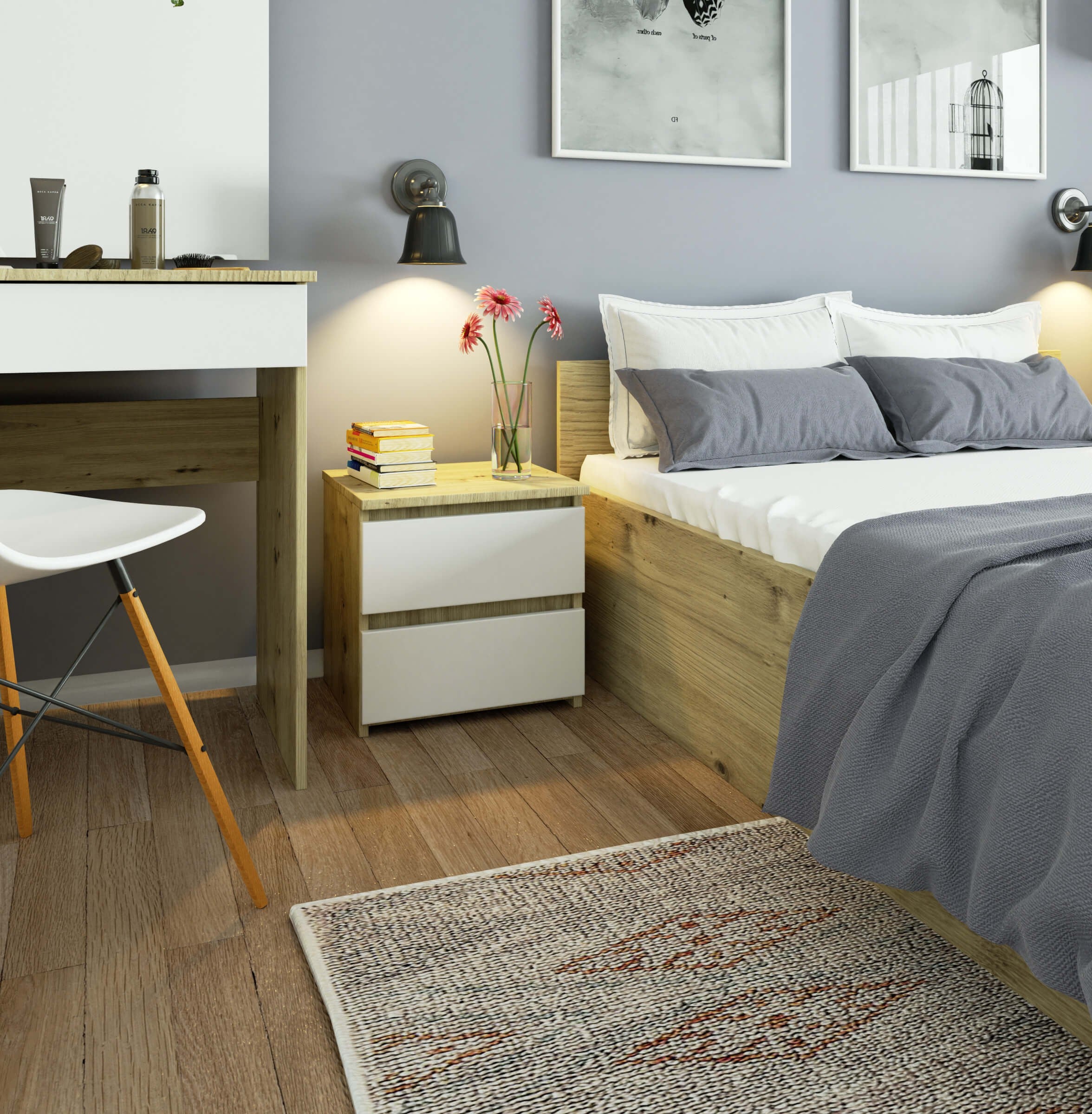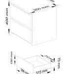Faites l'expérience d'une qualité exceptionnelle avec notre meuble fabriqué à partir d'un stratifié résistant à l'abrasion de 16 mm - une garantie de durabilité à long terme. Un rangement efficace est rendu possible grâce à deux tiroirs spacieux sans poignées dotés de roulettes métalliques qui permettent un accès sans effort à vos effets personnels.