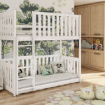 Ce lit superposé, élégamment décoré en blanc, est un complément idéal à toute chambre d'enfant. Fabriqué de manière experte à partir de bois de pin de haute qualité, ce lit est non seulement robuste, mais possède également une esthétique classique qui complète divers styles de décoration.
