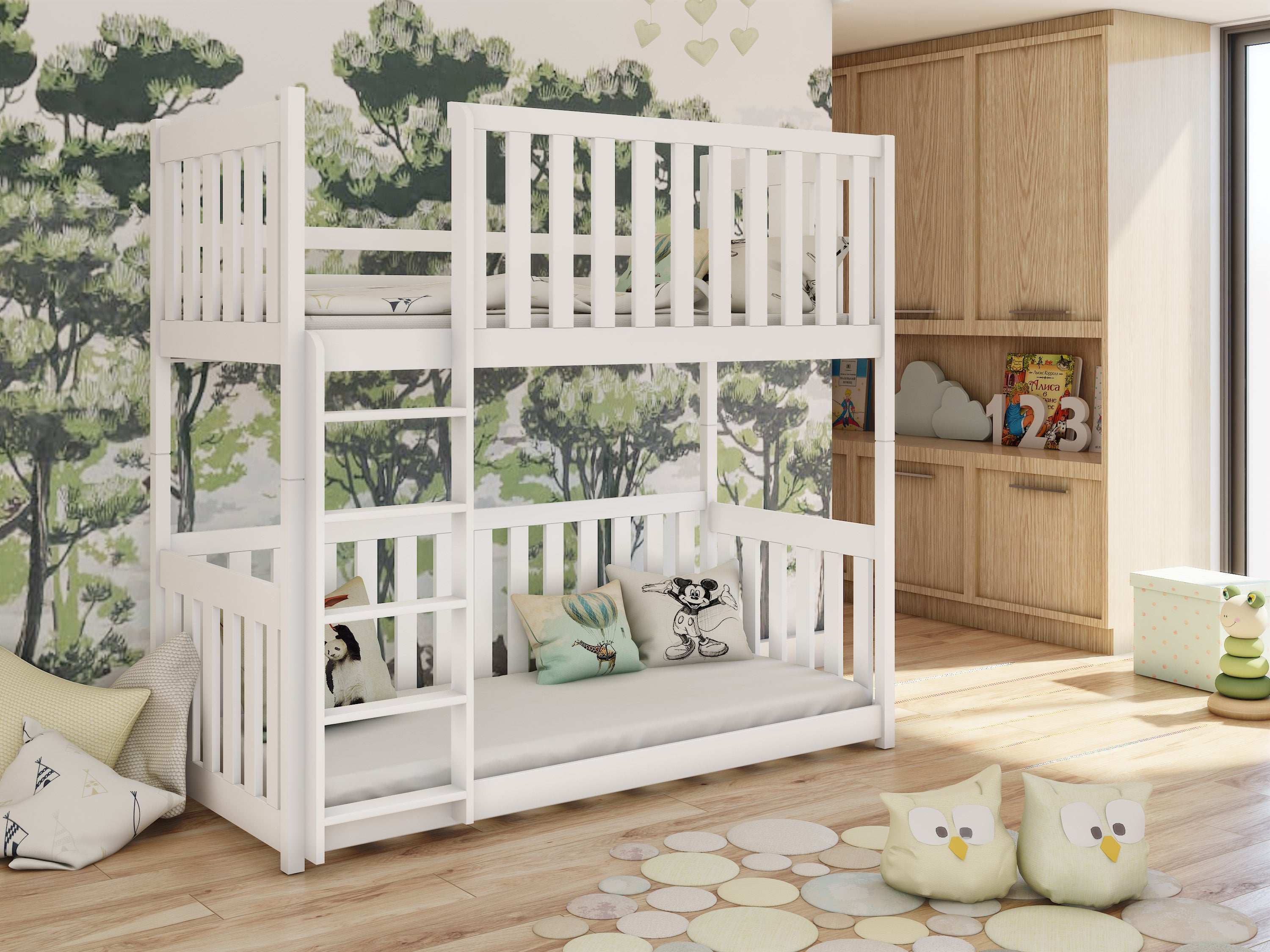 Le cadre est traité avec une peinture à base d'eau anti-allergène et sans danger pour les enfants, garantissant la sécurité et le bien-être de votre enfant. Le lit superposé est conçu pour deux personnes, chaque plan de couchage supportant jusqu'à 100 kg.