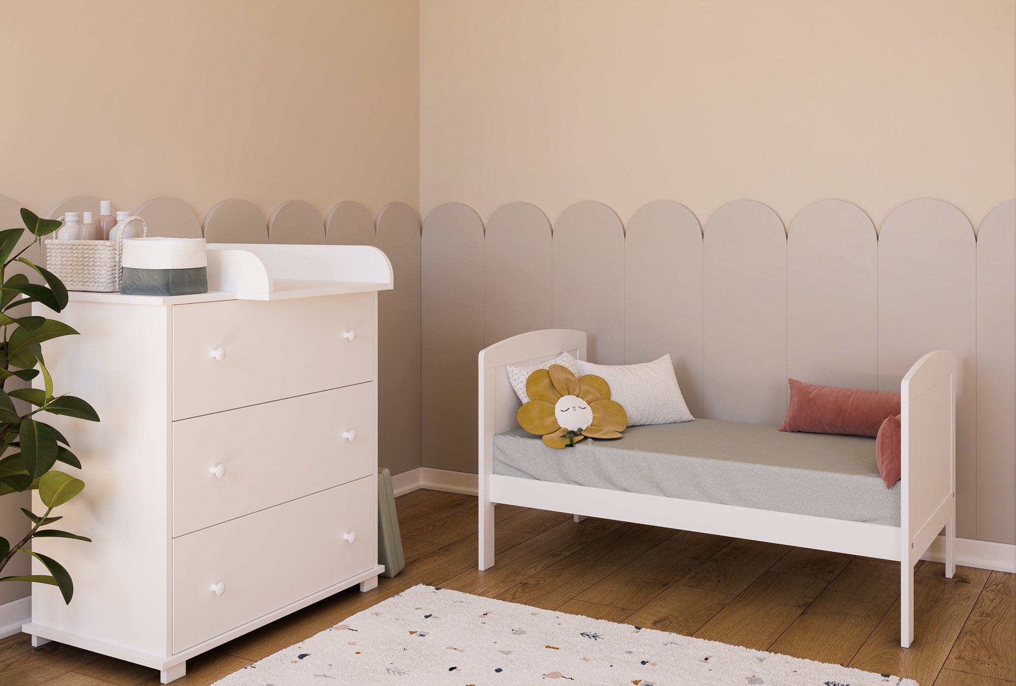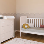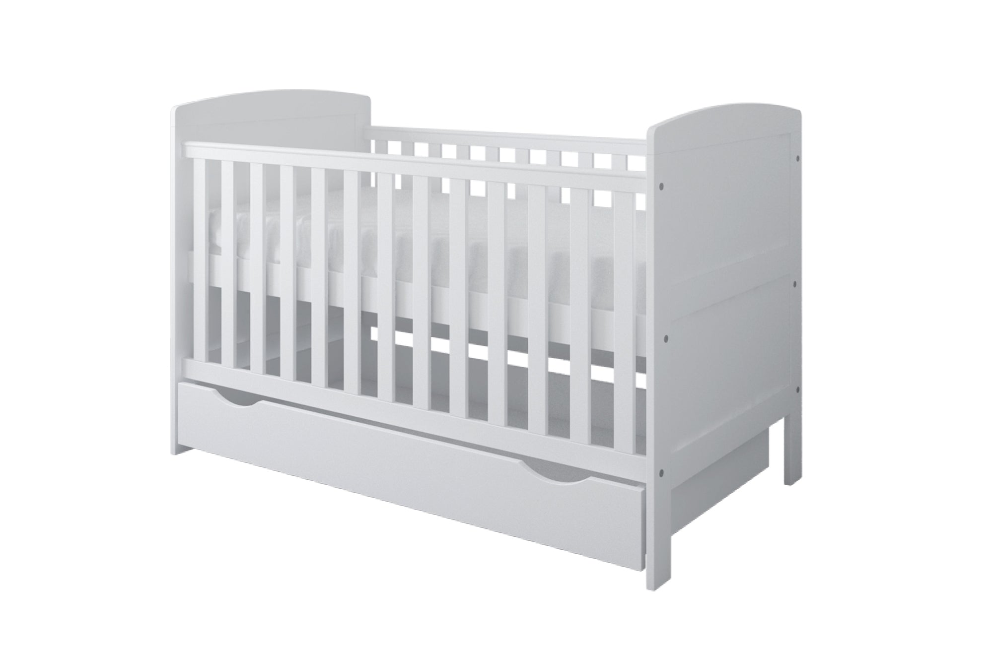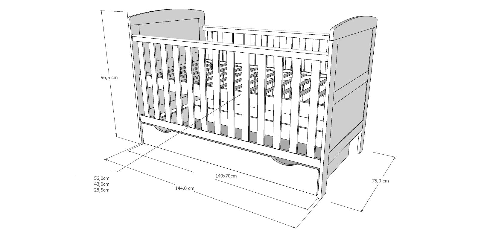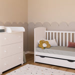 Le design blanc et élégant s'adapte à tous les intérieurs et confère à la chambre d'enfant une élégance intemporelle. Fabriqué à partir de matériaux de haute qualité, le lit bébé garantit une sécurité et une durabilité maximales. Le montage facile vous permet d'assembler le lit rapidement et sans trop d'effort, afin que votre bébé puisse dormir dans son nouveau lit en un rien de temps.