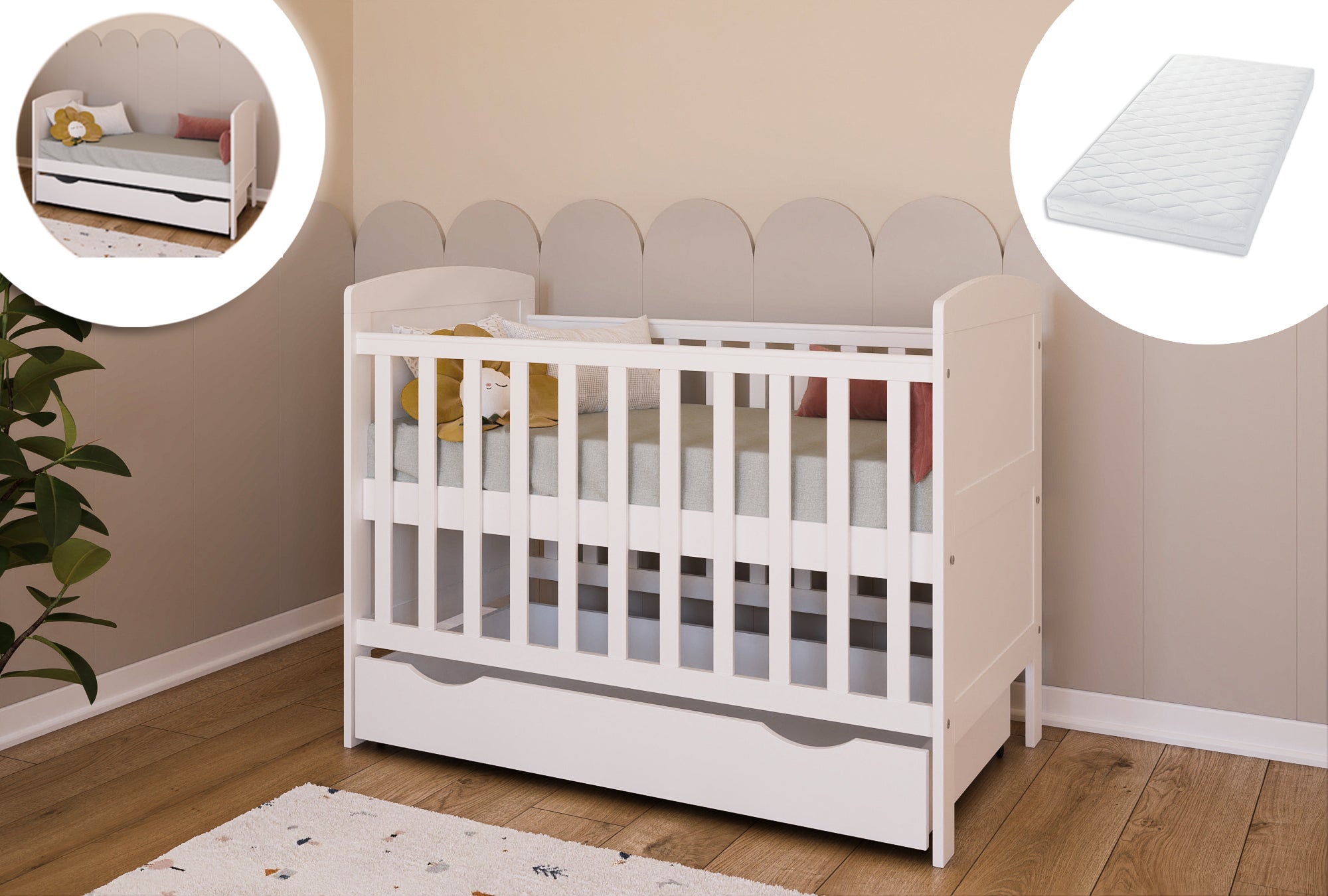 Lit bébé 3 en 1 blanc avec matelas