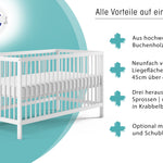 Stabil Buchenholz | Höhenverstellbar | Herausnehmbare Sprossen | Ab Geburt | 60–70 × 120–140 cm