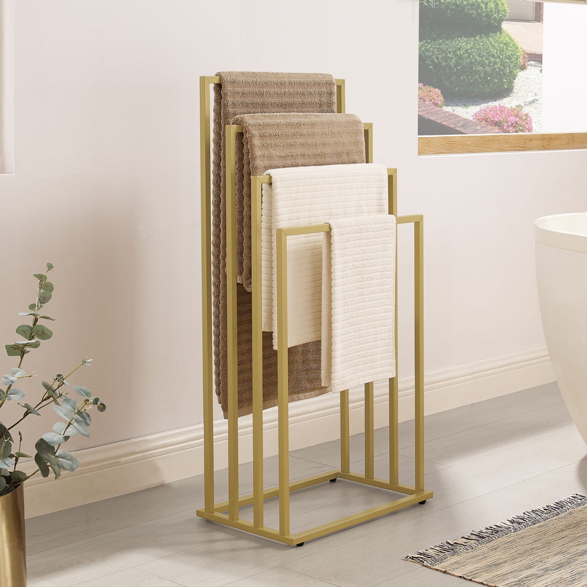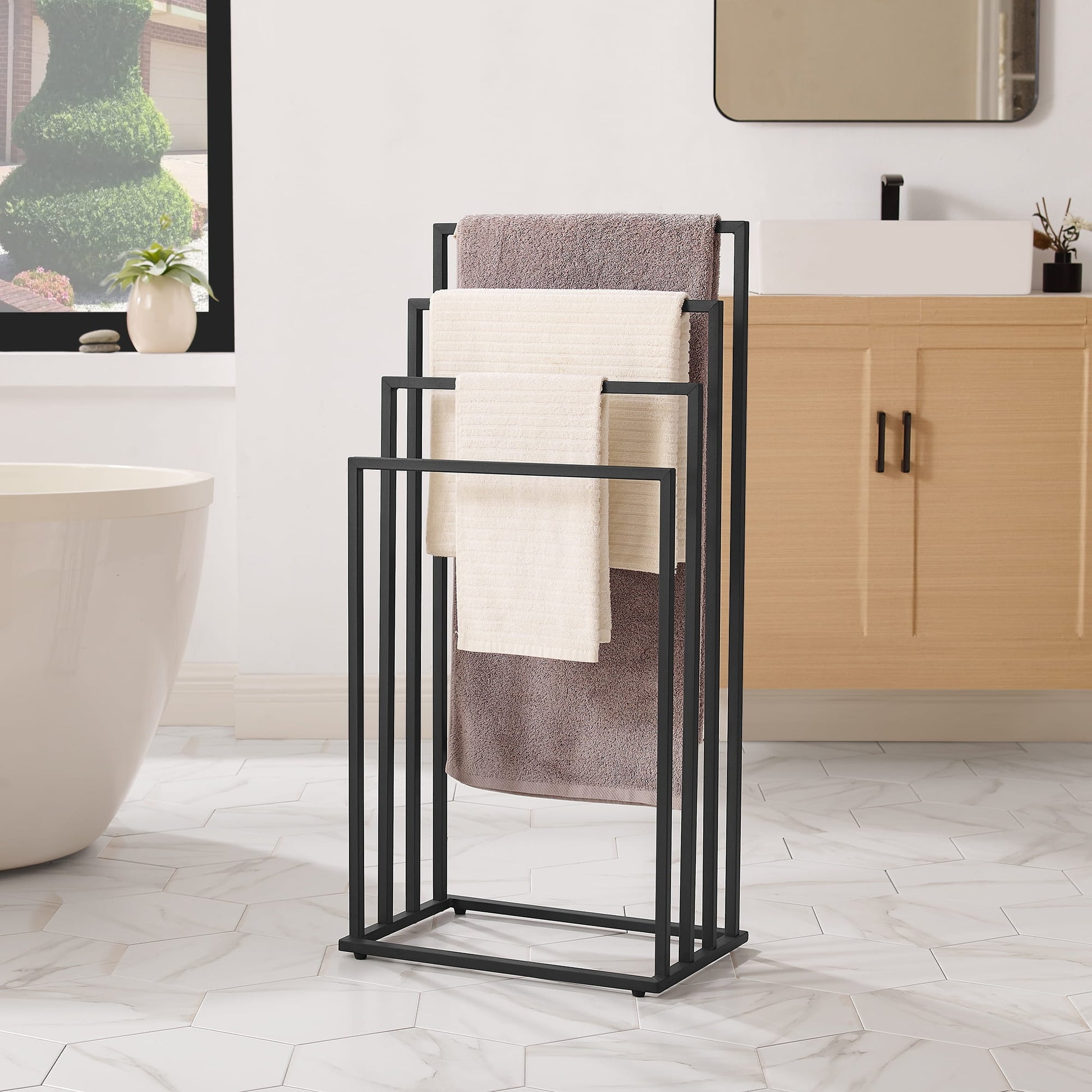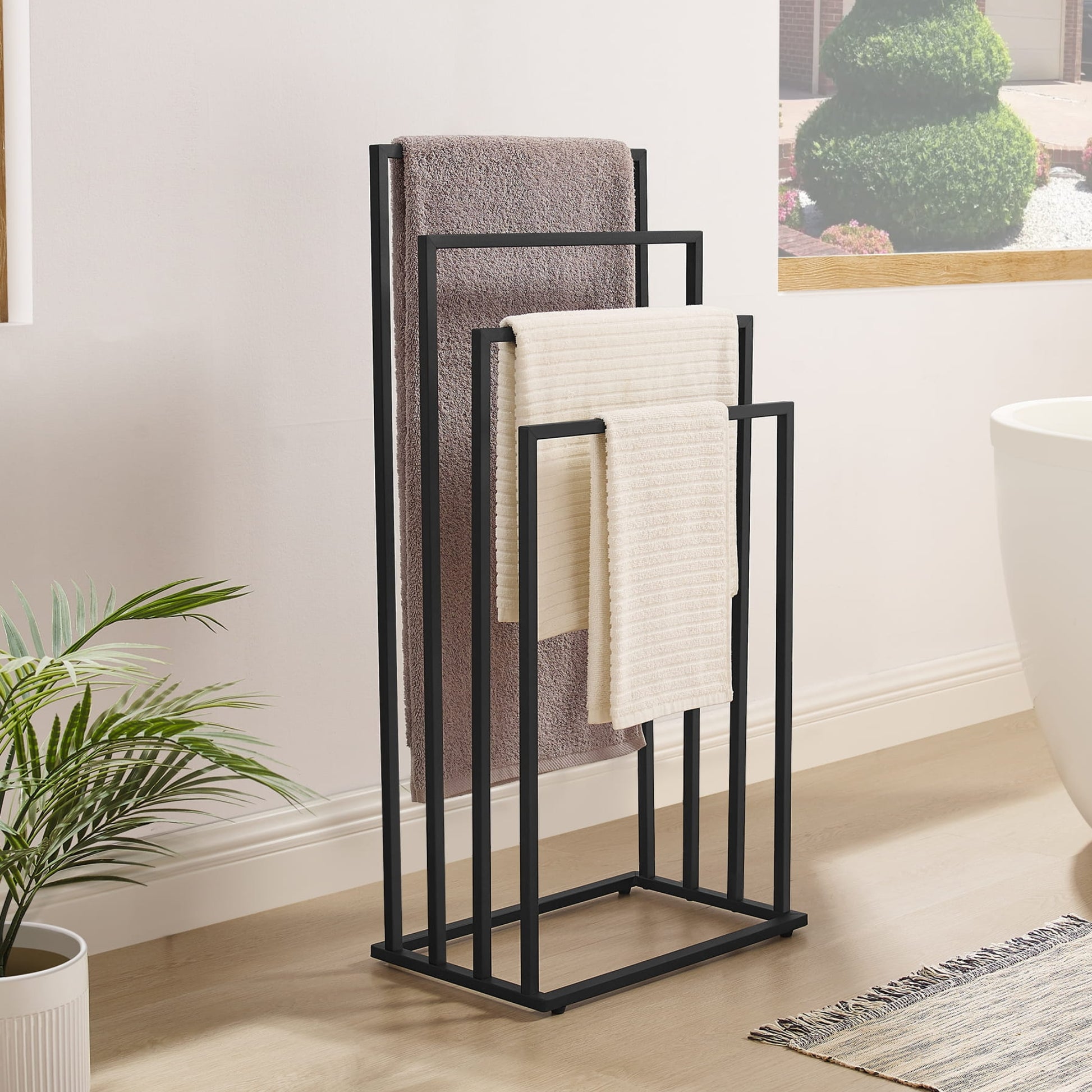 Handtuchhalter ohne Bohren Handtuchständer aus Stahl mit 4 Stangen Handtuchhalter stehend Handtuchstange Bad Badezimmer | 4 Sprossen freistehend aus Stahl | 45x29x93,5 cm (BxTxH)