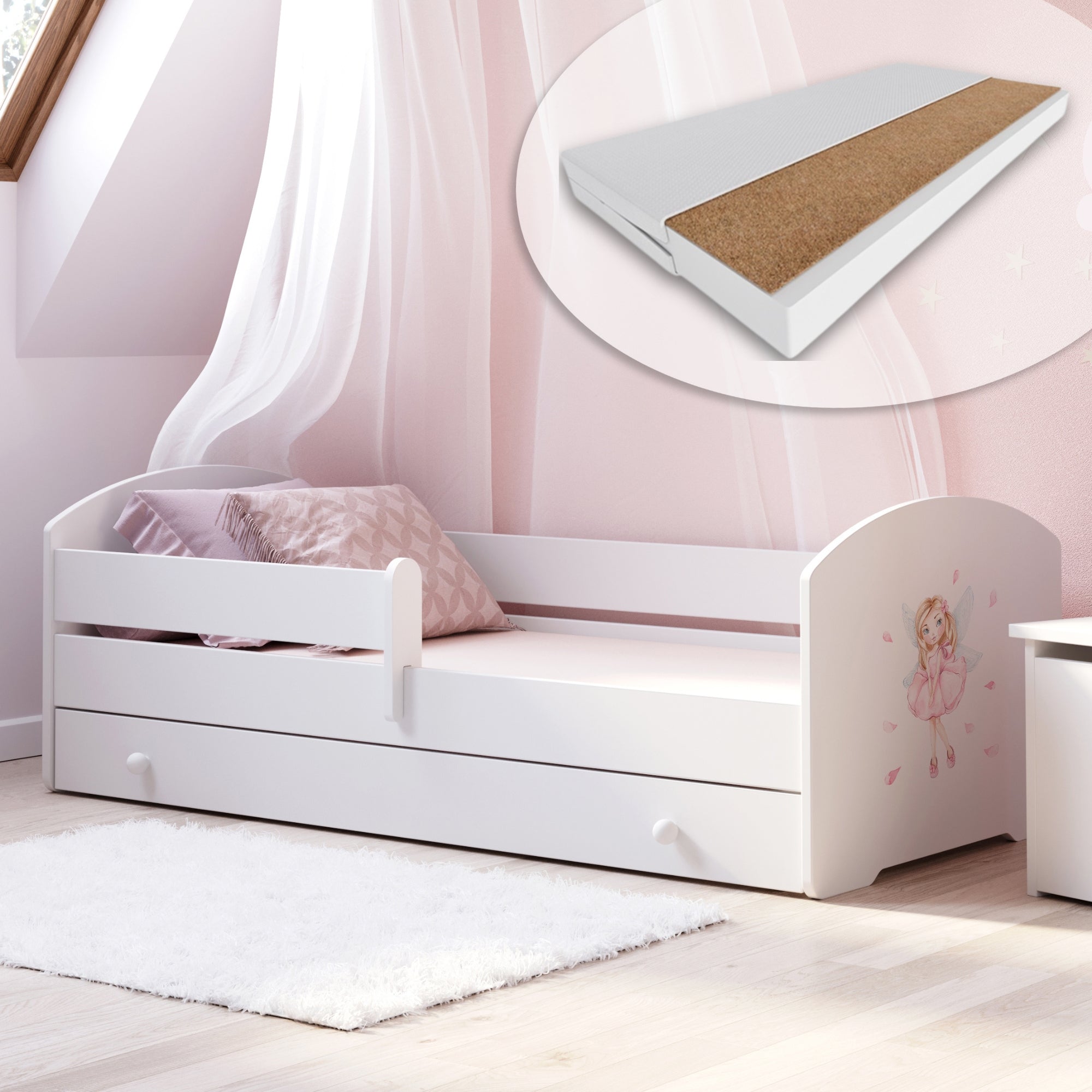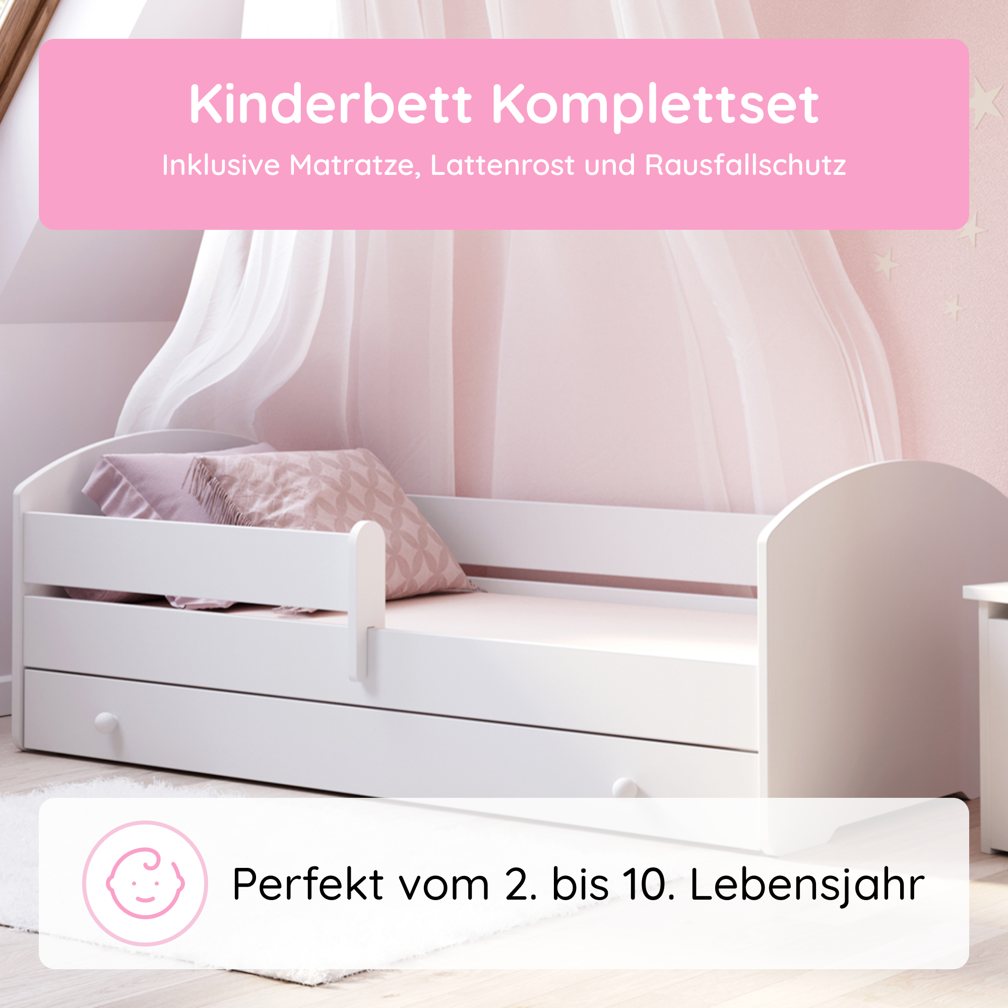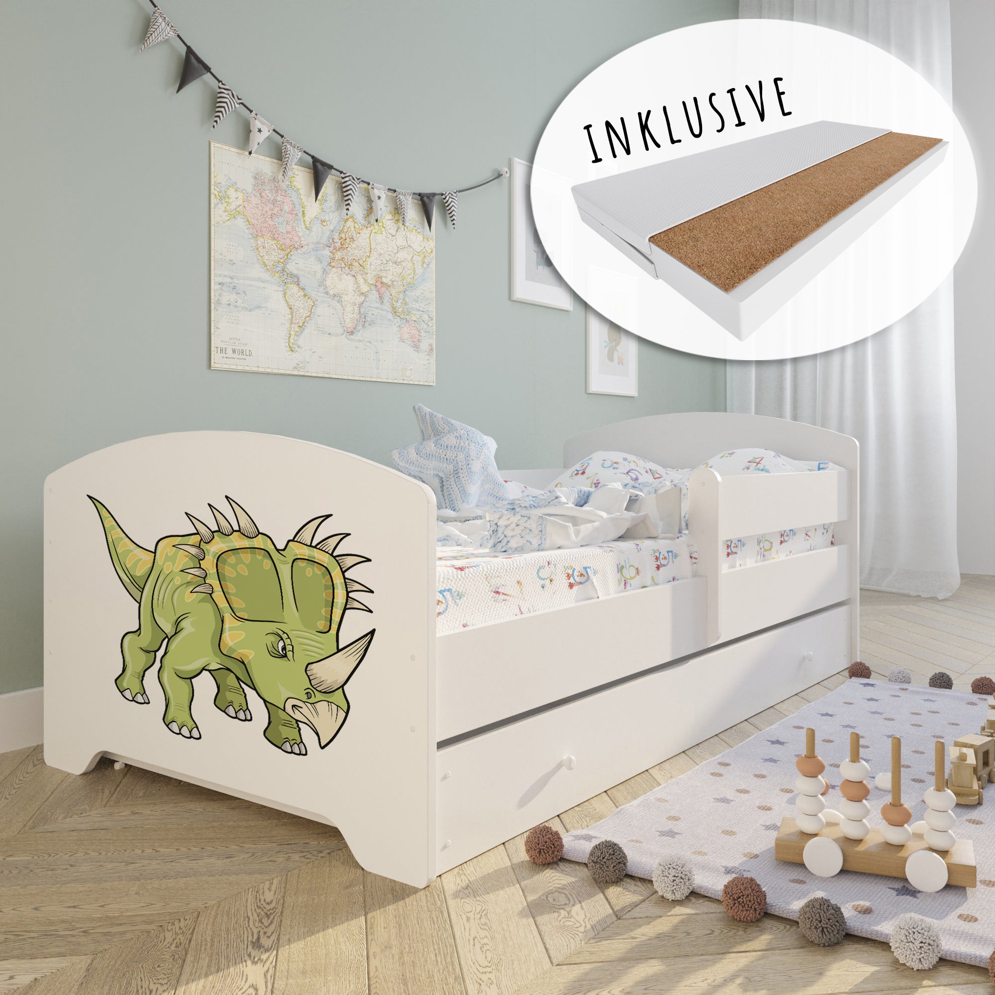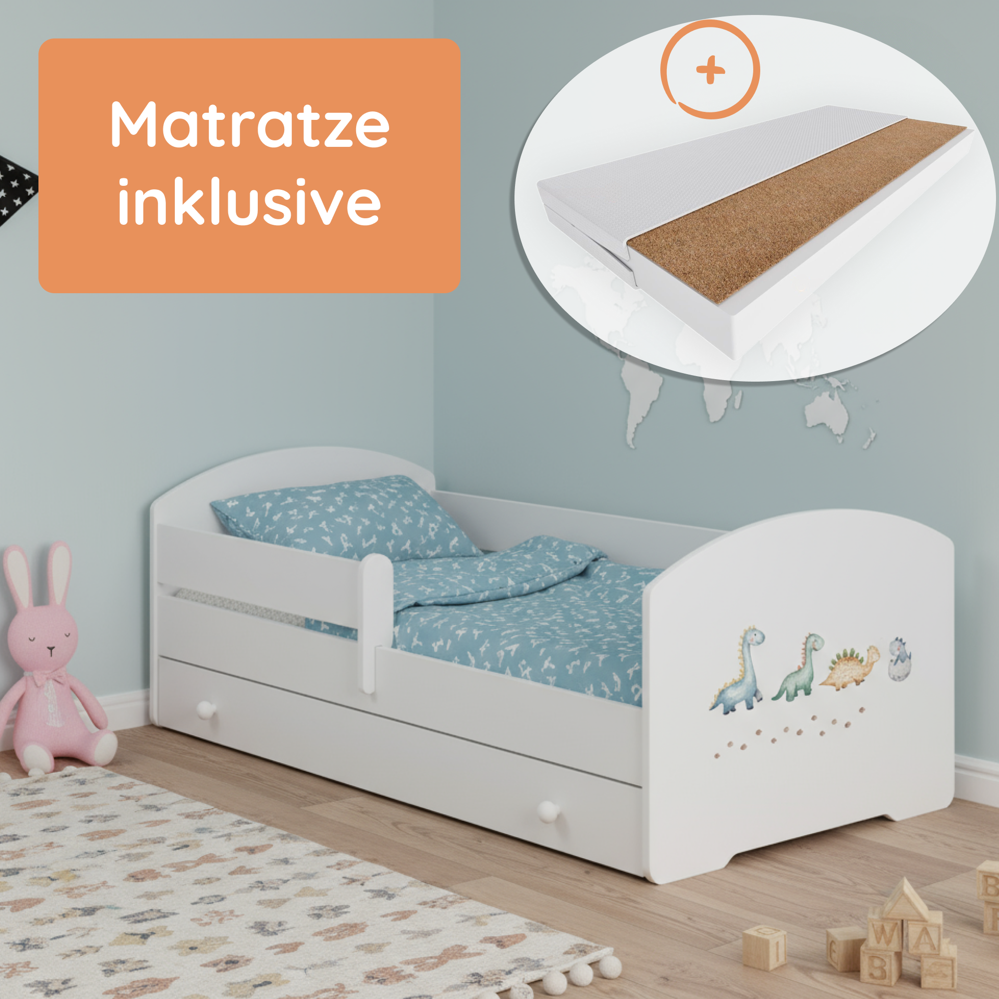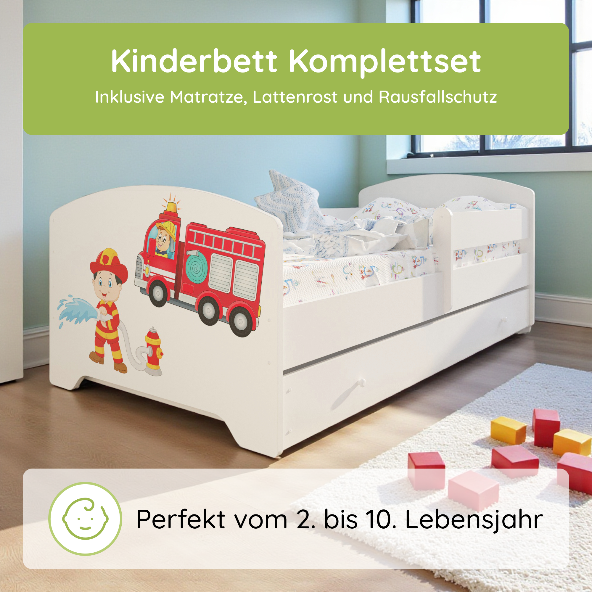 Komplett-Set | Matratze, Lattenrost & Schublade | Wählbares Motiv | 70–80 × 140–160 cm