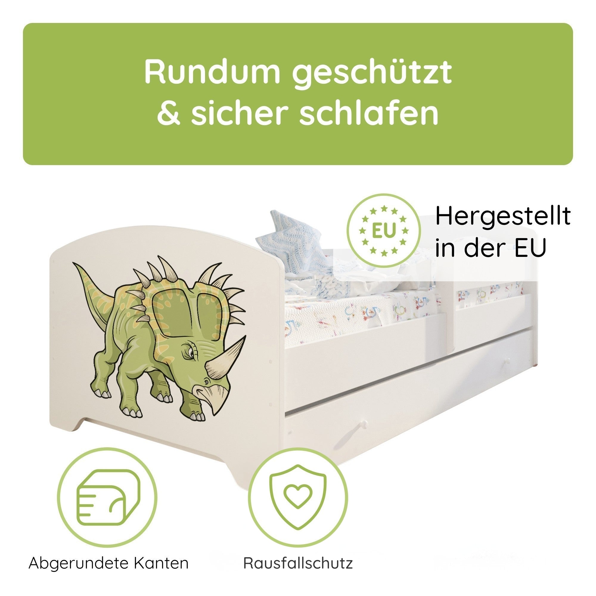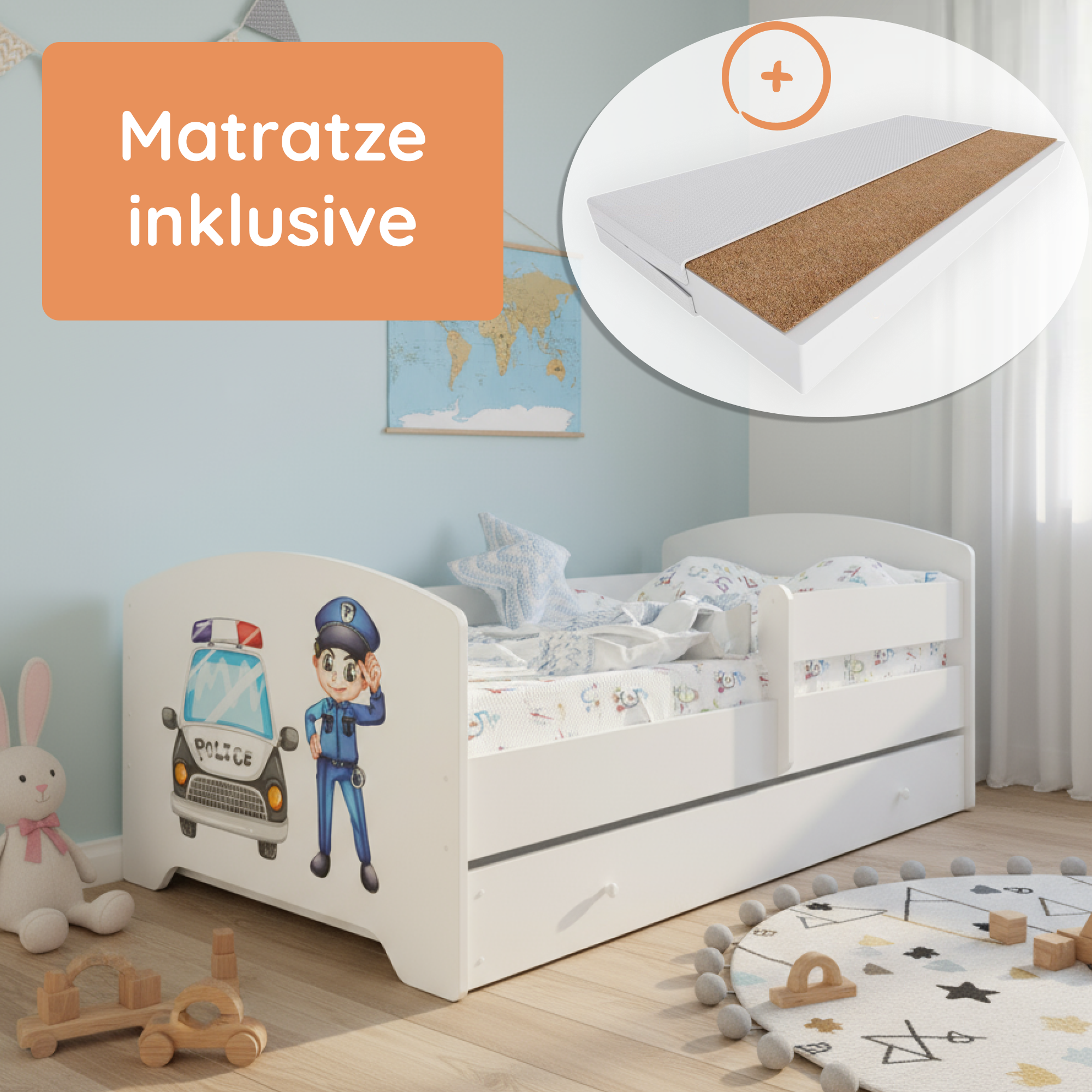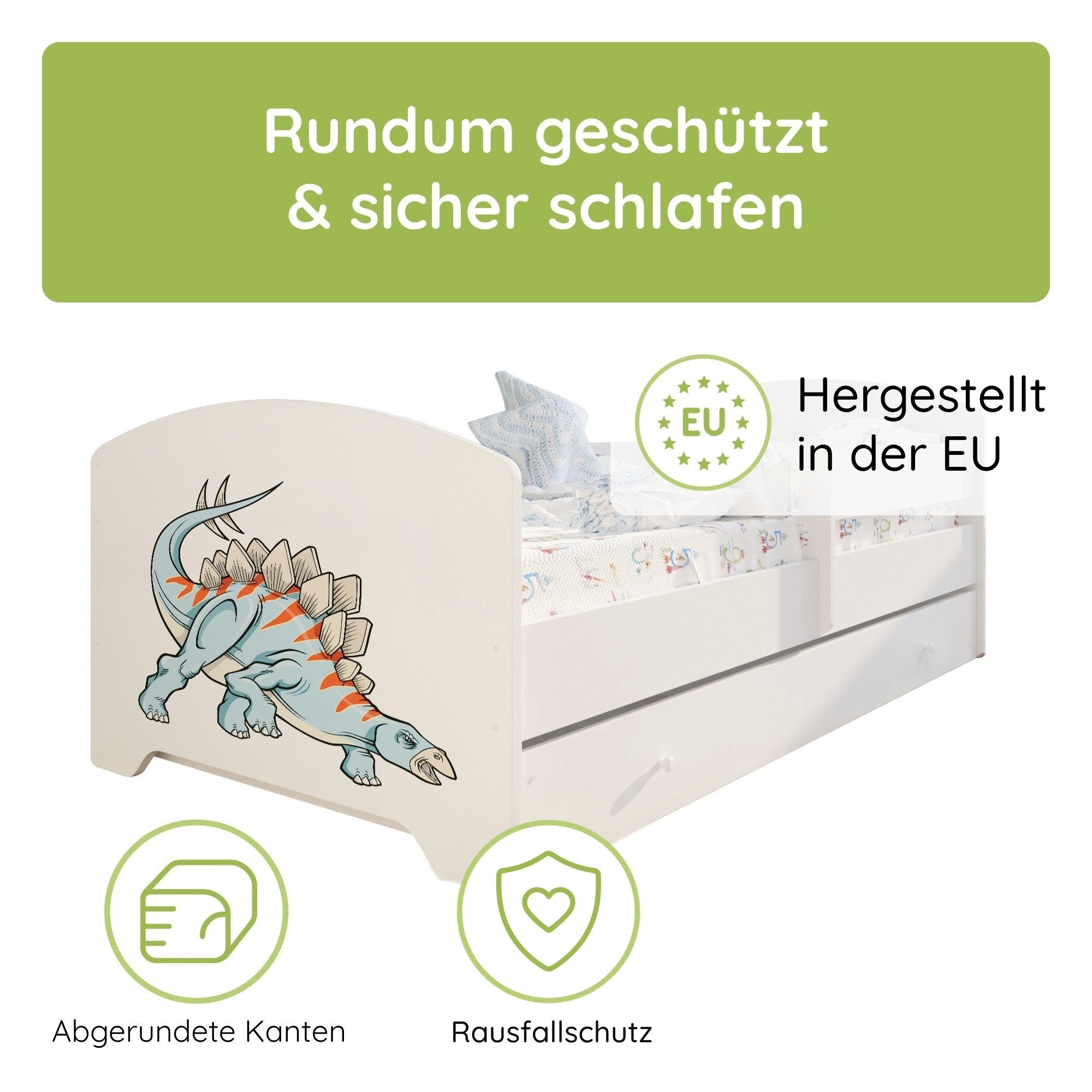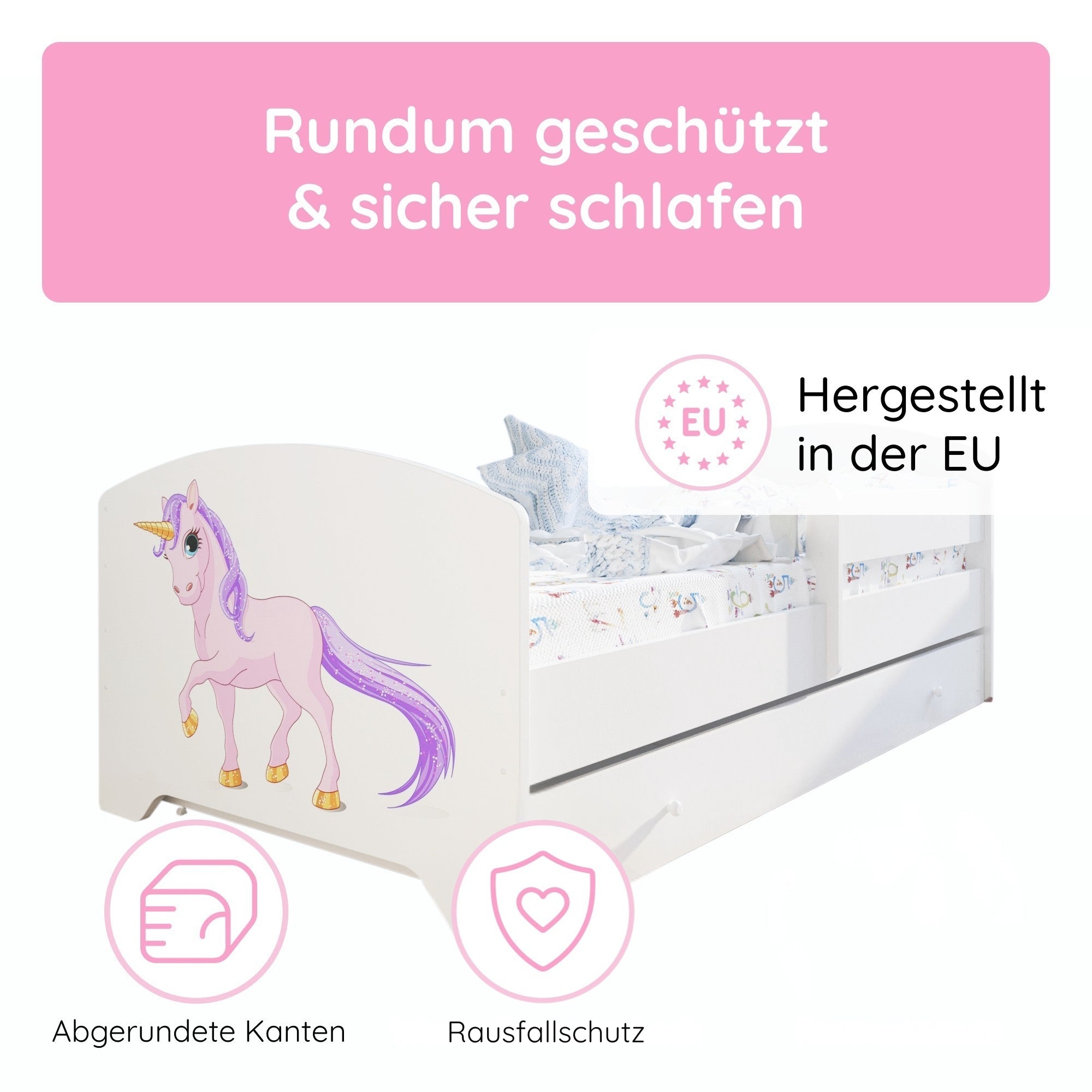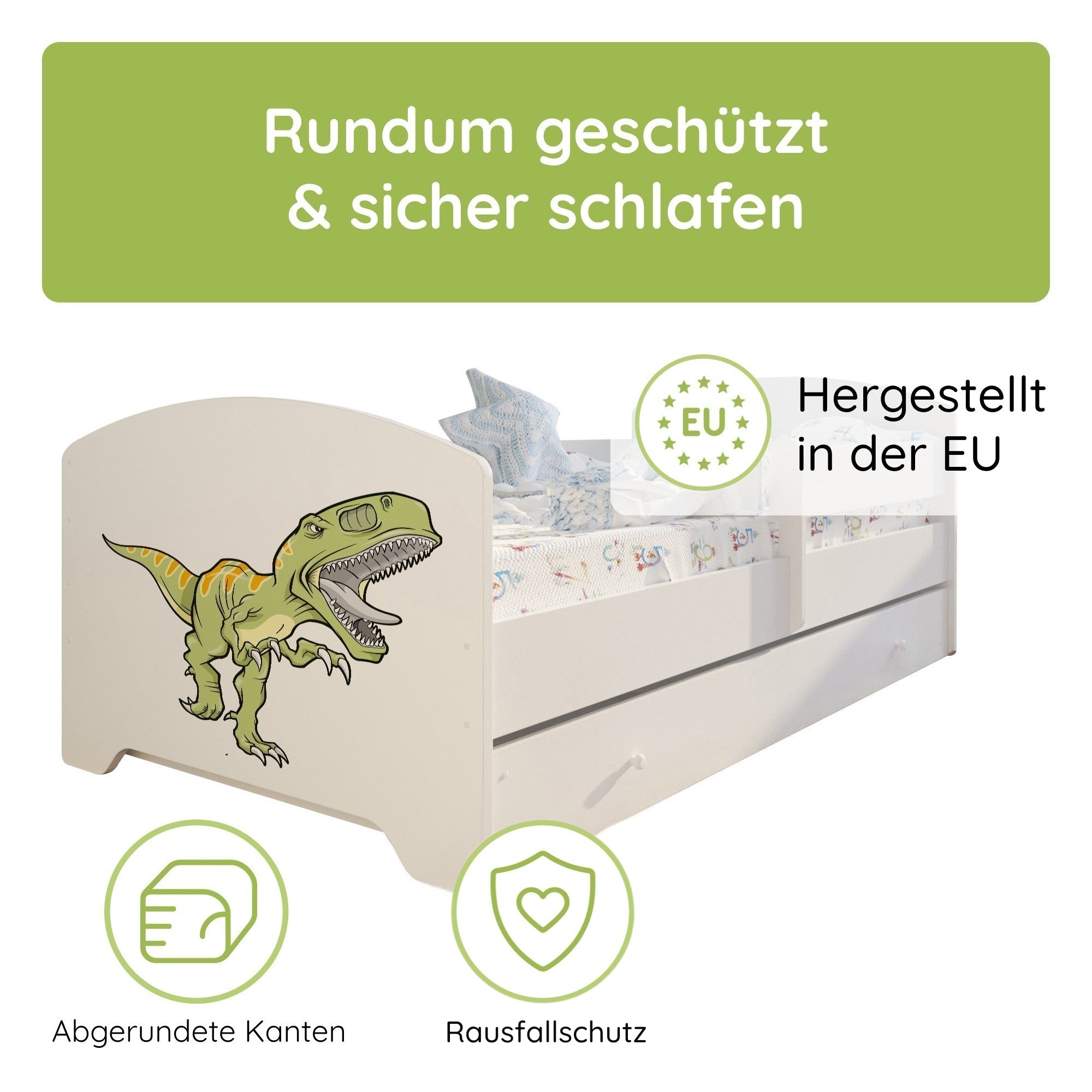 Komplett-Set | Matratze, Lattenrost & Schublade | Wählbares Motiv | 70–80 × 140–160 cm