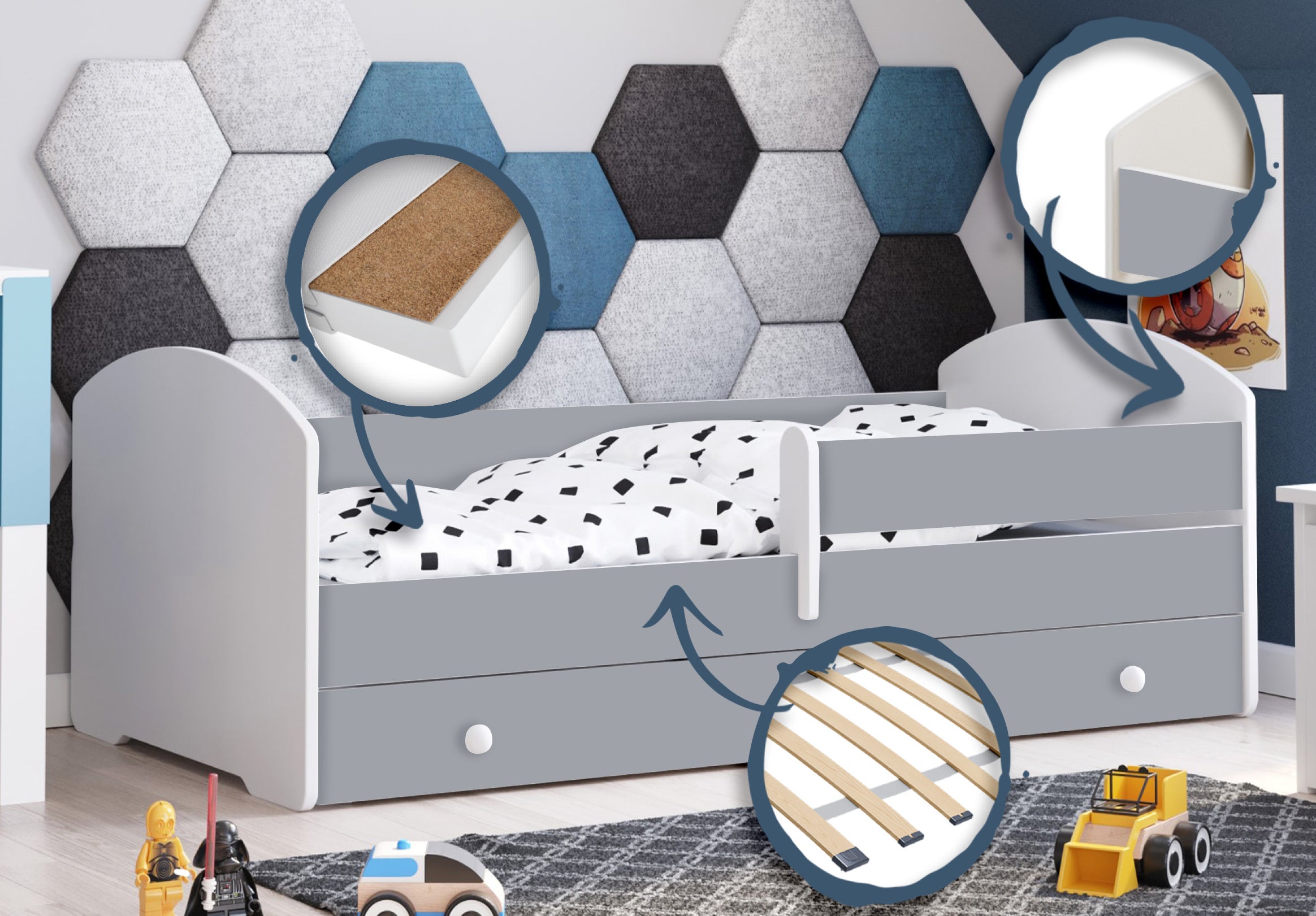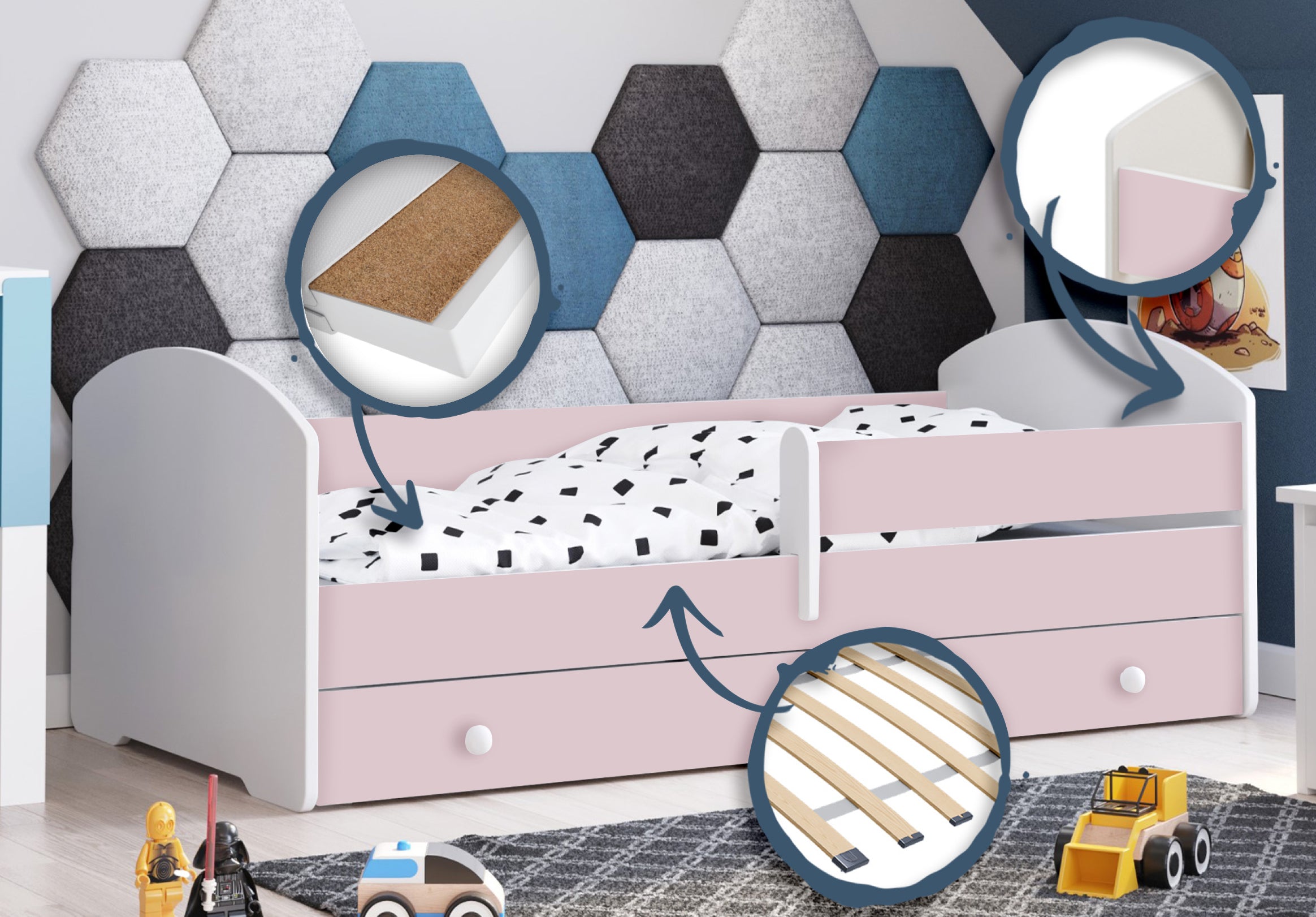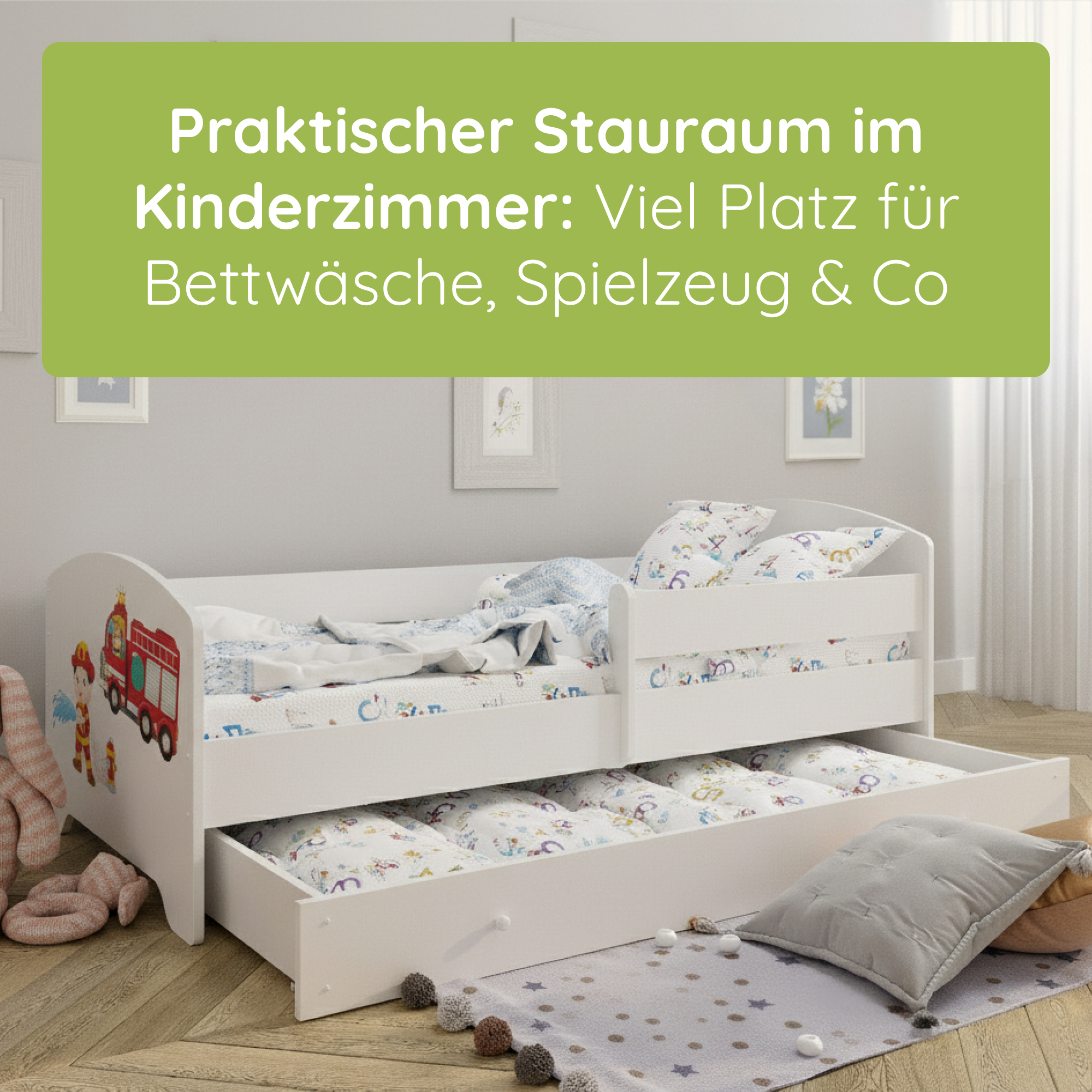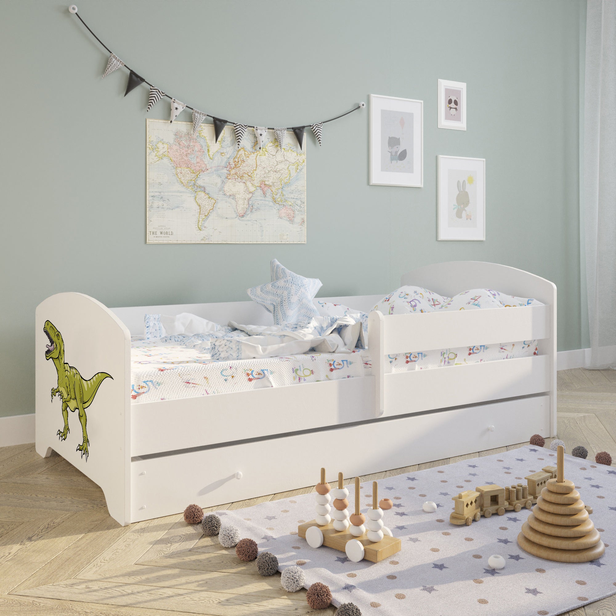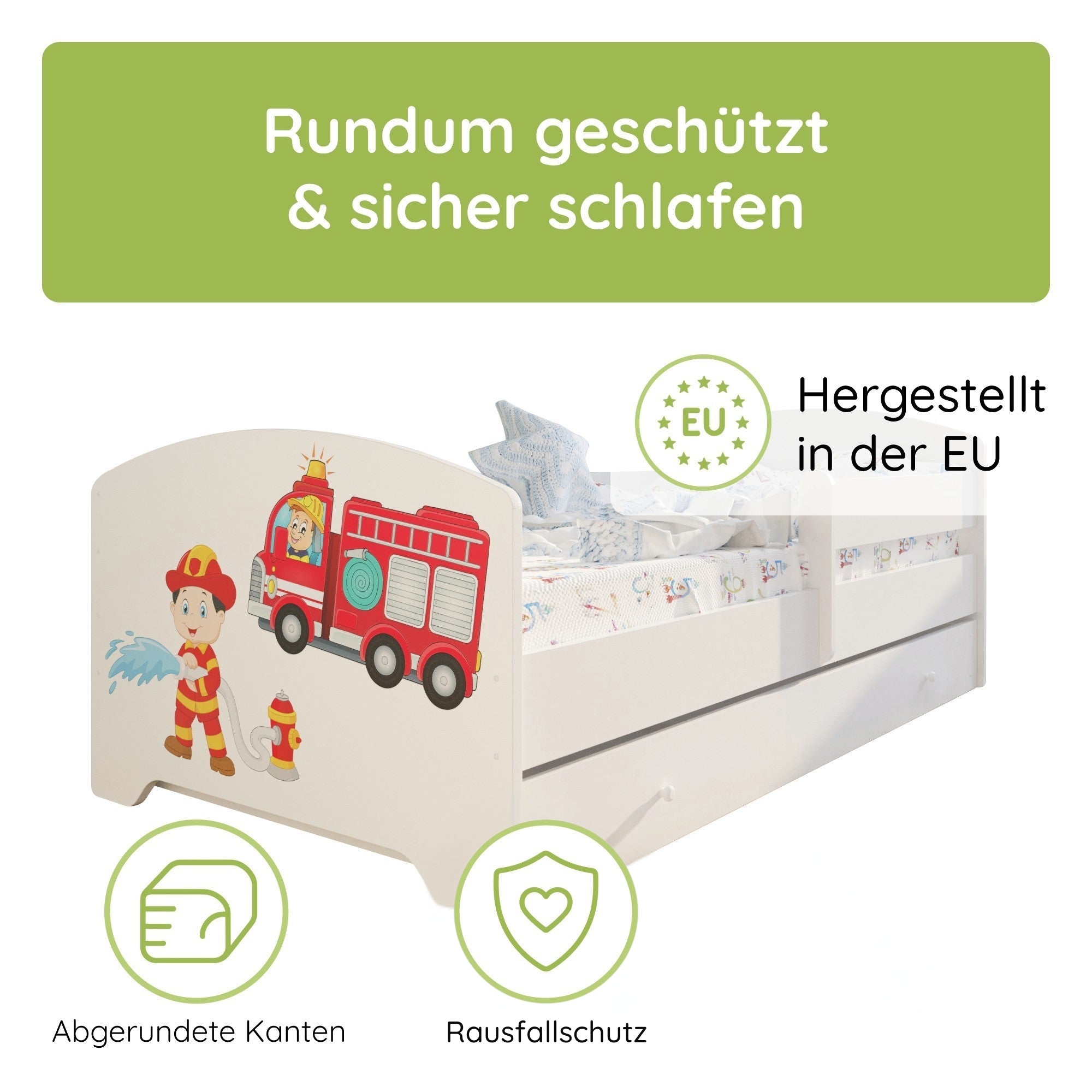 Komplett-Set | Matratze, Lattenrost & Schublade | Wählbares Motiv | 70–80 × 140–160 cm