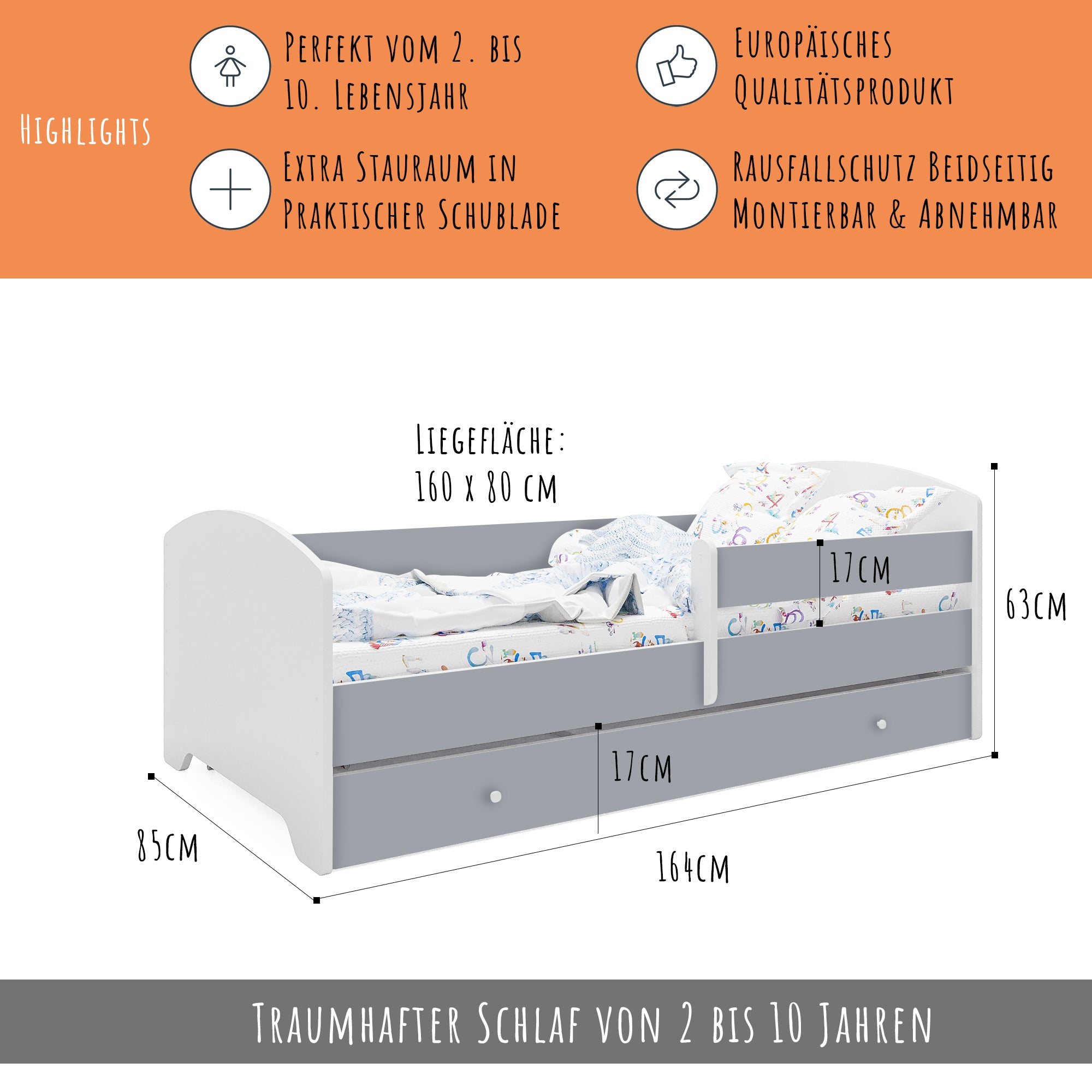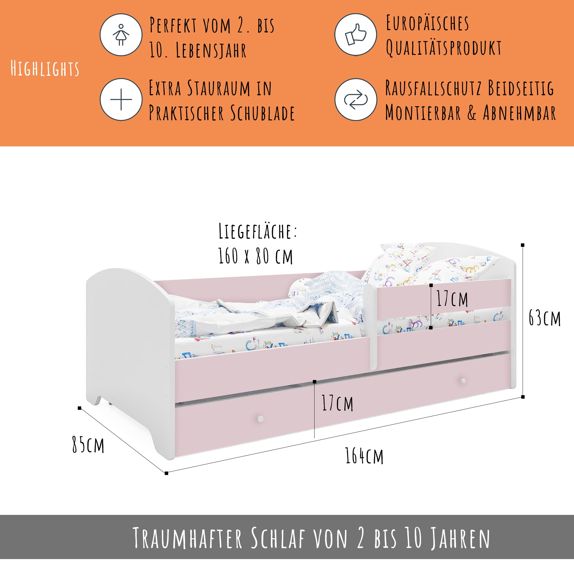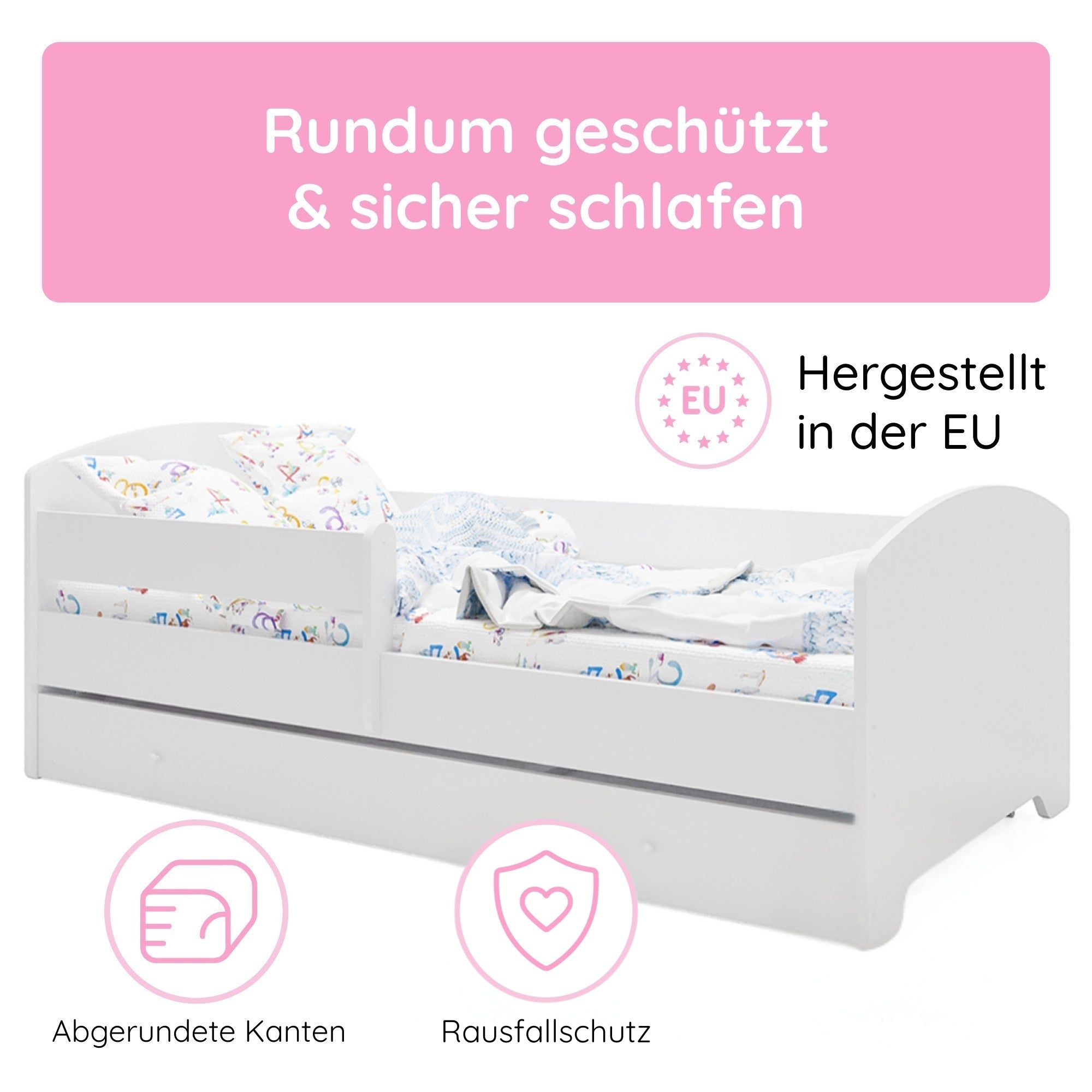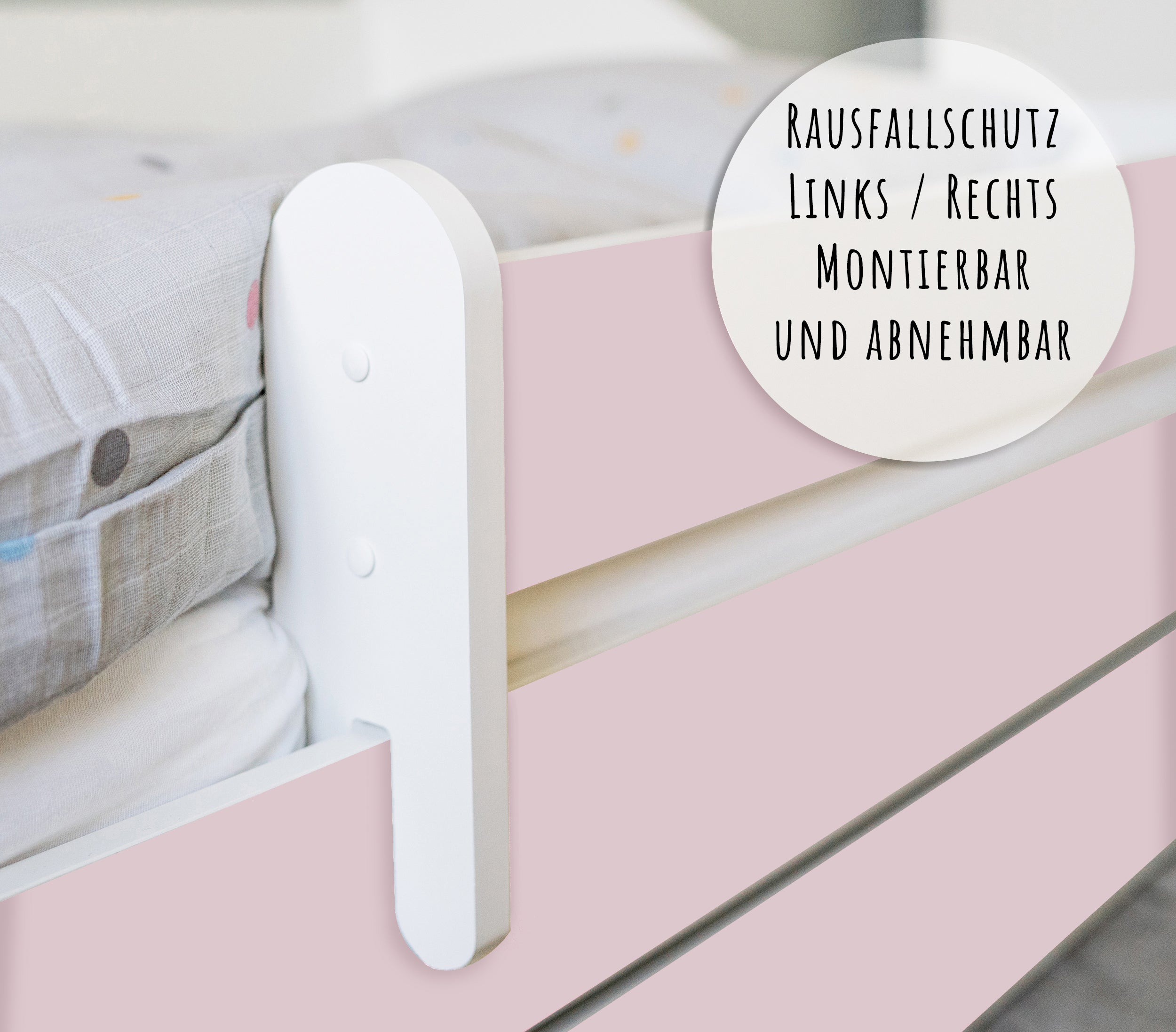 Dieses Bett ist stilvoll und vor allem sicher! Die Seitengitter geben mir ein beruhigendes Gefühl. Mein Kind liebt es.