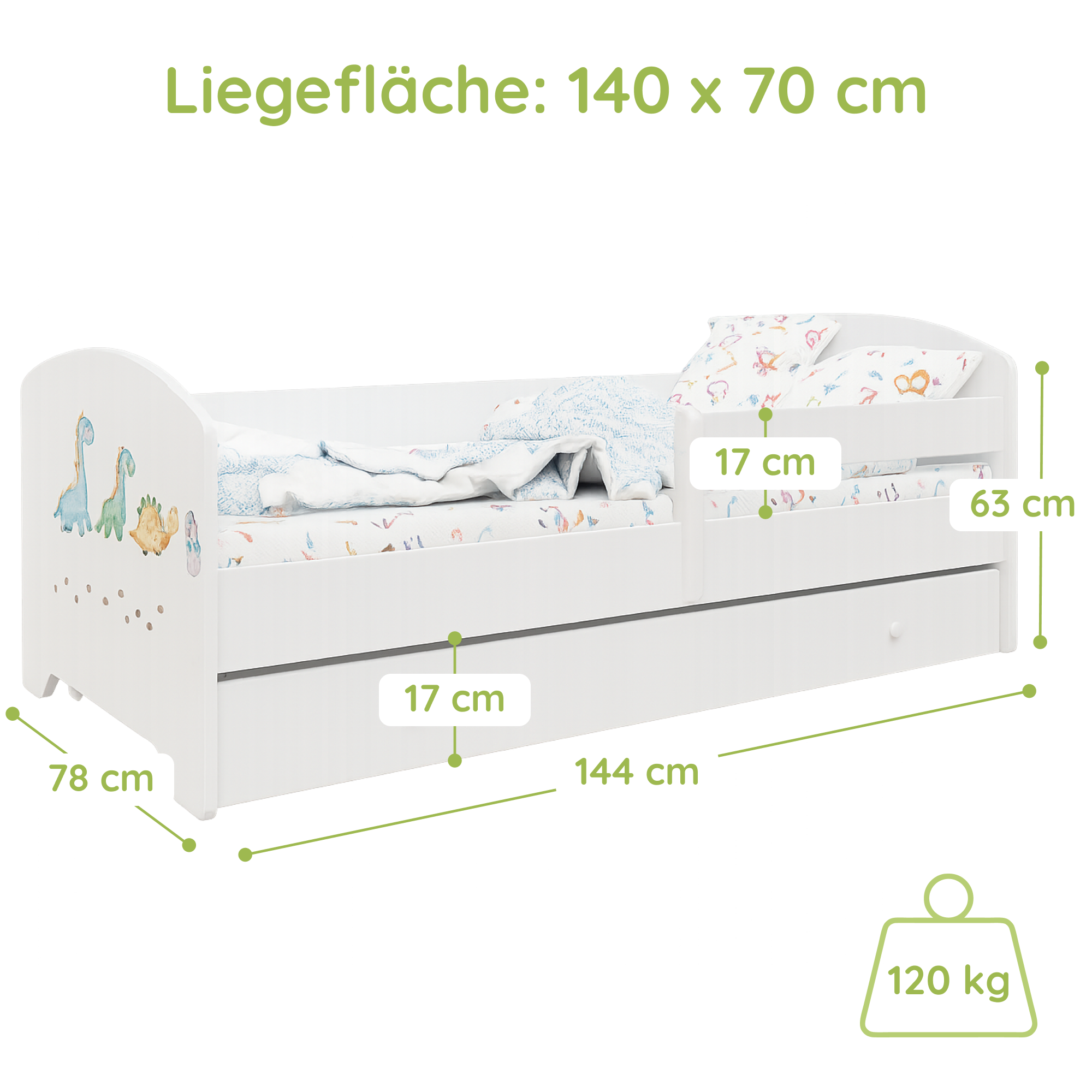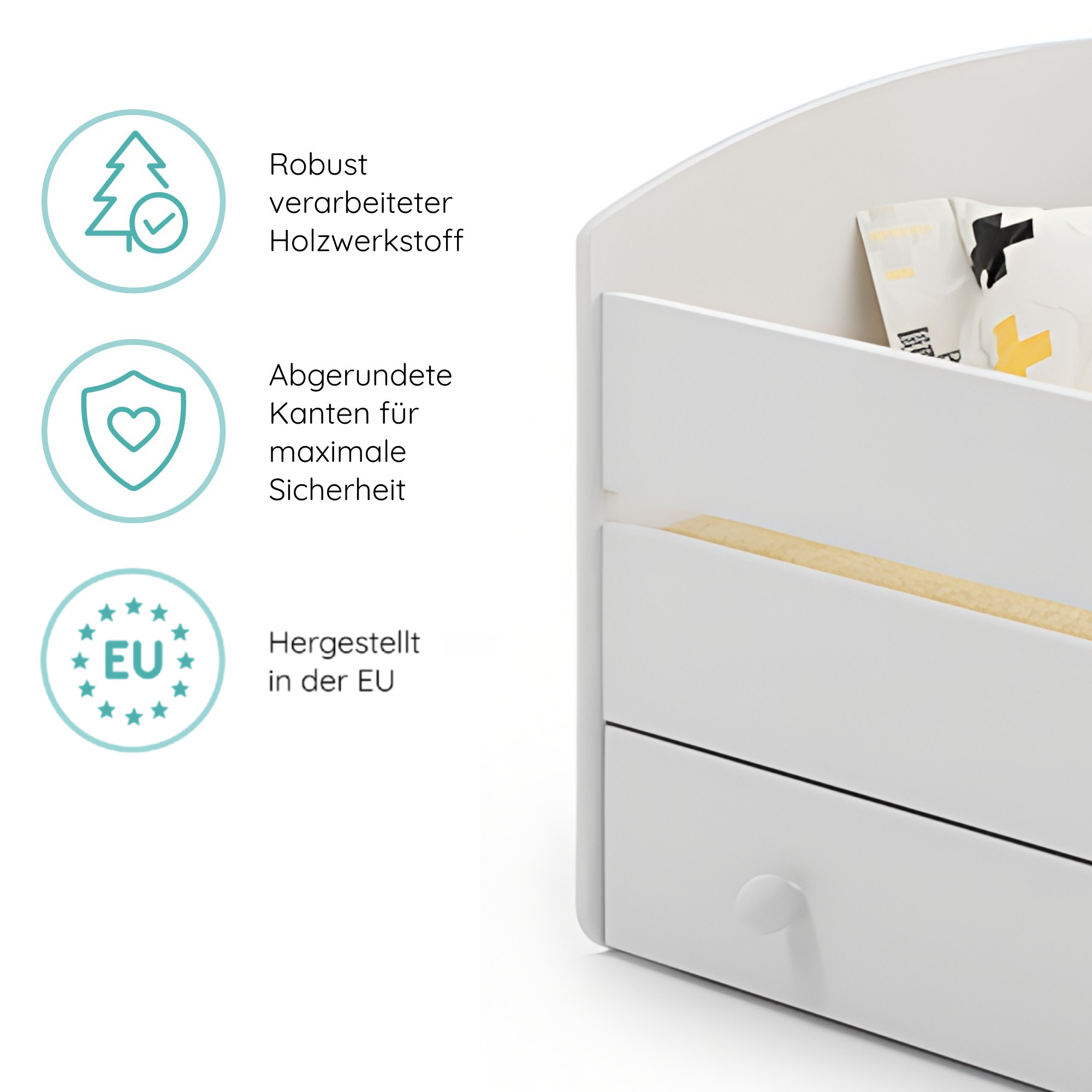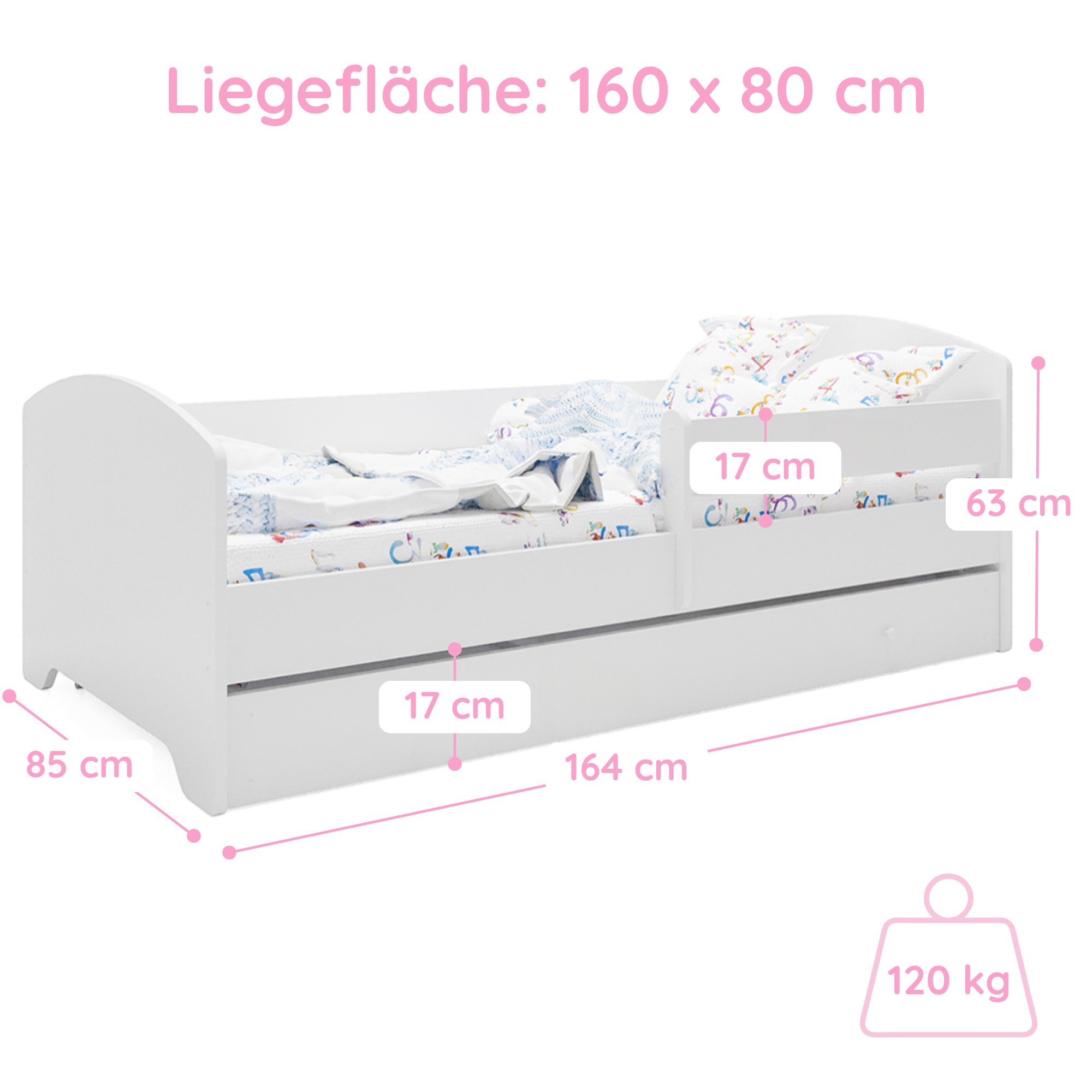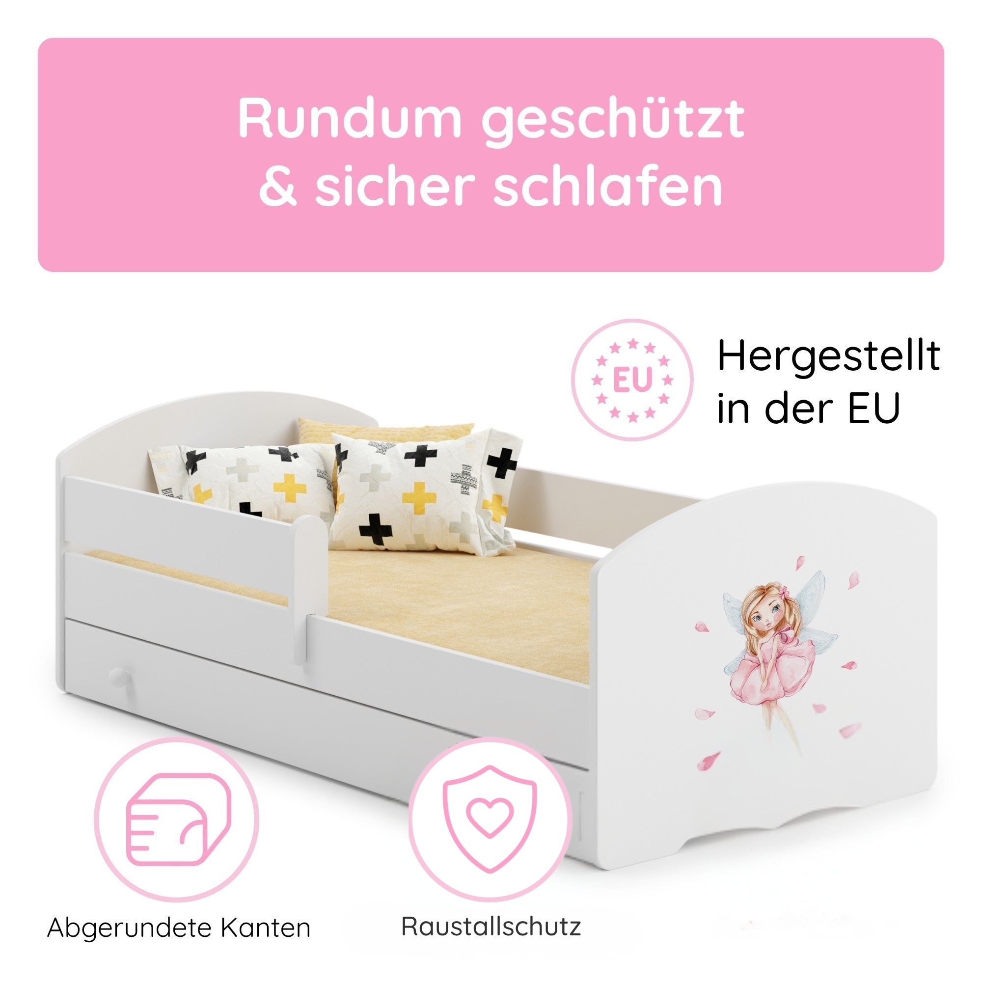 Dieses Bett ist stilvoll und vor allem sicher! Die Seitengitter geben mir ein beruhigendes Gefühl. Mein Kind liebt es.