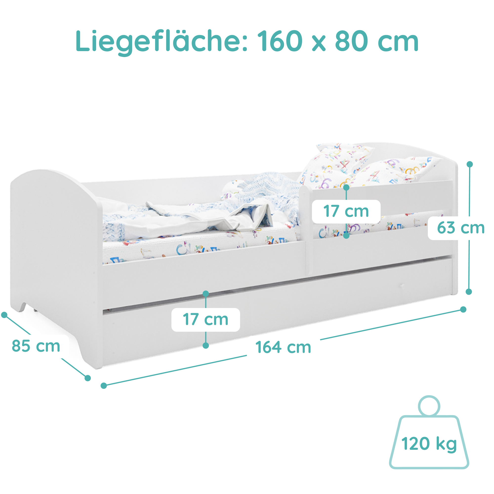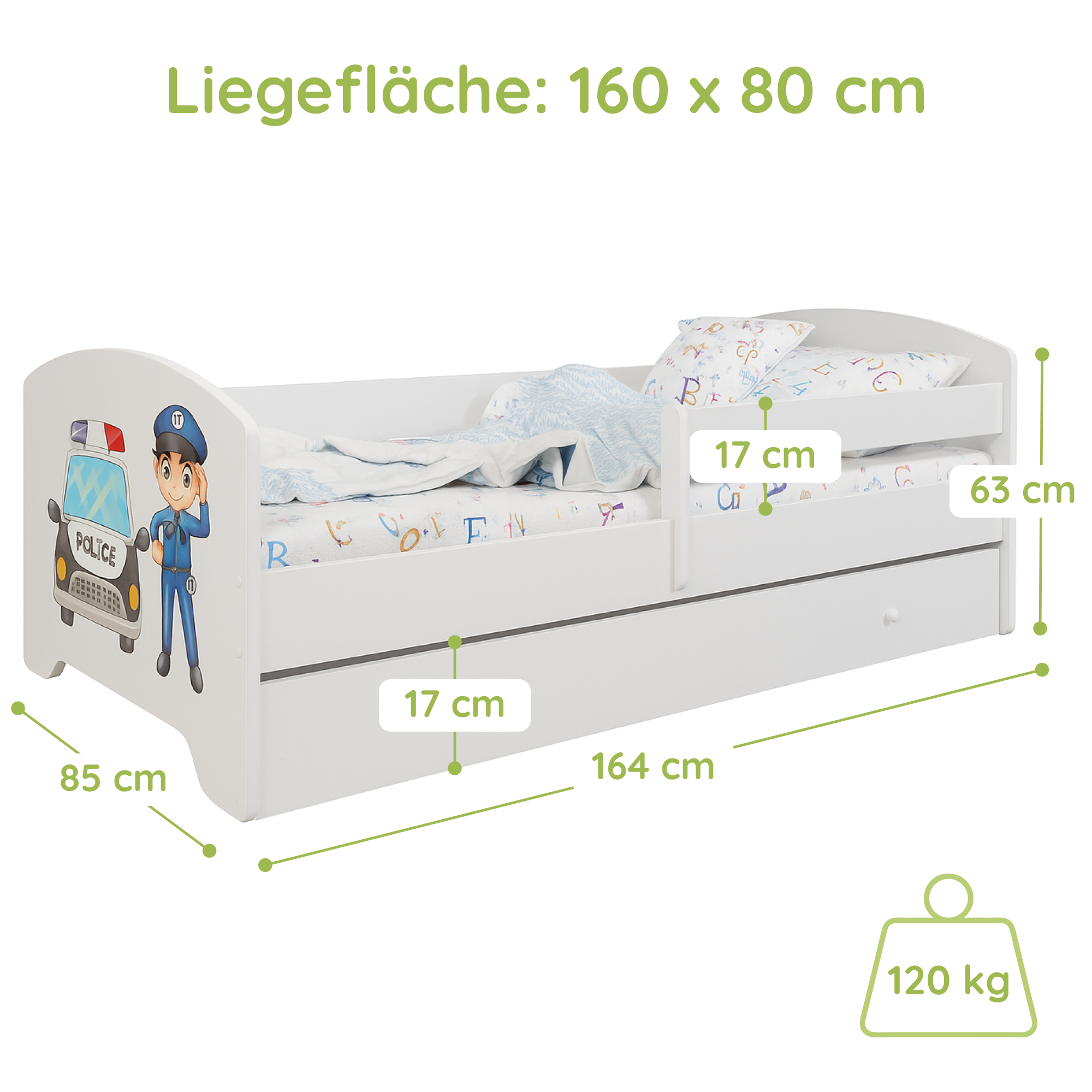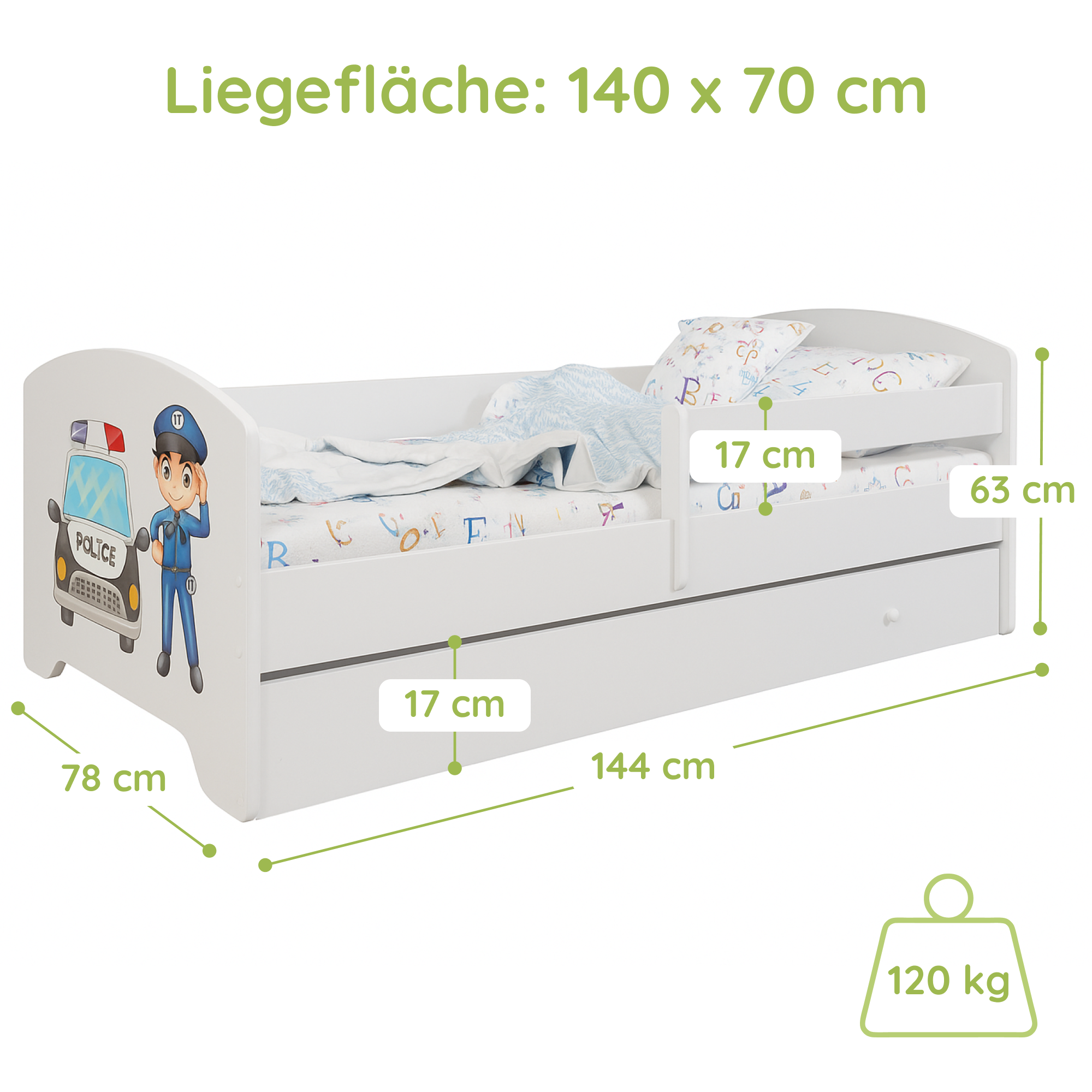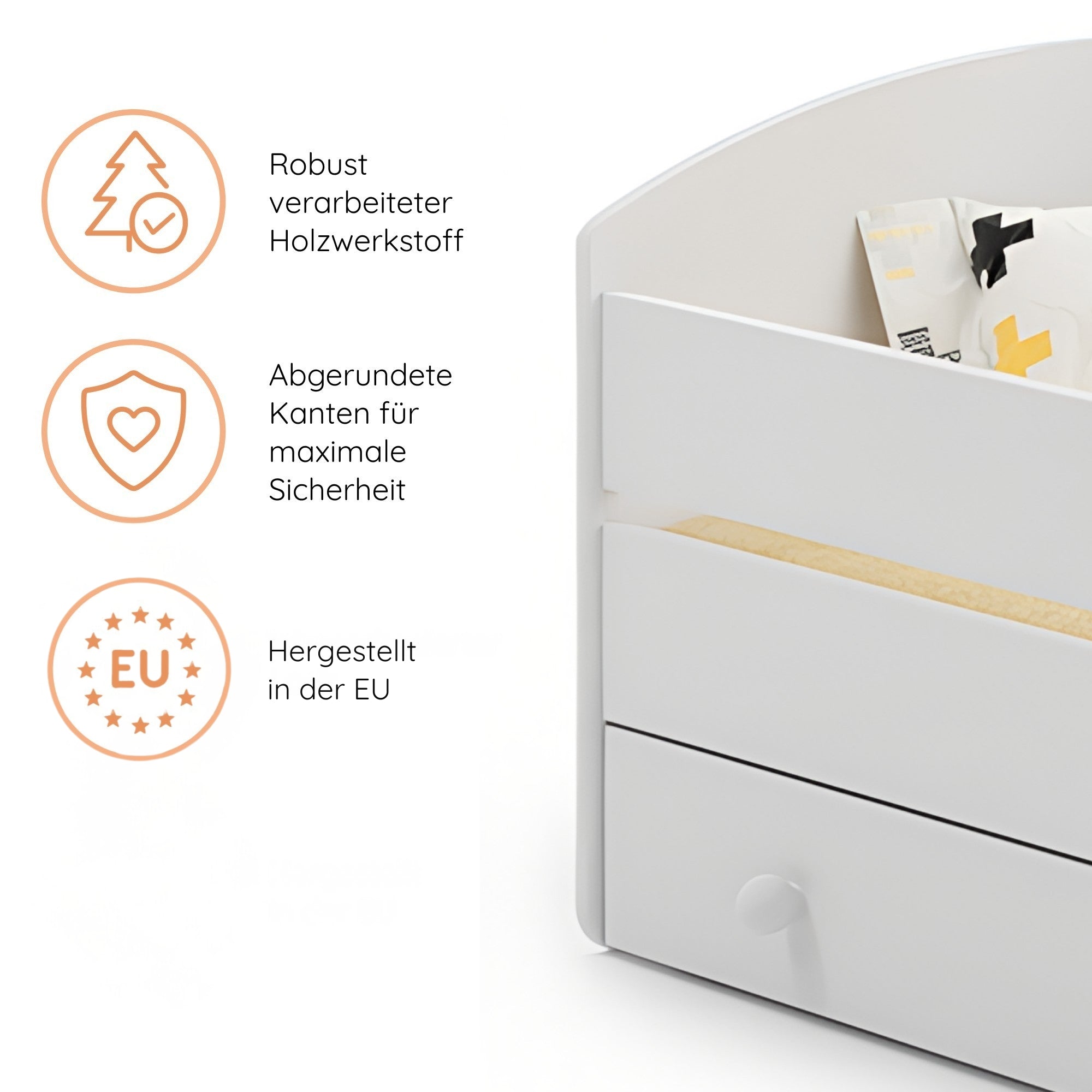 Dieses Bett ist stilvoll und vor allem sicher! Die Seitengitter geben mir ein beruhigendes Gefühl. Mein Kind liebt es.