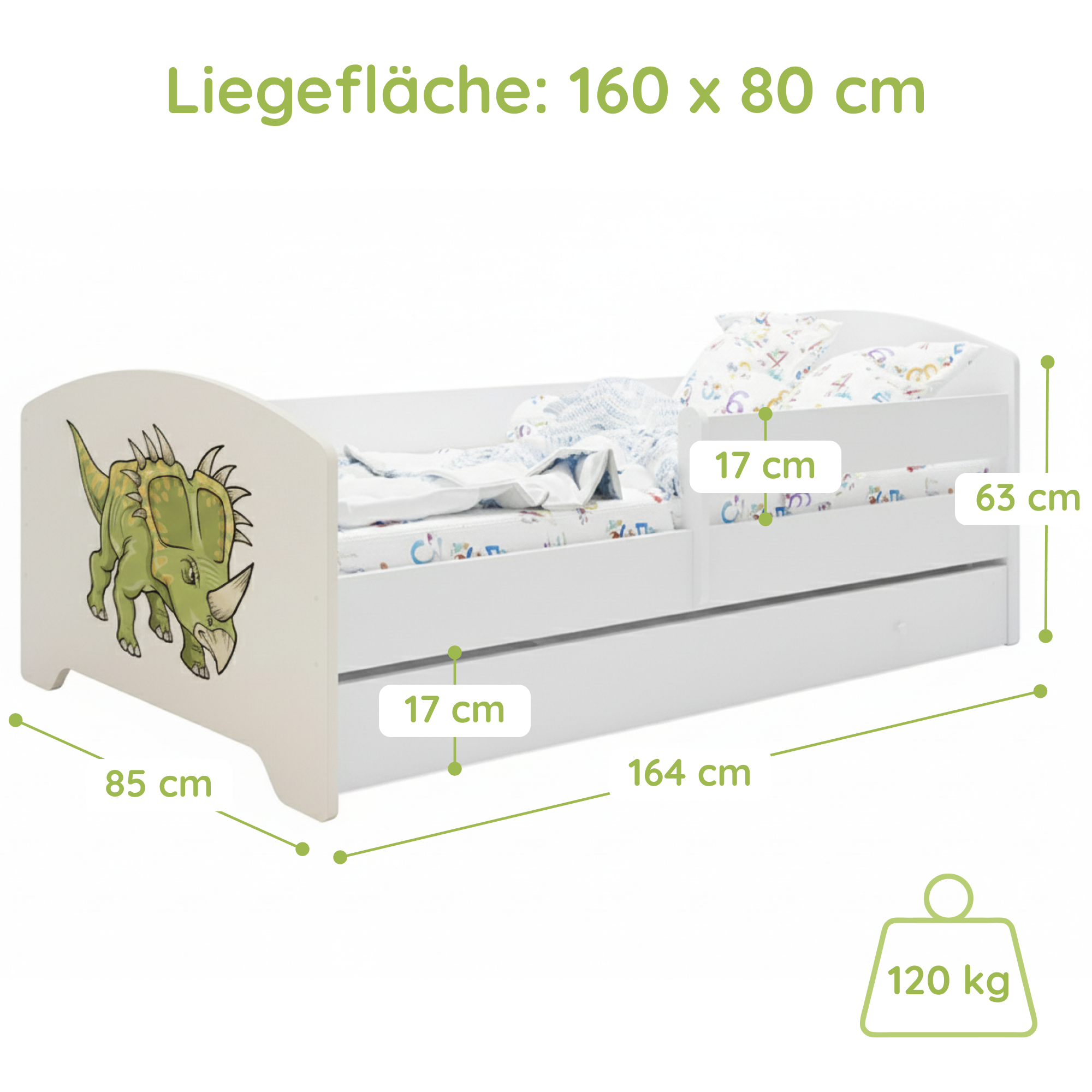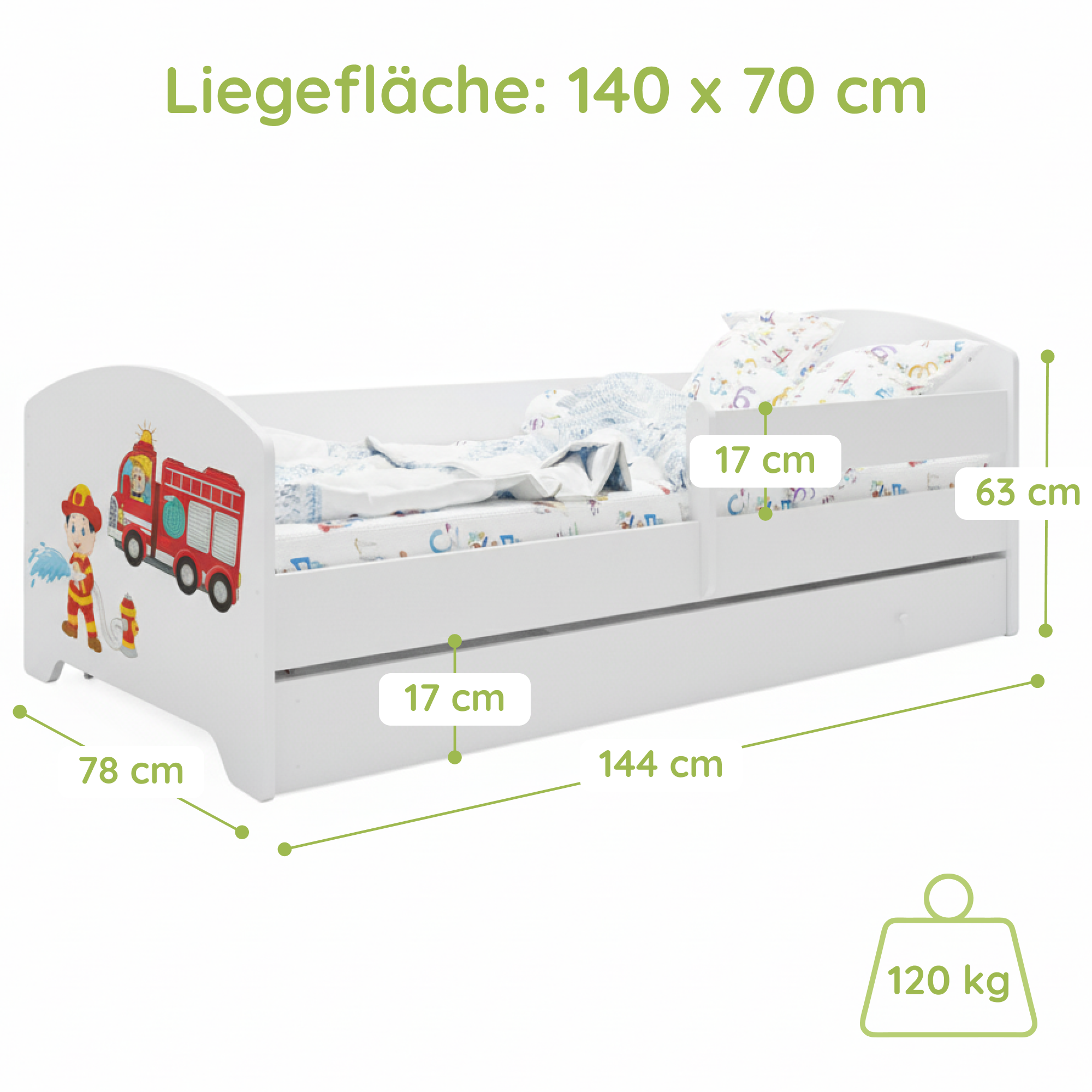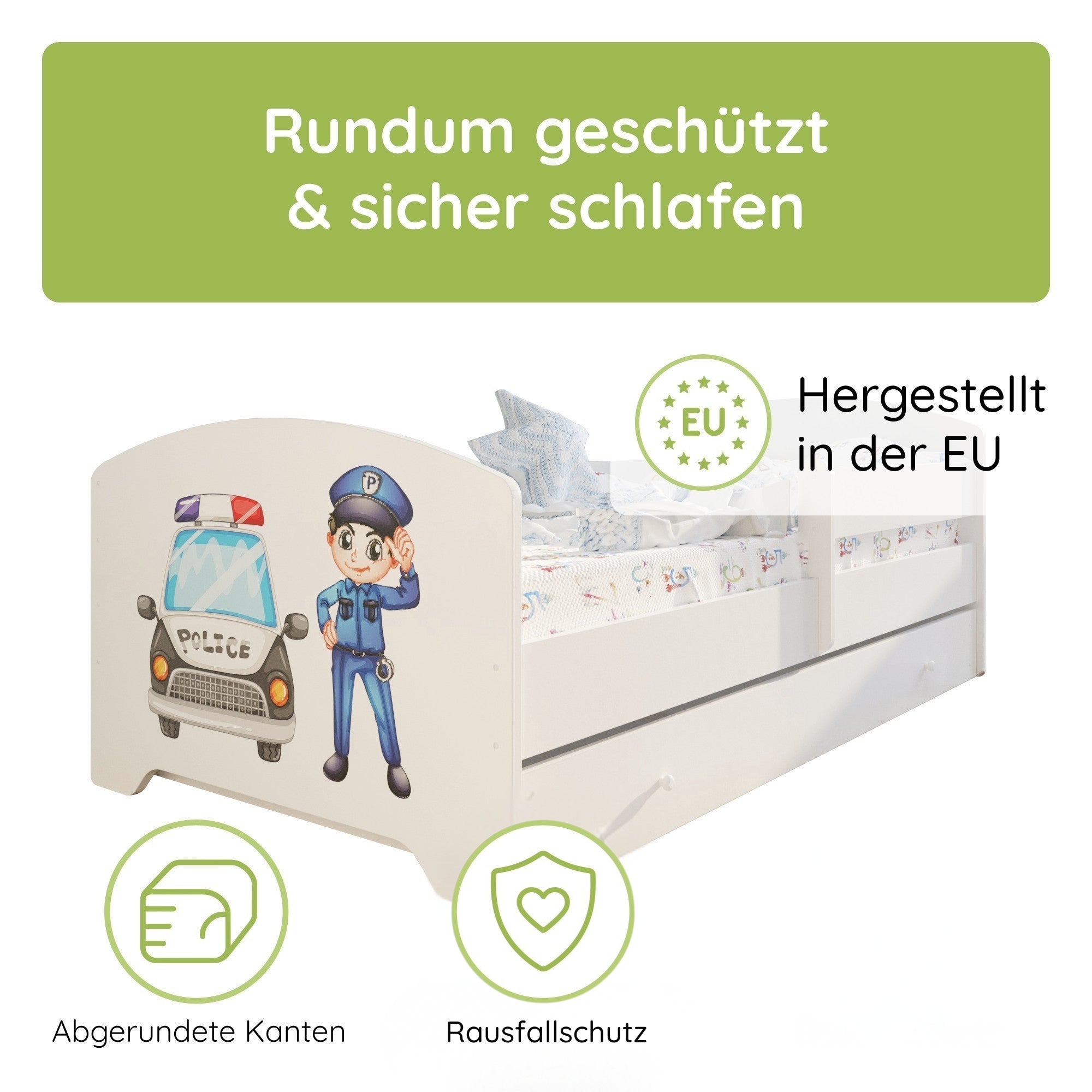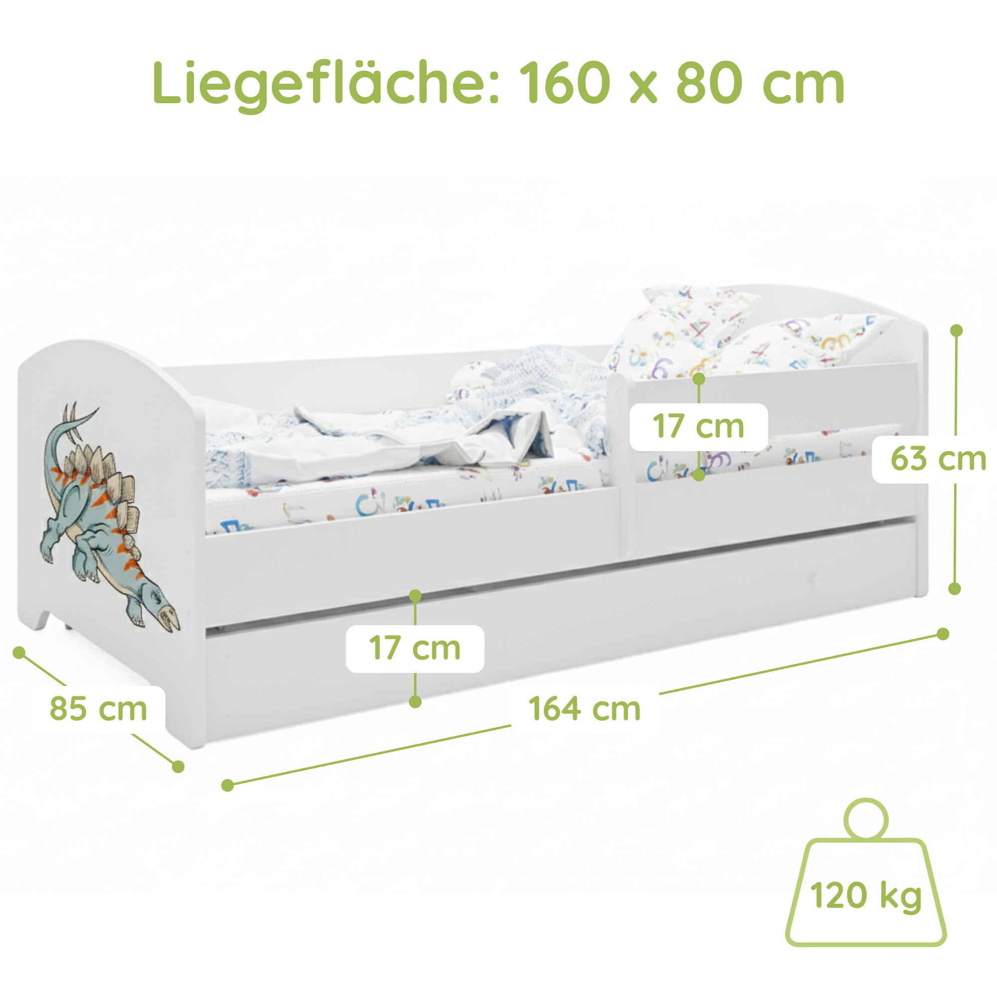 Dieses Bett ist stilvoll und vor allem sicher! Die Seitengitter geben mir ein beruhigendes Gefühl. Mein Kind liebt es.