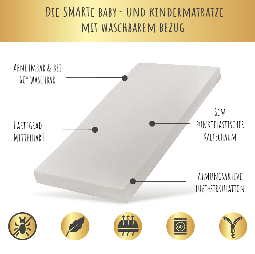 Diese Matratze mit abnehmbarem Bezug ist ein echter Lebensretter für Eltern! Kleine Malheure passieren einfach, aber der Bezug lässt sich einfach waschen. Super bequem ist die Matratze auch noch!