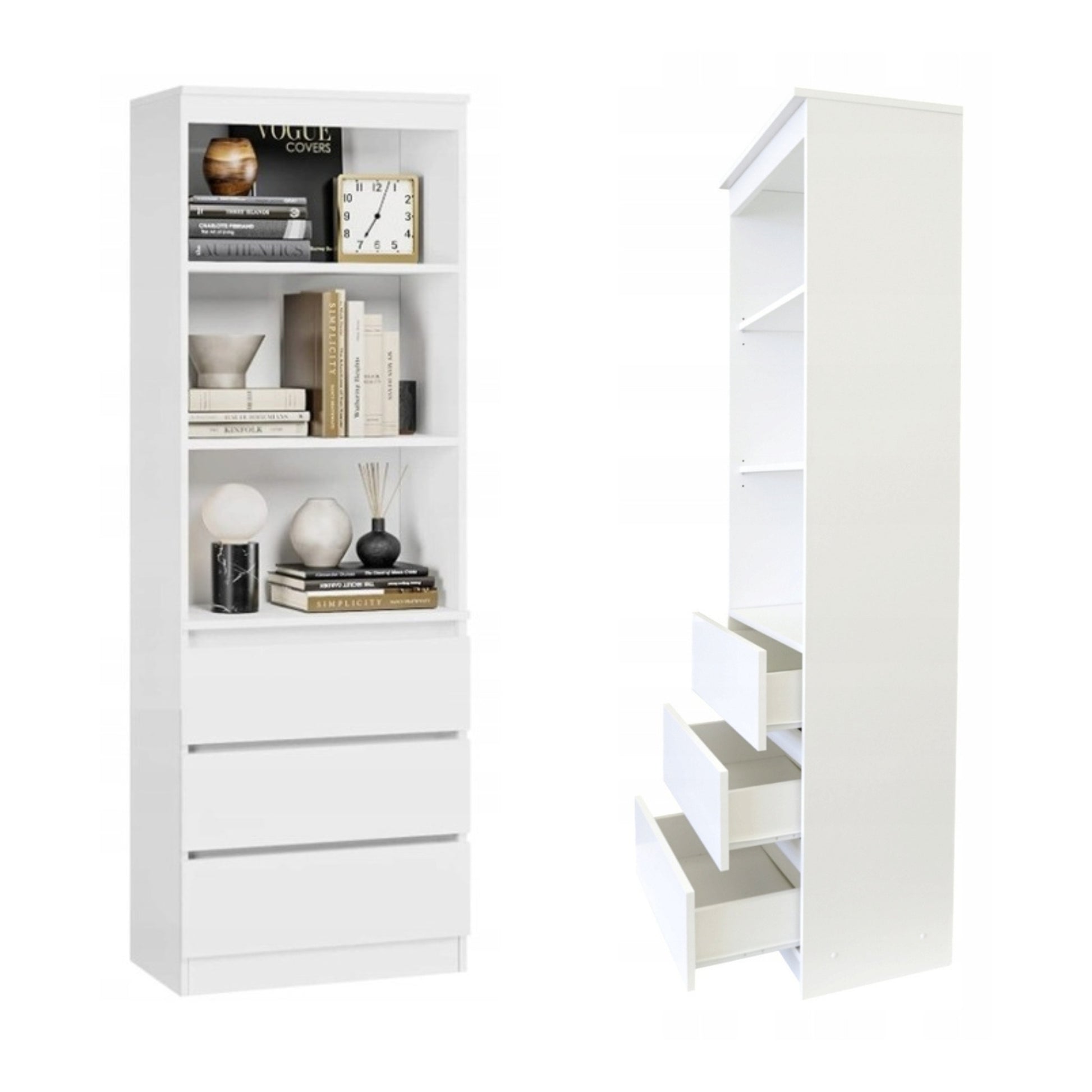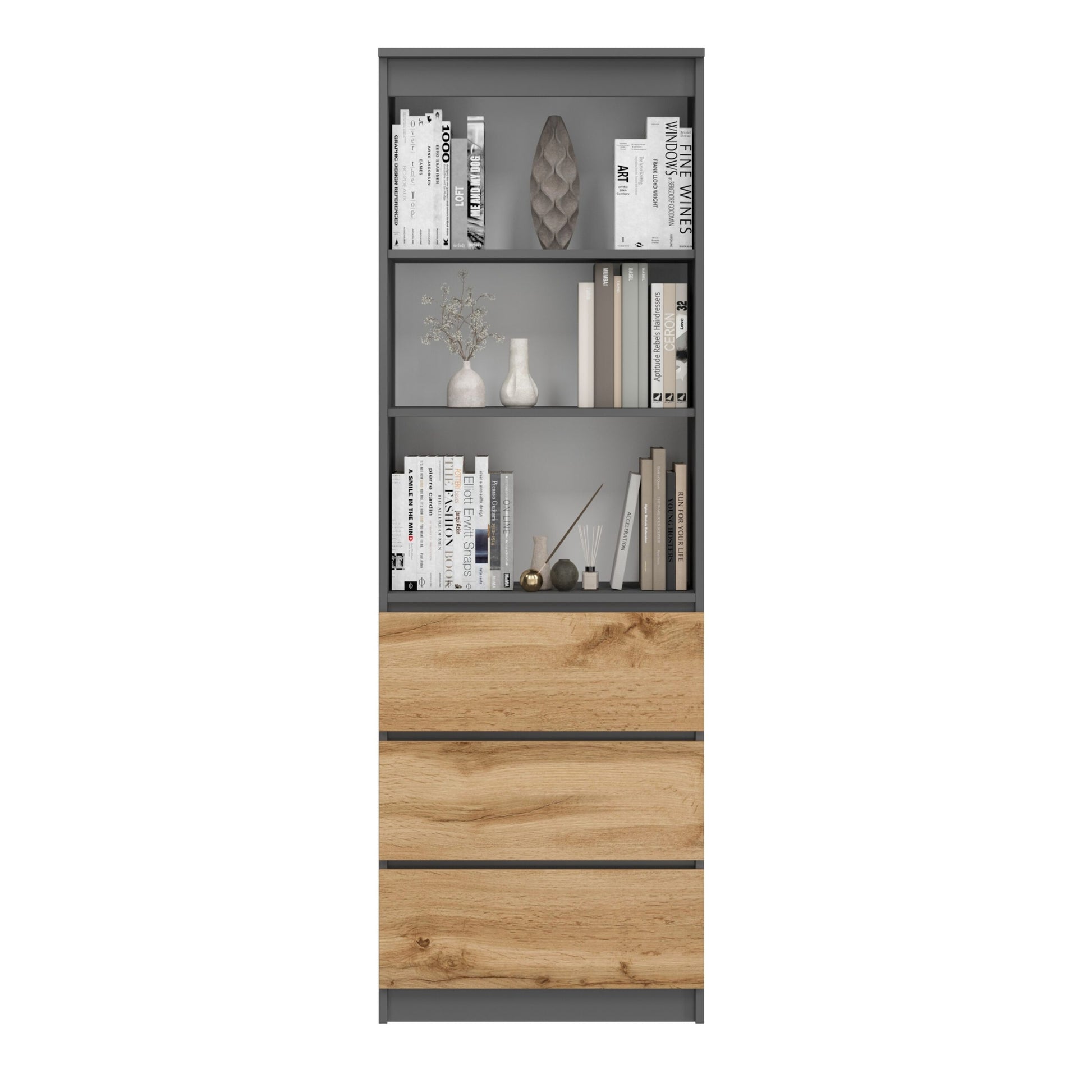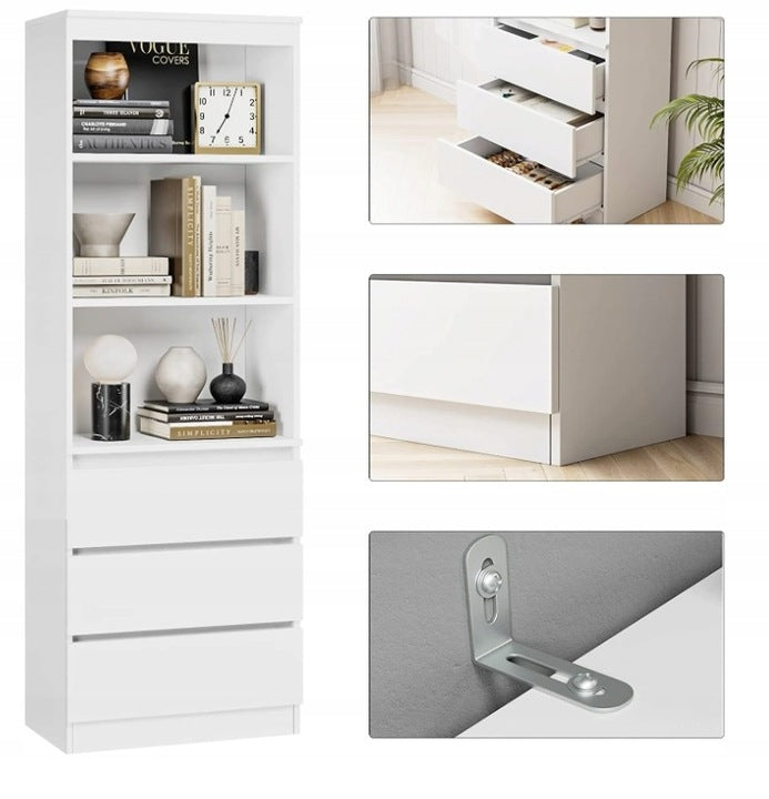 Aktenregal Standregal mit 3 Schubladen und 3 offenen Fächern 60 cm, hoher Schubladenschrank aus MDF Holz | 60x35x180 cm (BxTxH)