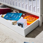 Kleines Manko, die Schublade ist nicht befestigt, sehr schwer sie unter das Bett zu schieben, ohne an den Füßen des Bettes zu stoßen.