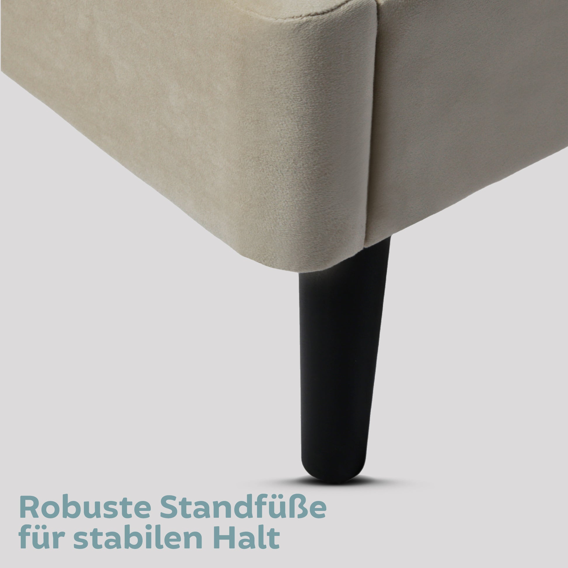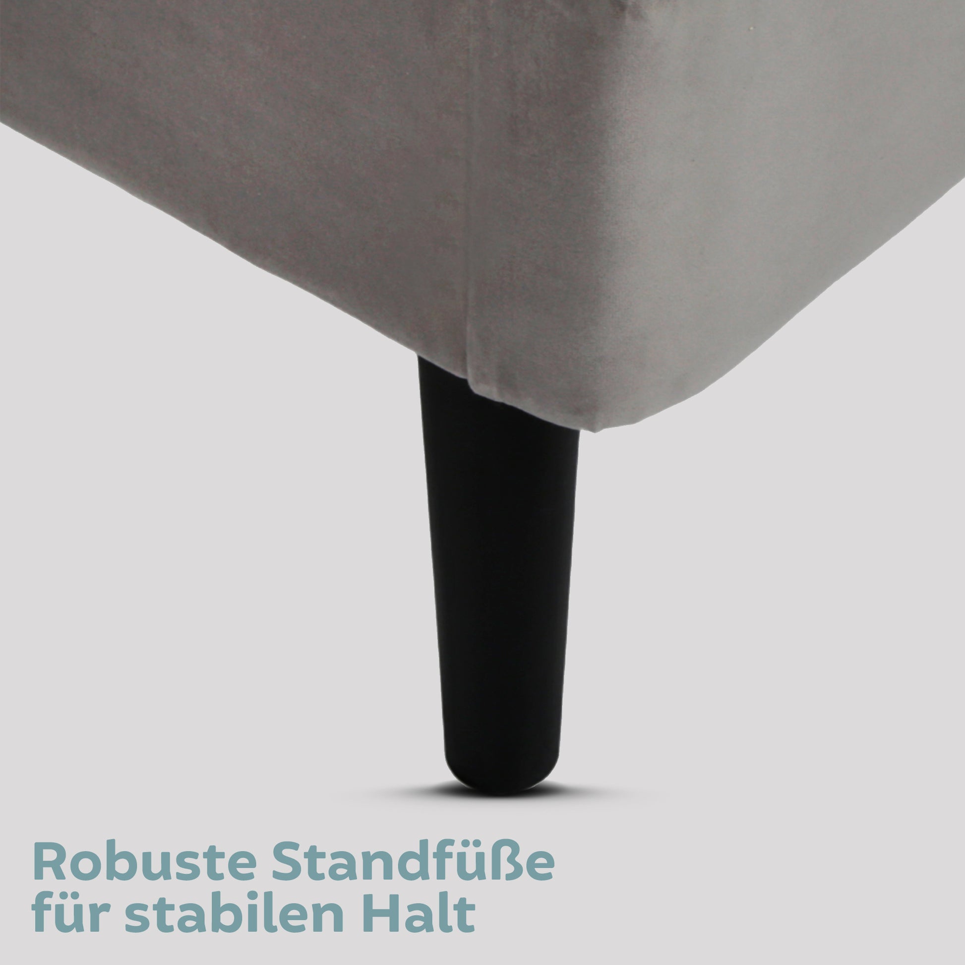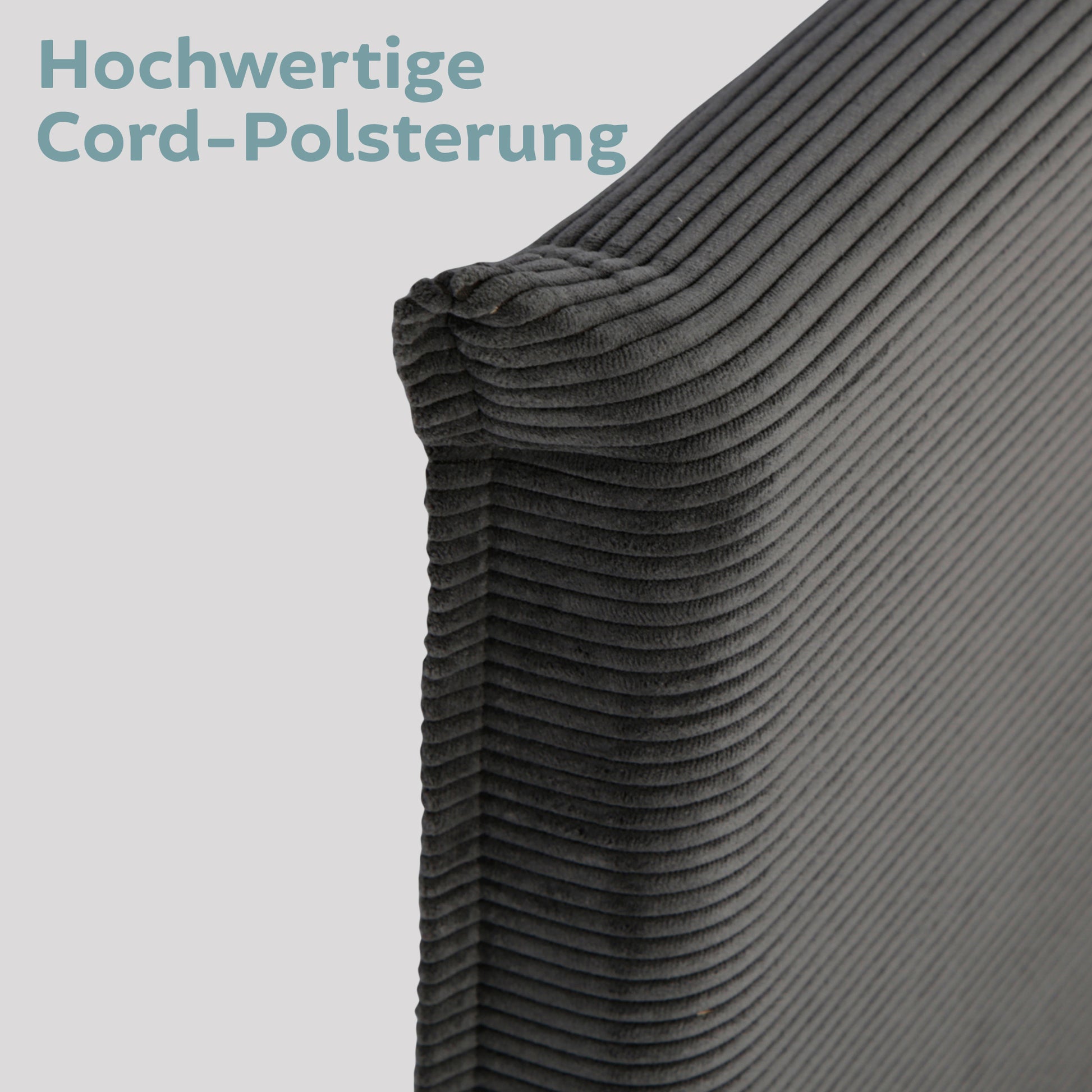 Der strukturierte Cordbezug verleiht dem Bett eine trendige, moderne Ausstrahlung, während der weiche Samtbezug mit seinem dezenten Glanz für eine luxuriöse Note sorgt.