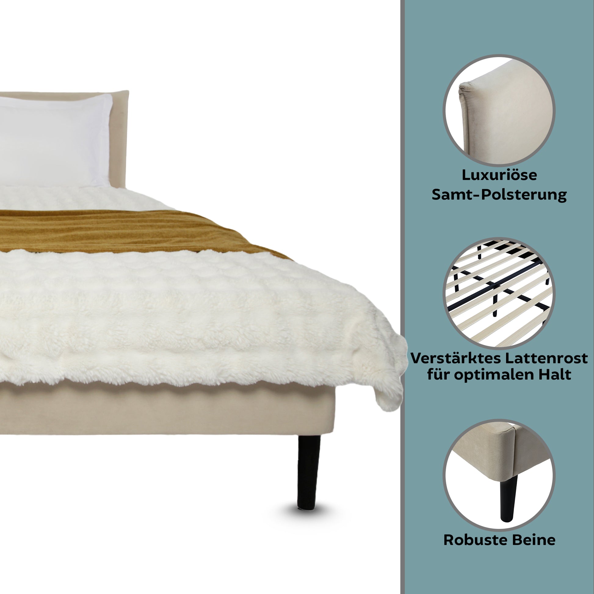 Bett 140x200 und 160x200 cm, Polsterbett mit Lattenrost, Bettgestell 140x200 & 160x200 cm, Doppelbett mit weichem Cord & Samt bezug und gepolstertem Kopfteil, robustes Gestell, hoher Liegekomfort