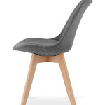 STILVOLLES KOMFORTERLEBNIS: Modernes Design, gepolsterter Stoffsitz und Buchenholzbeine verbinden Eleganz und Bequemlichkeit.