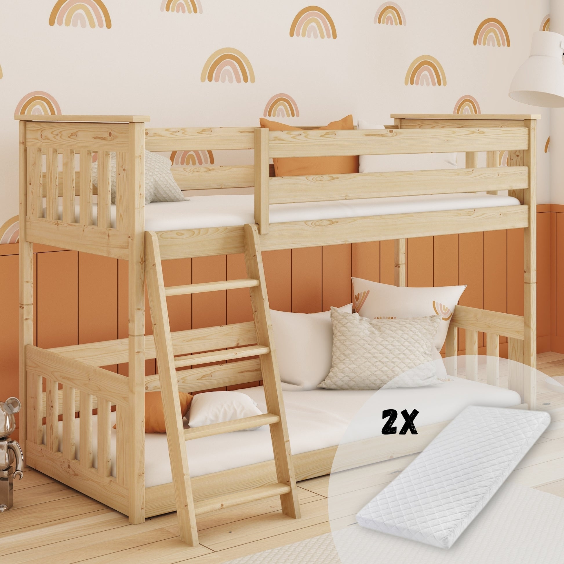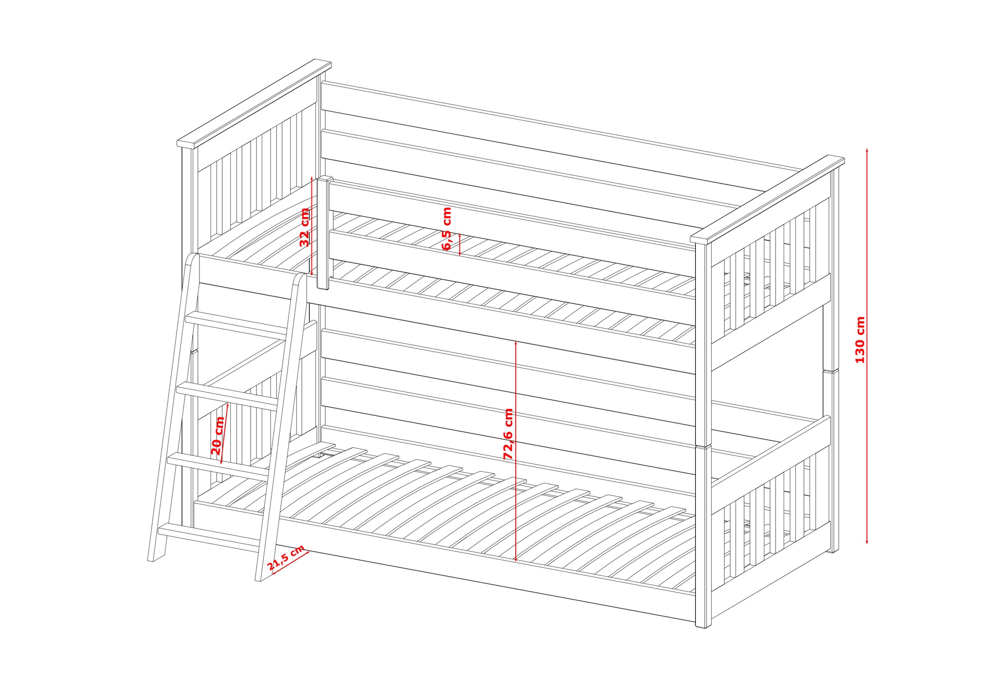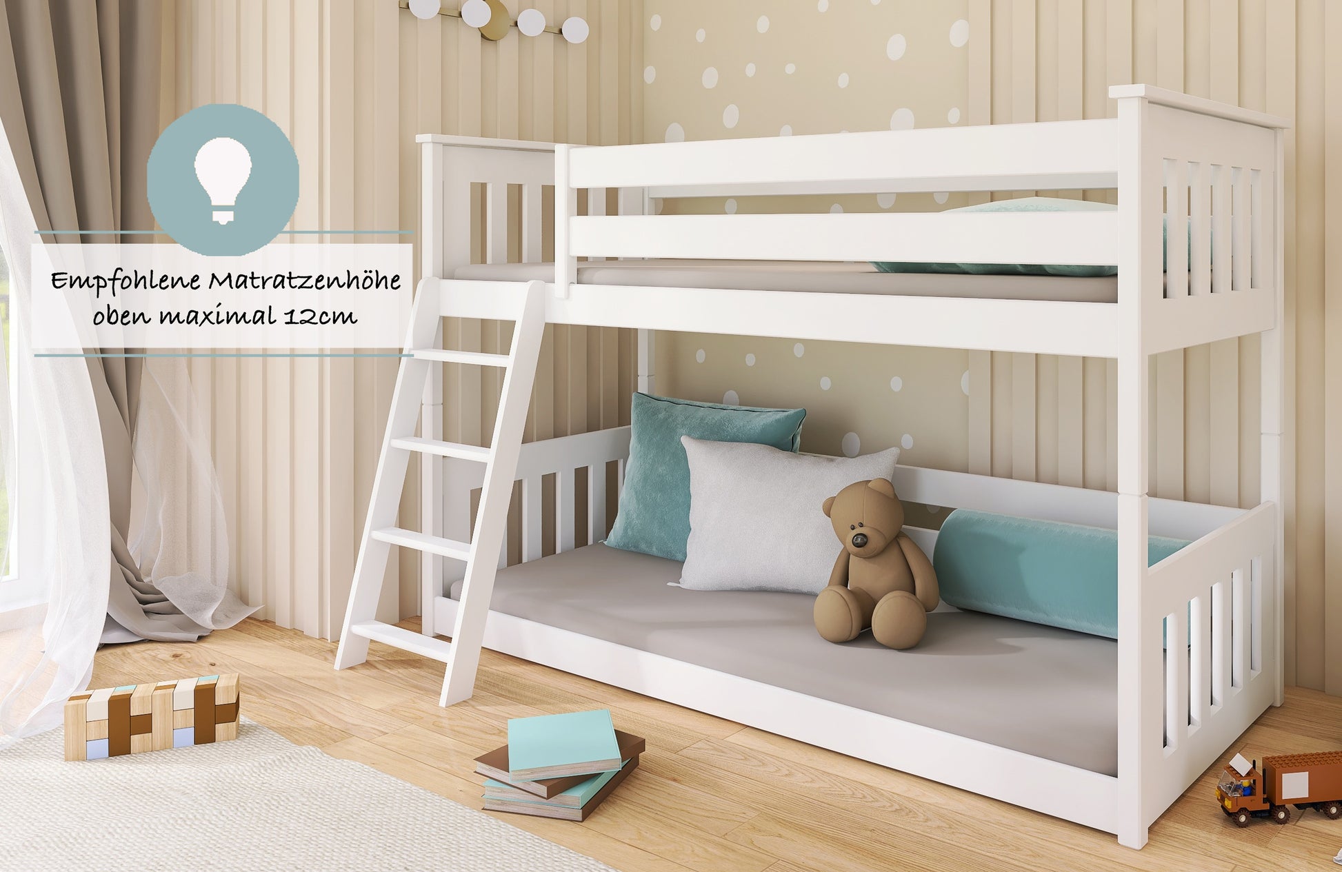 Hergestellt aus massivem Kiefernholz, ist das Etagenbett nicht nur zuverlässig und stabil, sondern strahlt auch mit seinem klassischen Rahmen ein Gefühl von zeitloser Eleganz aus. Dieses Bett ist so konzipiert, dass es mehr als nur das Auge erfreut und bietet eine komfortable und sichere Schlafumgebung, die einen tiefen, erholsamen Schlaf für Ihr Kind fördert.