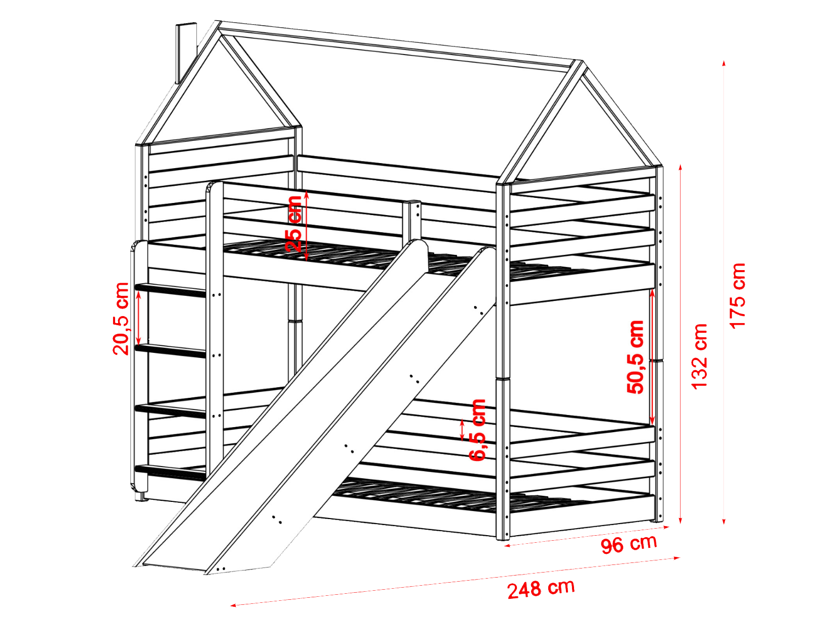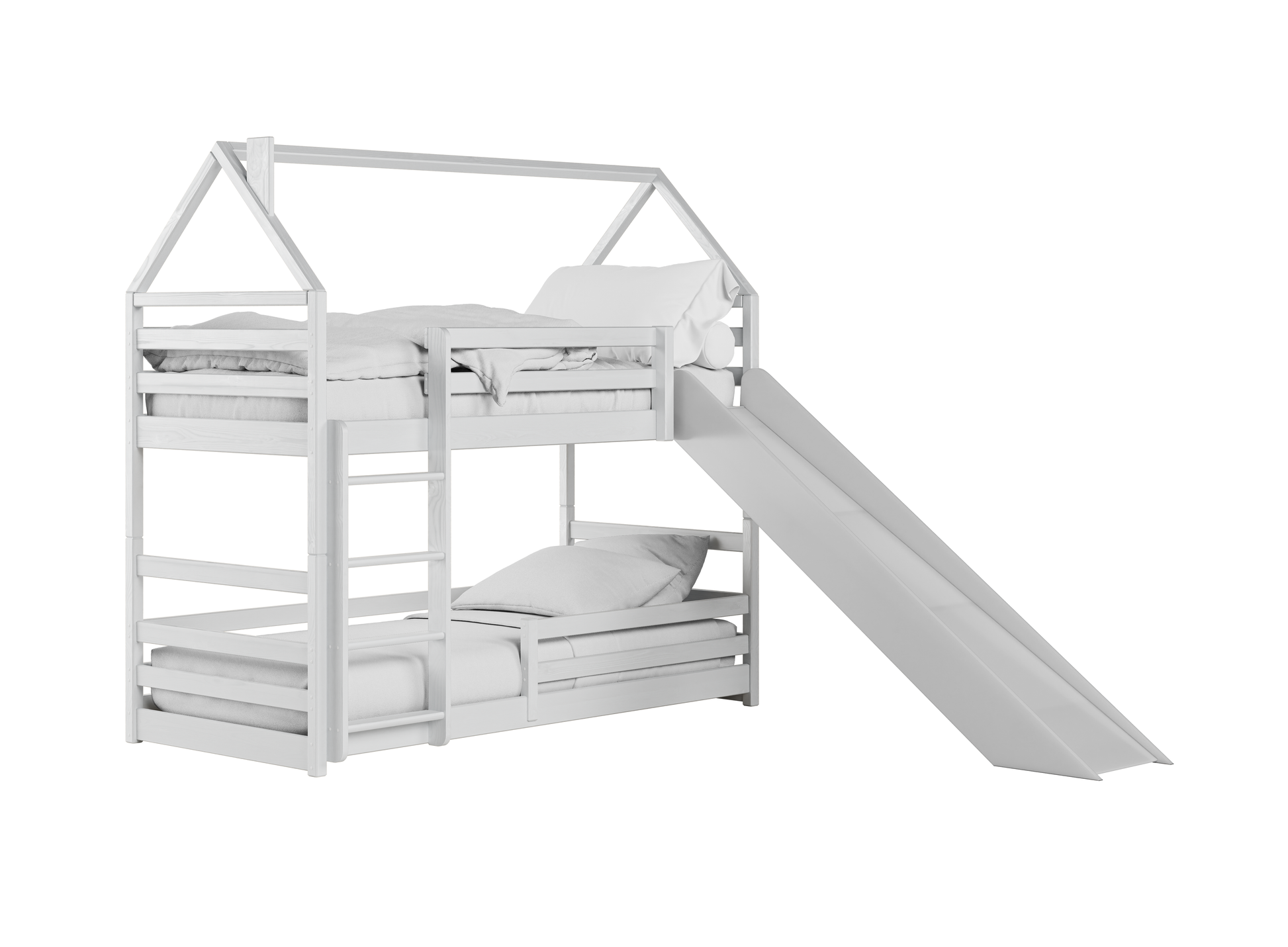 Die angebrachte Rutsche bietet auch an regnerischen Tagen Raum für aktives Spielen und ein wenig Bewegung. Das Bett ist so konzipiert, dass selbst die Kleinsten sicher und komfortabel schlafen können, dank des niedrigen Decks ohne Beine und einer zusätzlichen Sicherheitsbarriere zum Schutz vor Stürzen.