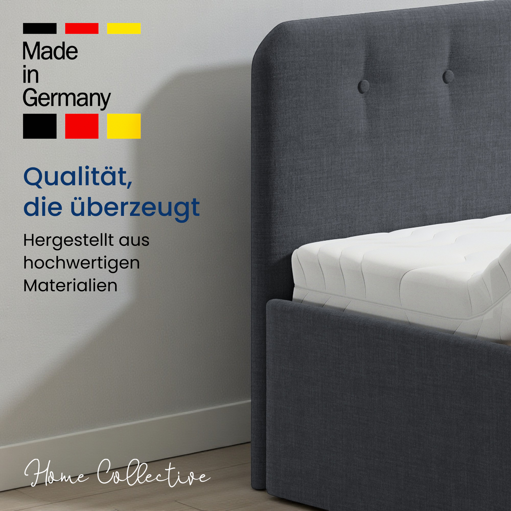 Home Collective Polsterbett 100x200 | 120x200 | 140x200 | 160x200 | 180x200 | 200x200 Doppelbett Bett mit verstellbarem Lattenrost & Stauraum, wählbare Matratze (Federkern H2 / Kaltschaum H3)