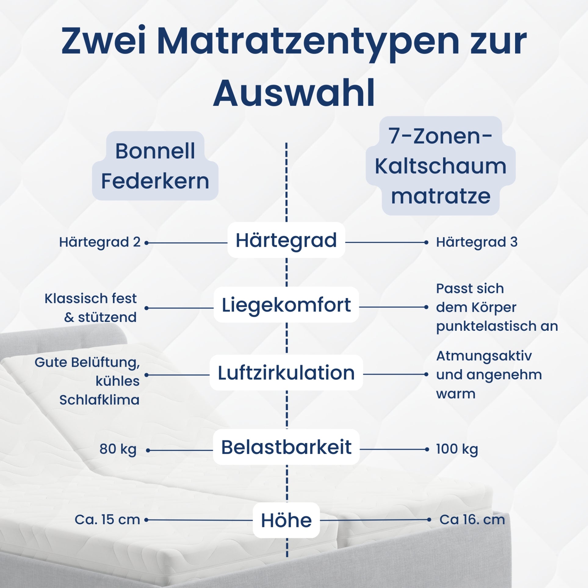 Zur individuellen Anpassung stehen zwei Matratzenvarianten zur Verfügung: