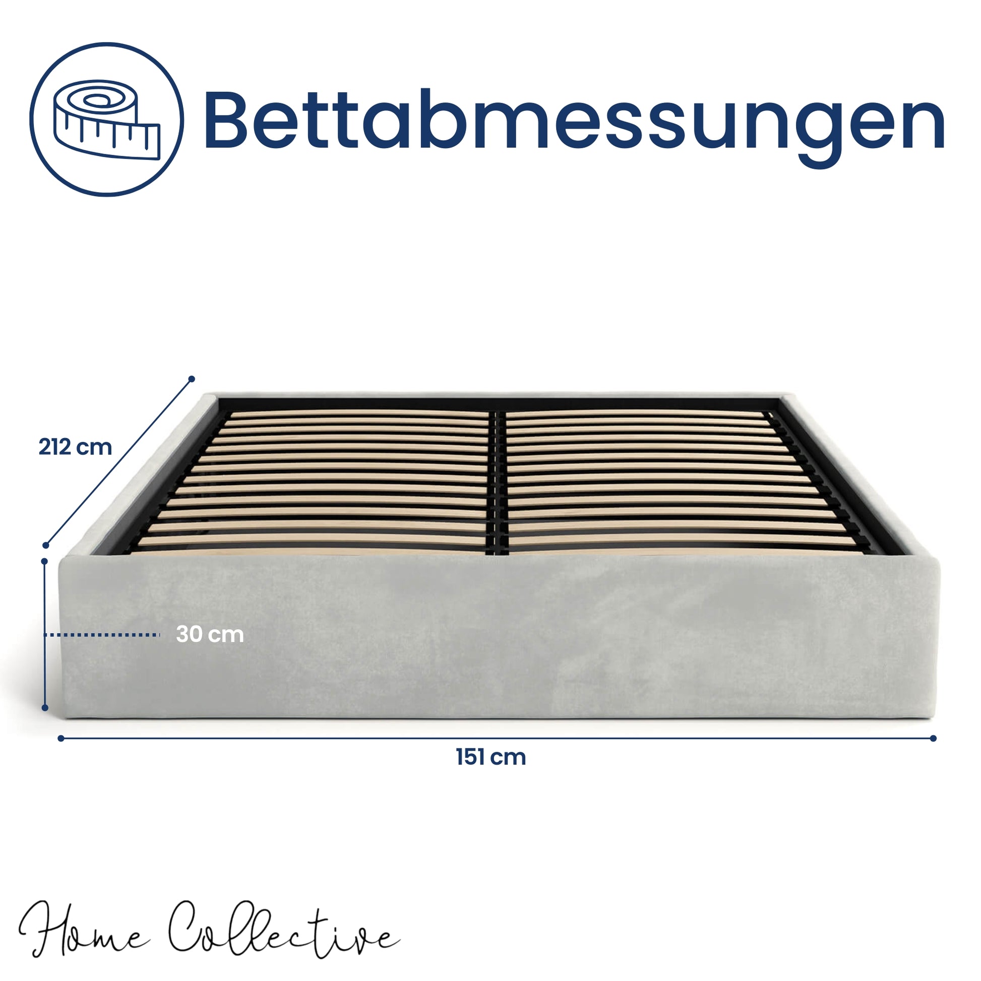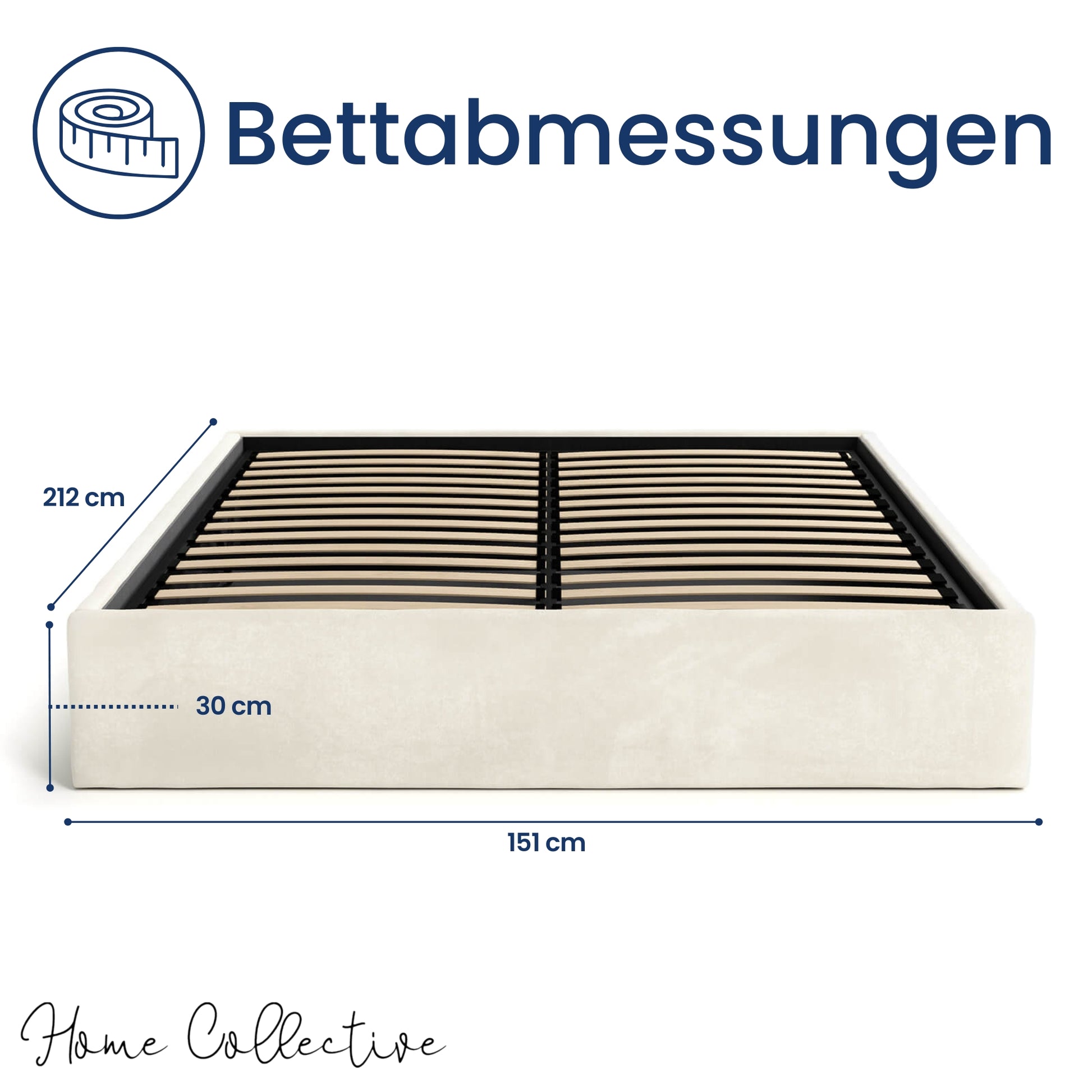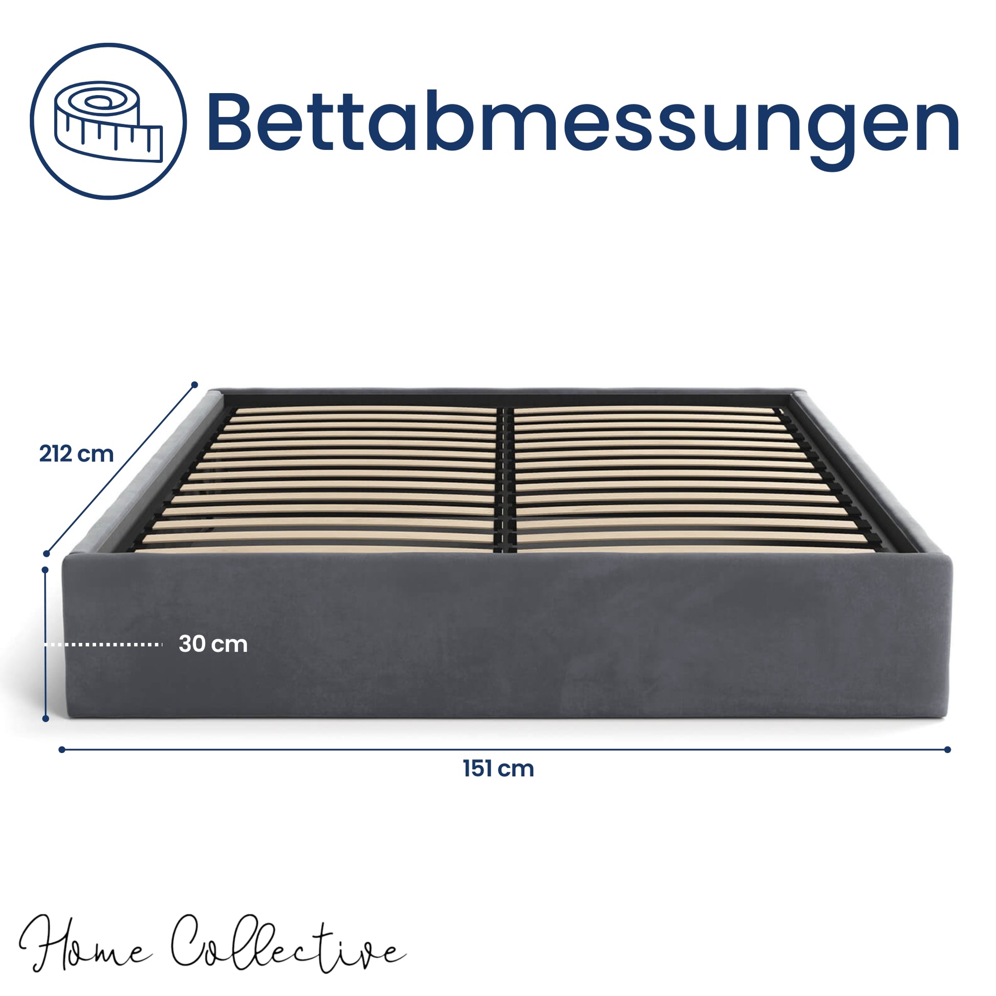 Home Collective Polsterbett, Stauraumbett, Schlafzimmerbett, Bett mit Stauraum Lattenrost Metallrahmen und Samtpolsterung platzsparend ohne Kopfteil | 120x200 | 140x200 | 160x200 cm