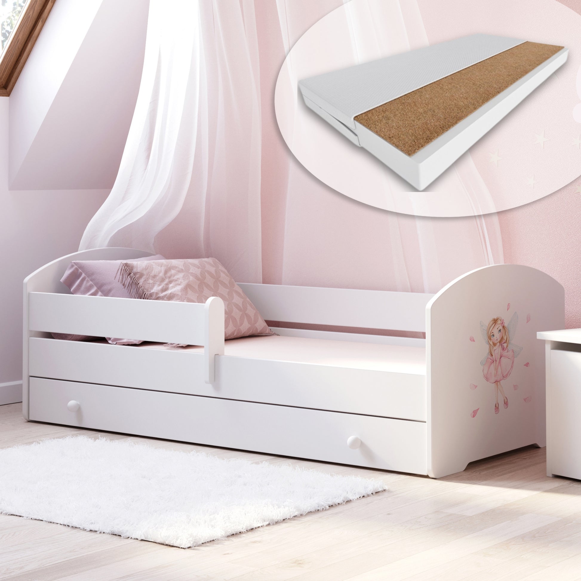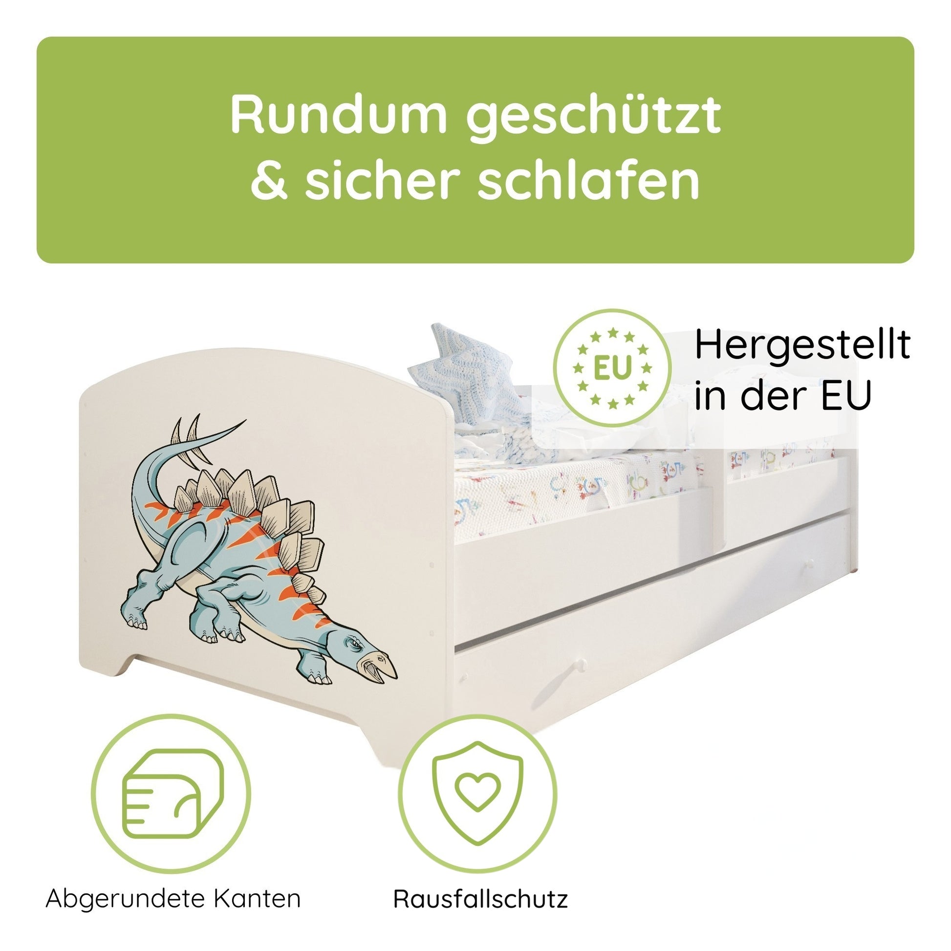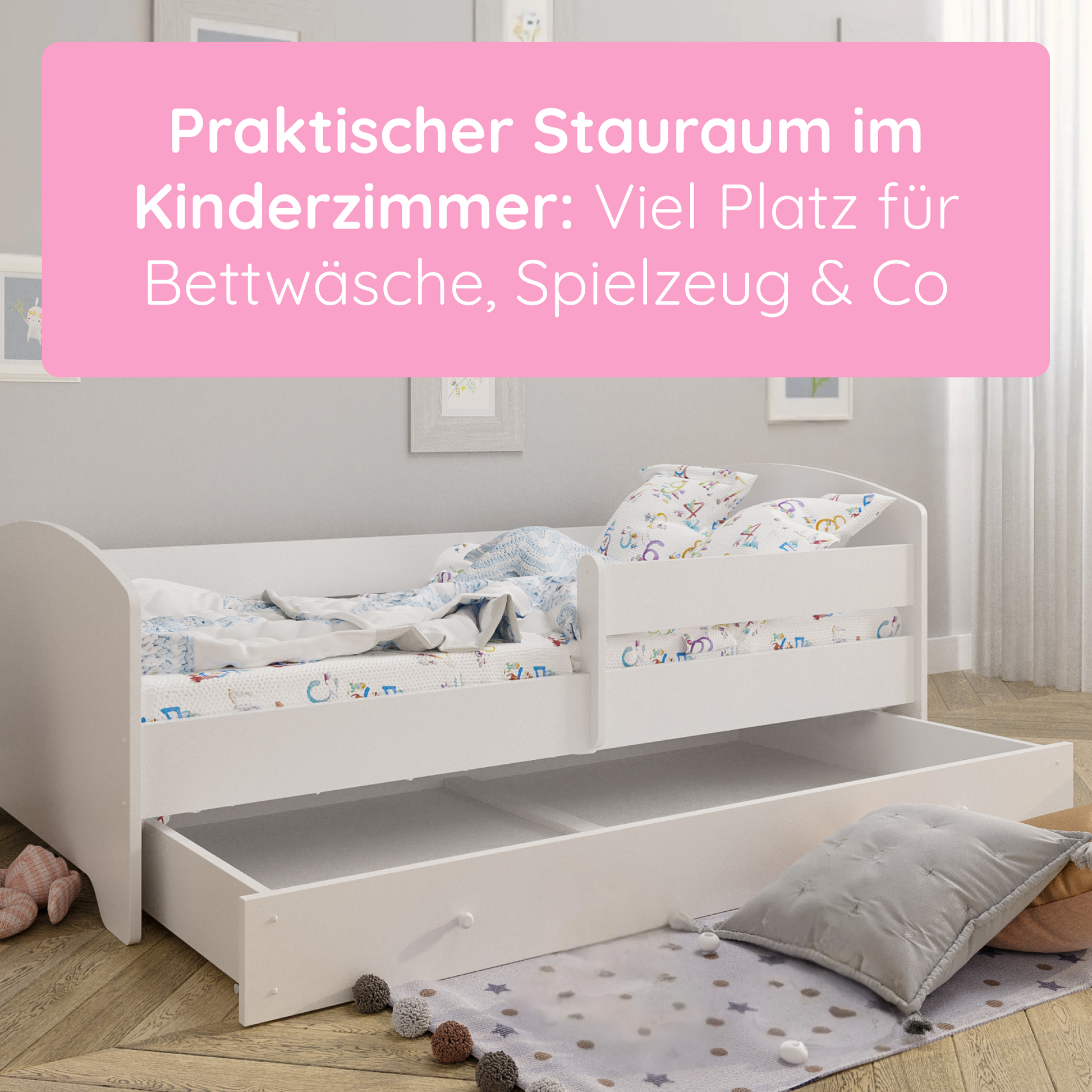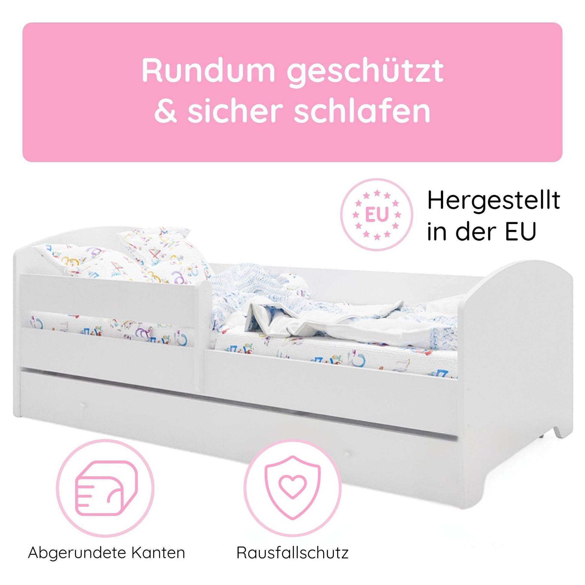 Kids Collective Kinderbett 70x140 / 80x160 Komplett Set inkl. Matratze, Lattenrost, Schublade & Rausfallschutz | Einzelbett für Kinder von 2 – 10 Jahren | weiß mit wählbarem Motiv